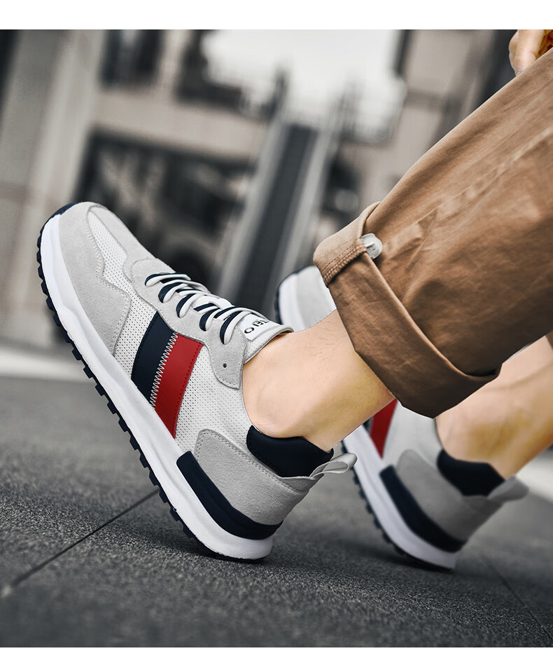 里奇.乔丹 RICKY JORDAN男鞋断码秋冬减震跑步鞋百搭皮面休闲运动鞋防臭轻便耐磨旅游鞋男 QD332黑色网面款 单层 44