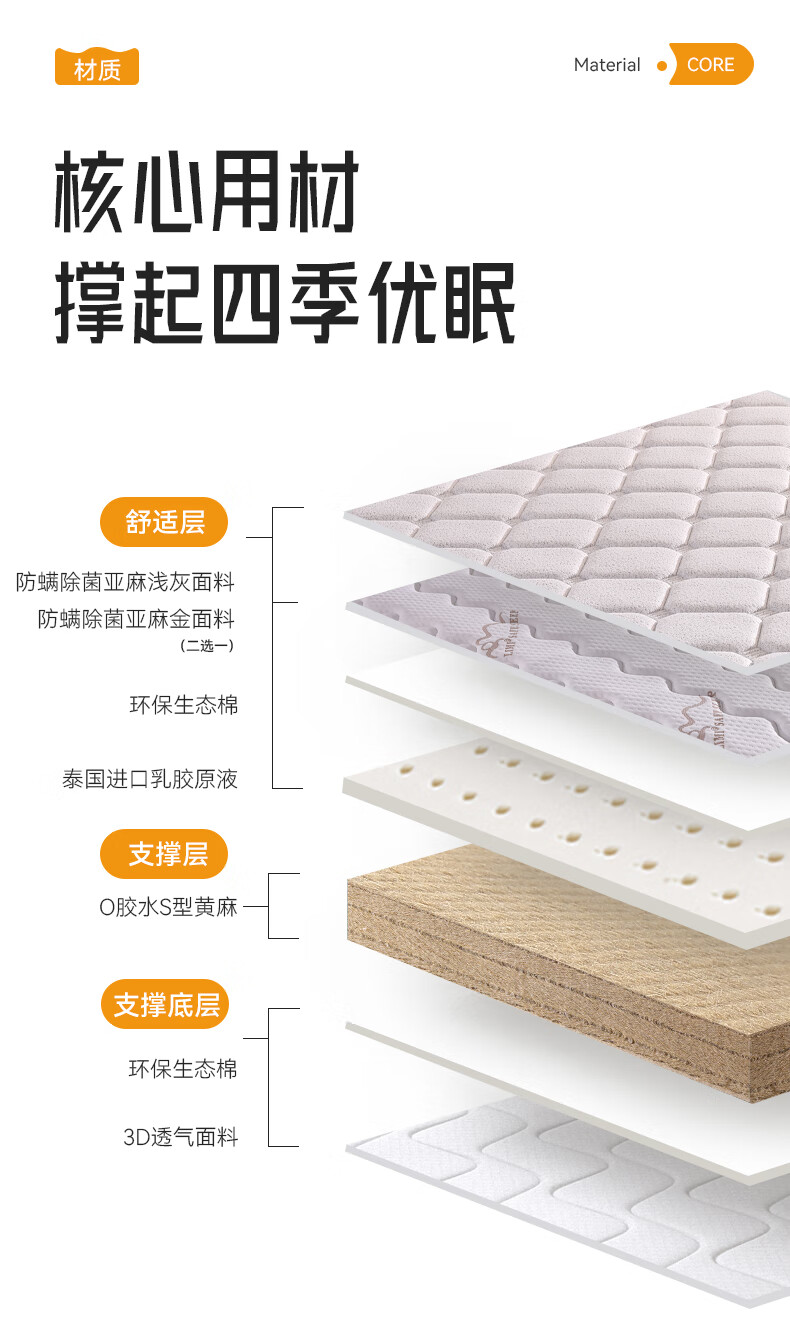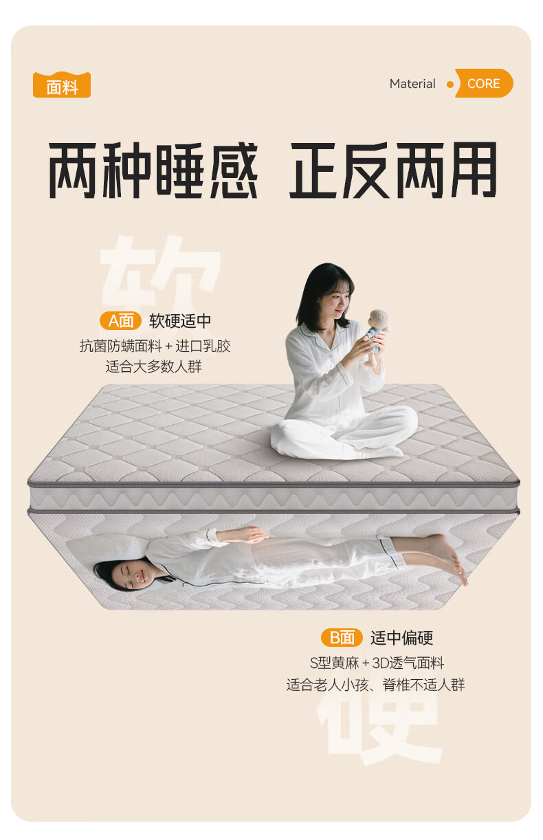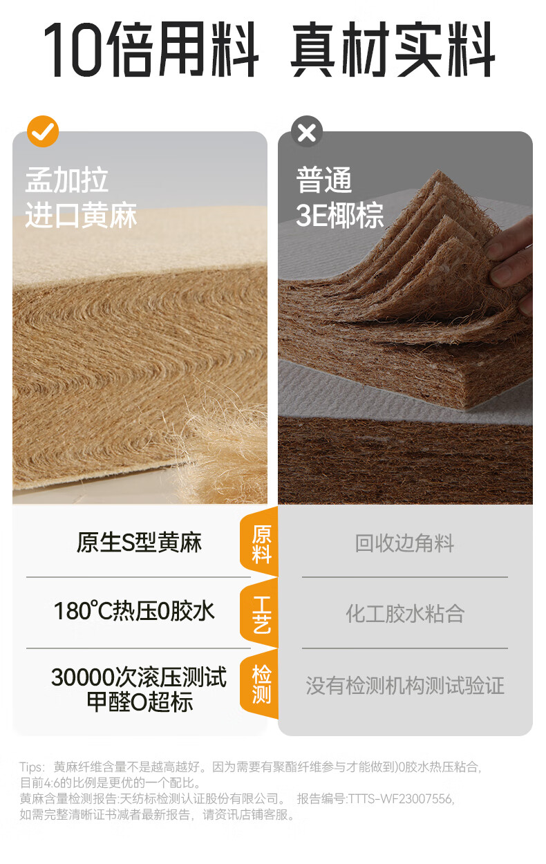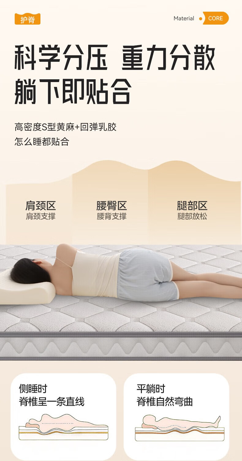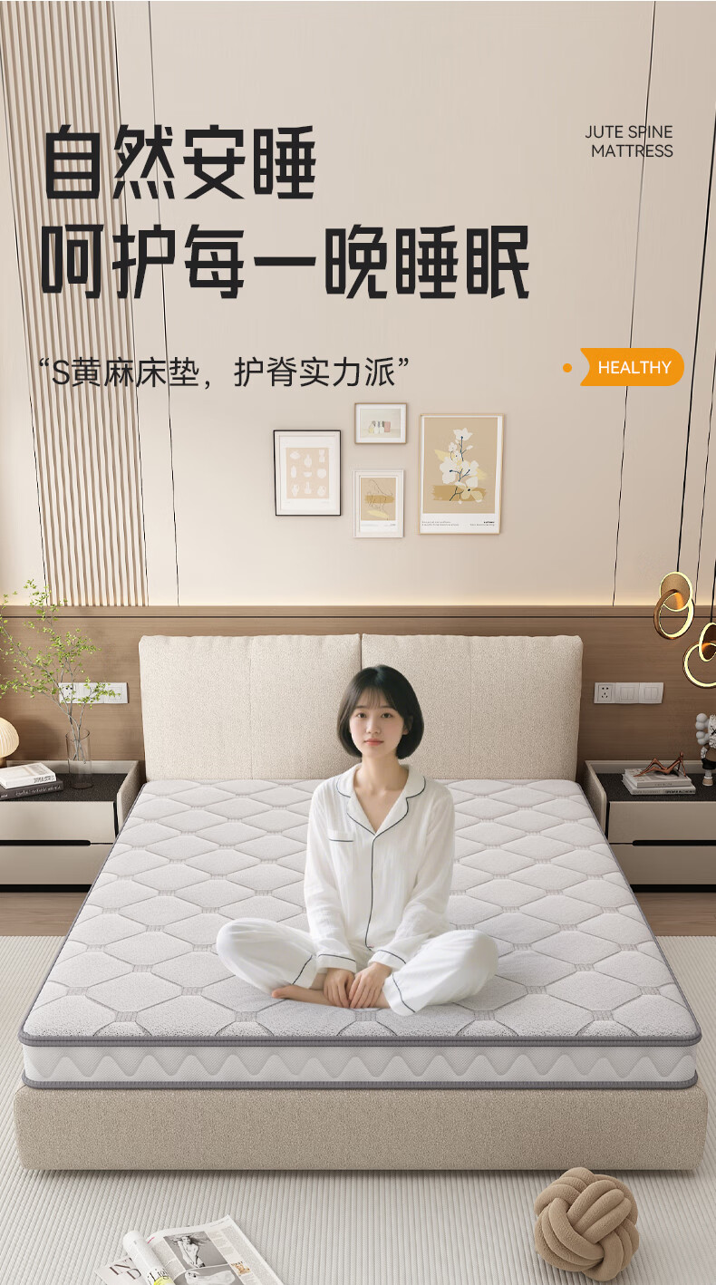 卡裴尔S型精细纯黄麻床垫家用旗舰婴儿童护脊天然椰棕榈乳胶榻榻米定制 亚麻金舒适升级15CM=10CM黄麻+2Cm驼毛 2000mm*2200mm
