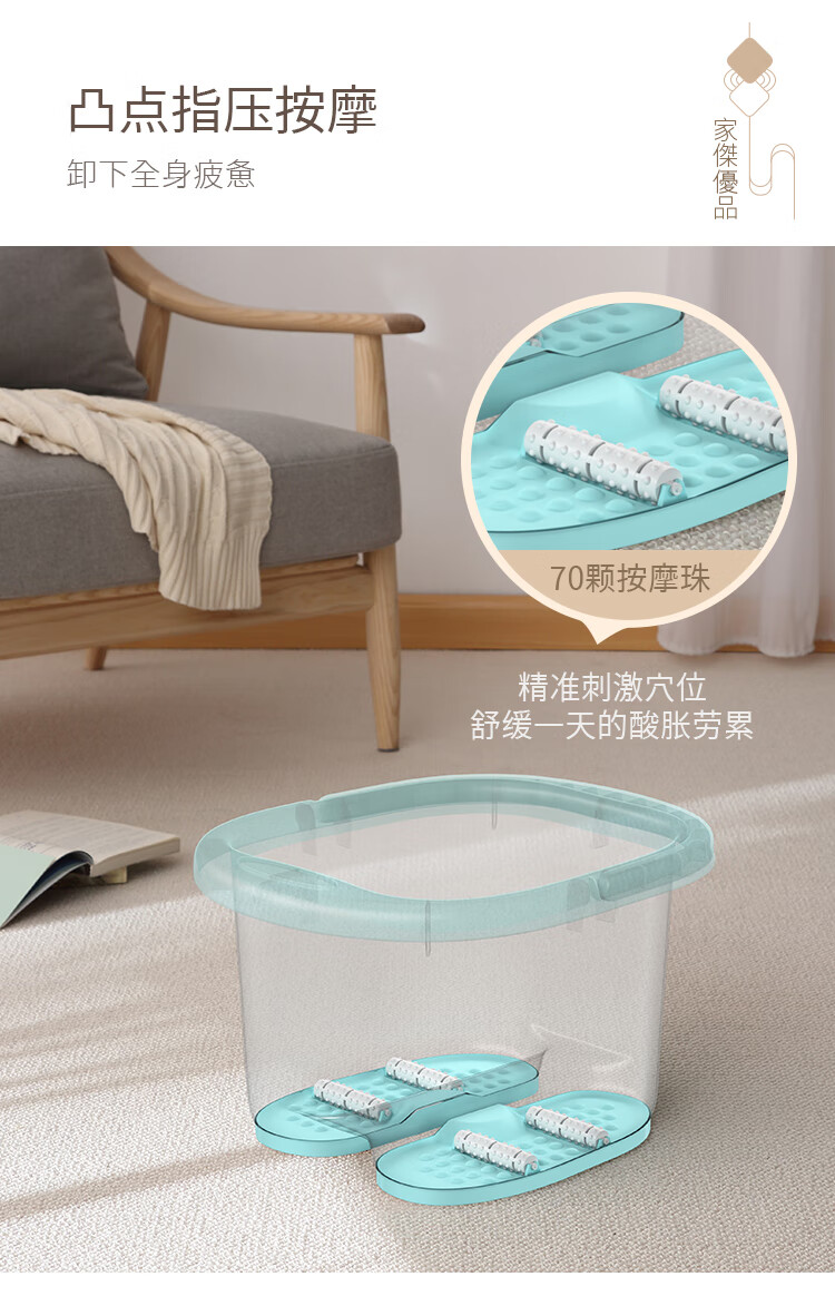 家杰优品泡脚桶按摩泡脚盆足浴桶足浴盆浴室用品加厚带提手带滚轮水桶1个 加厚带提手带滚轮泡脚桶1个