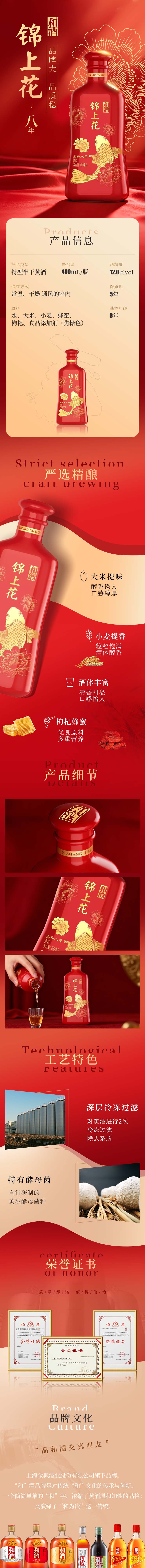 和酒锦上花柔和八年陈黄酒 特型半干黄酒 400ml*6瓶整箱装 400mL 6瓶 整箱装
