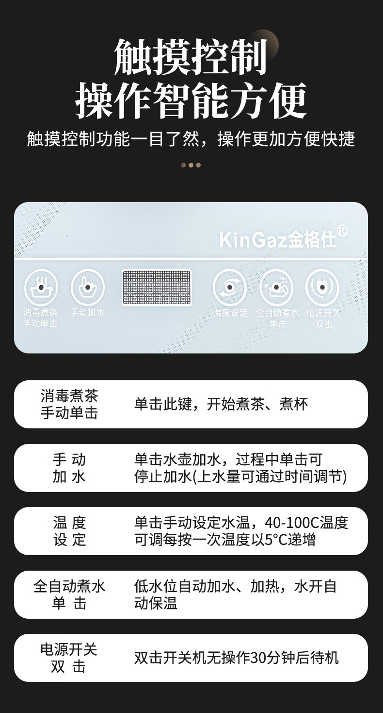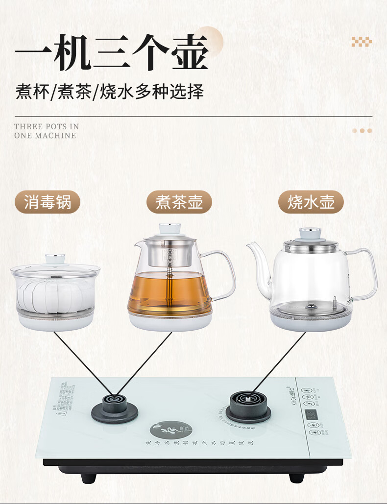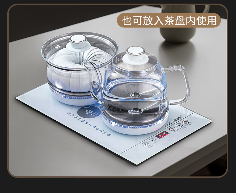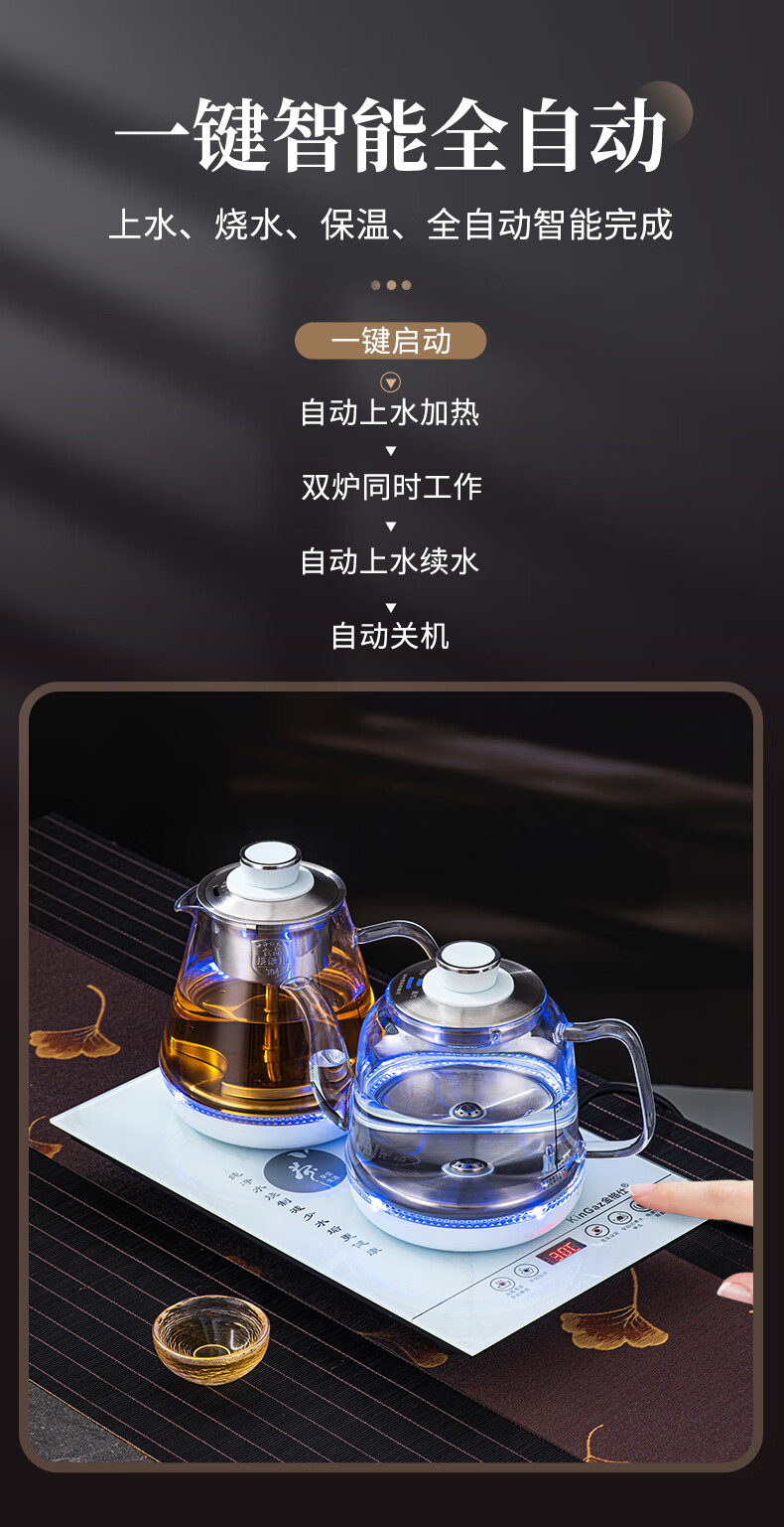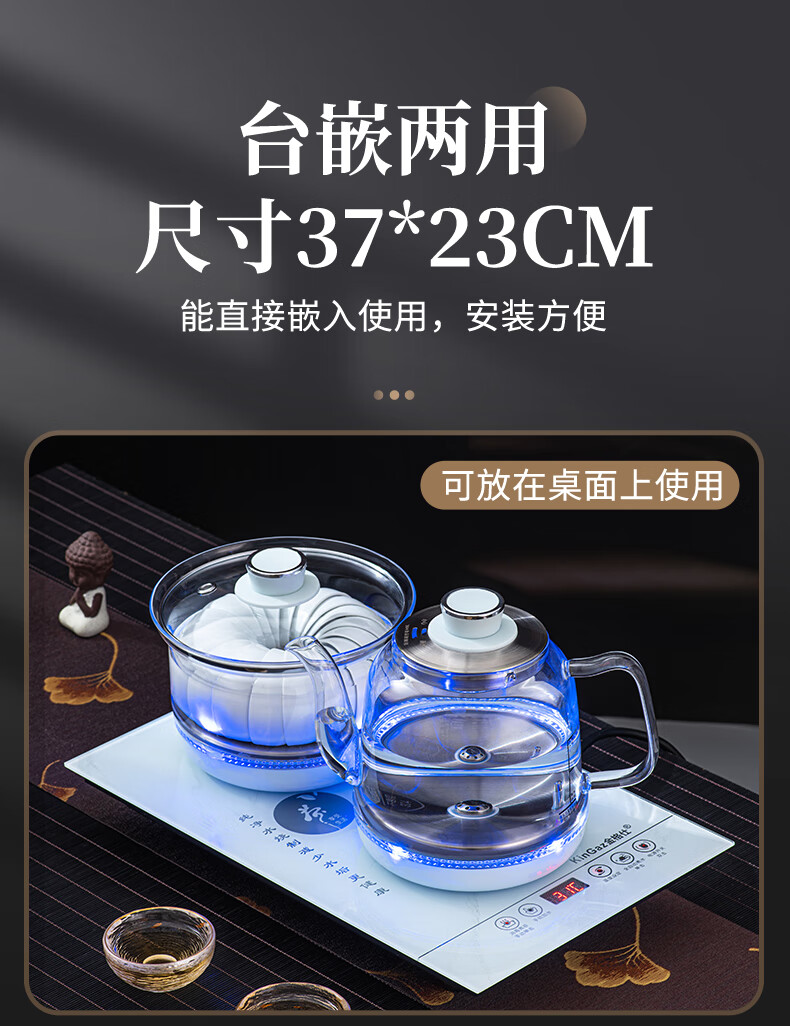 金格仕(KinGaz)全自动烧水一体机 智能底部上水23X37茶台一体烧水壶大理石纹路白色玻璃面板嵌入式功夫泡茶电茶炉 大理石纹【23X37】卡其色-消毒款