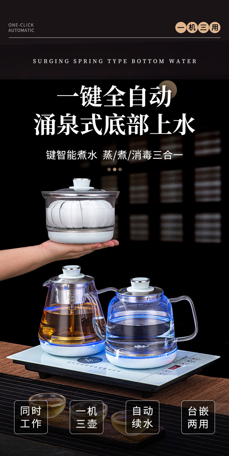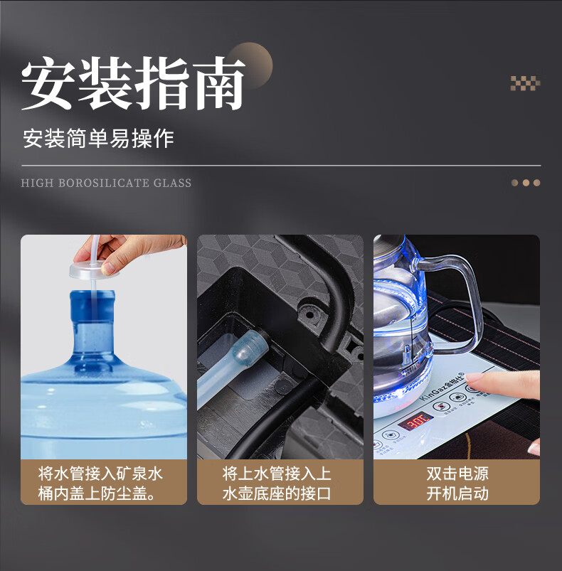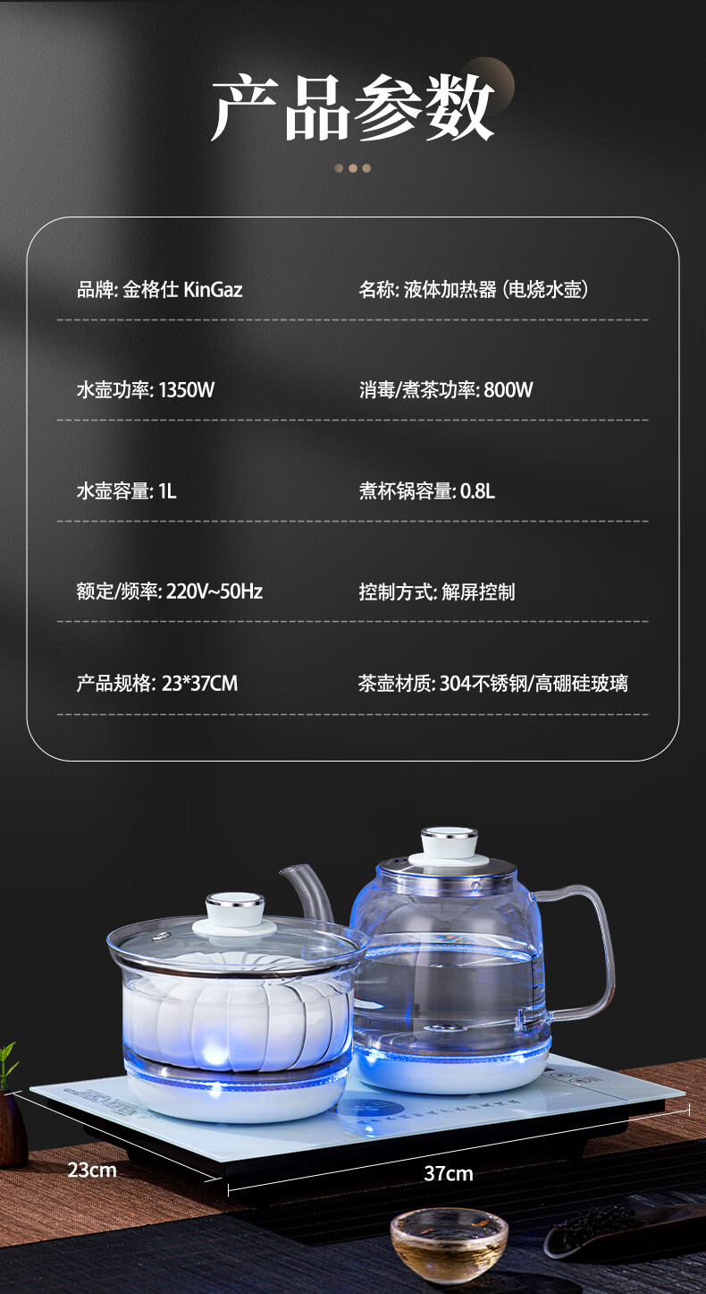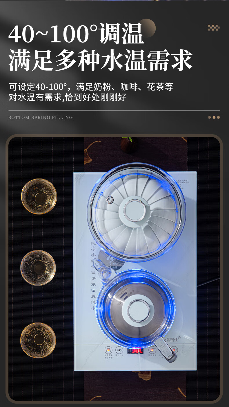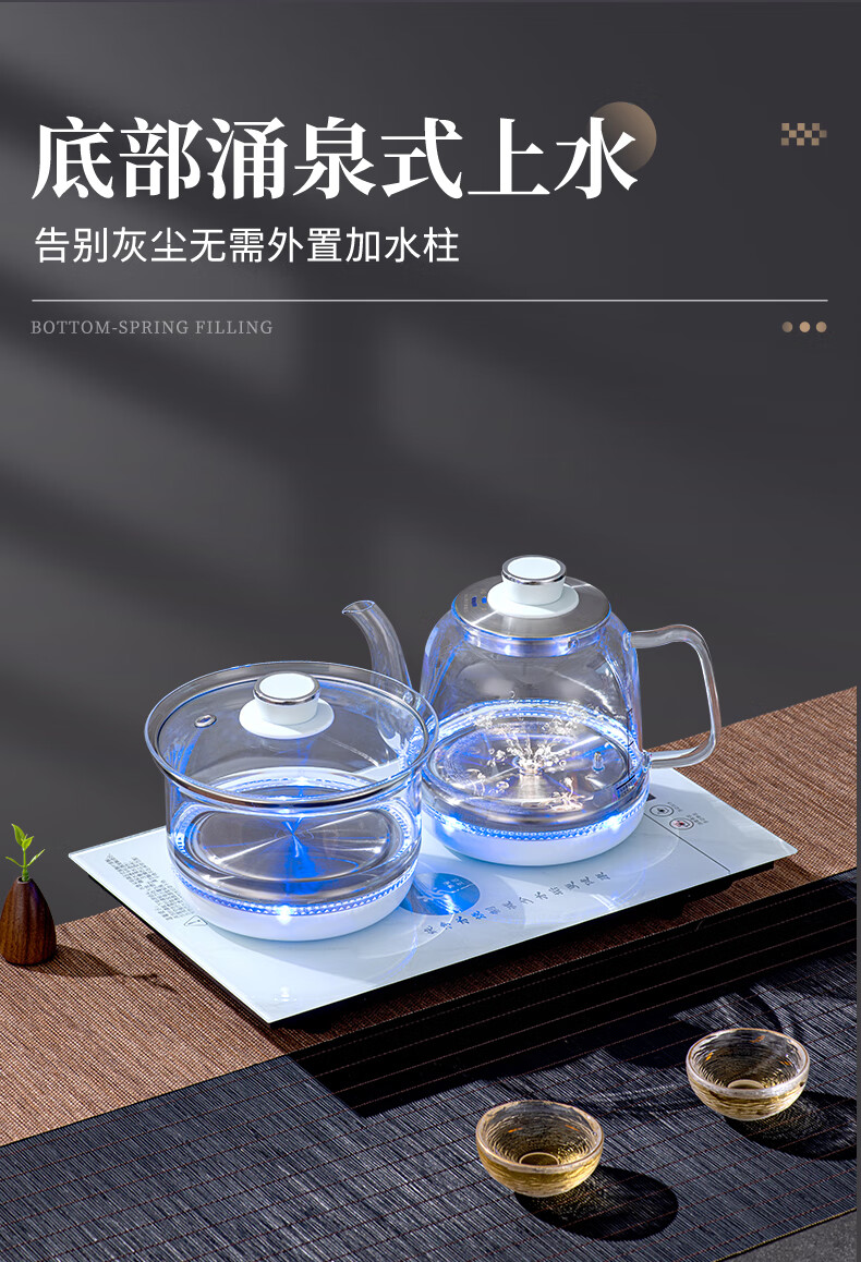 金格仕(KinGaz)全自动烧水一体机 智能底部上水23X37茶台一体烧水壶大理石纹路白色玻璃面板嵌入式功夫泡茶电茶炉 大理石纹【23X37】卡其色-消毒款