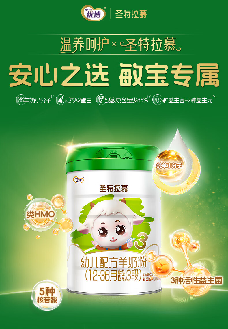 圣元圣特拉慕优博婴儿配方羊奶粉3段(12-36月龄)900g听装 1罐