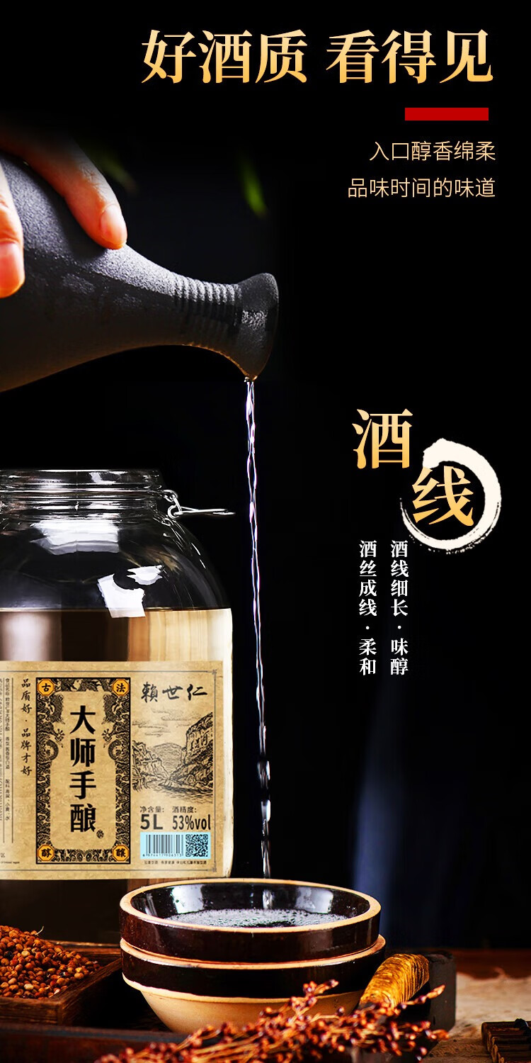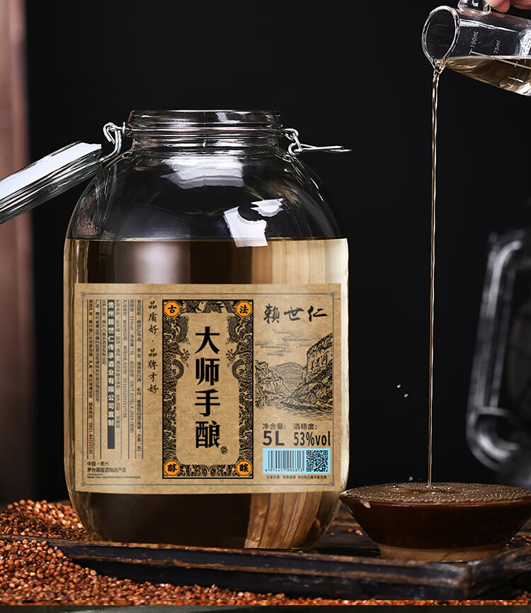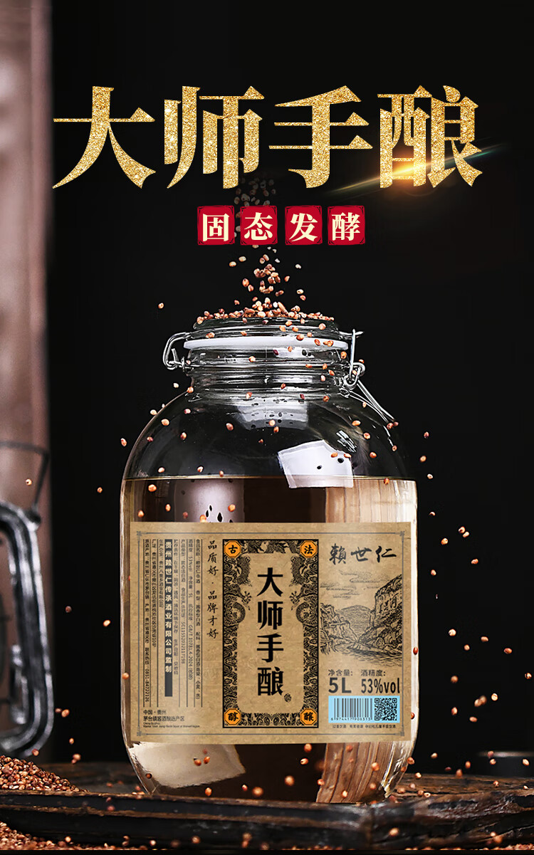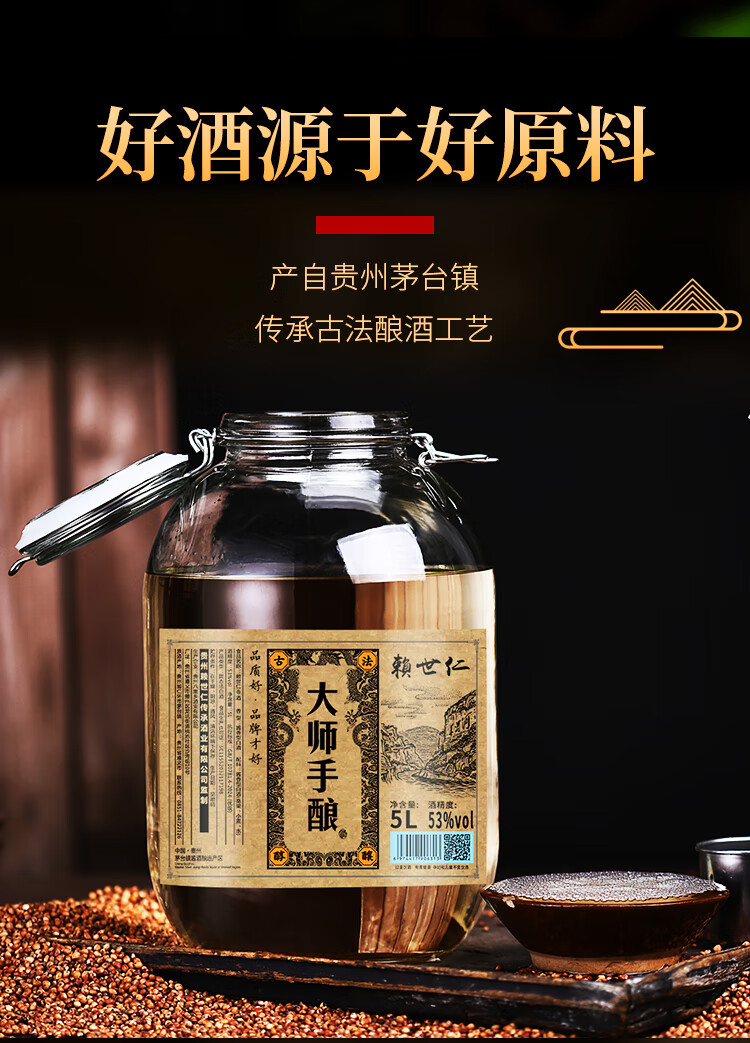 赖世仁贵州酱香型白酒53度高粱酒10斤玻璃桶装高度酒浸泡药材用酒粮食酒 53度 5L 1桶 大师臻选酒
