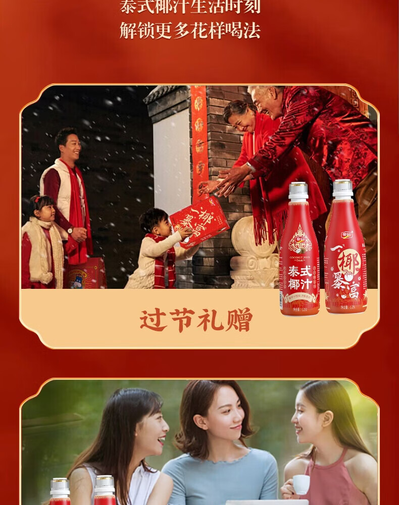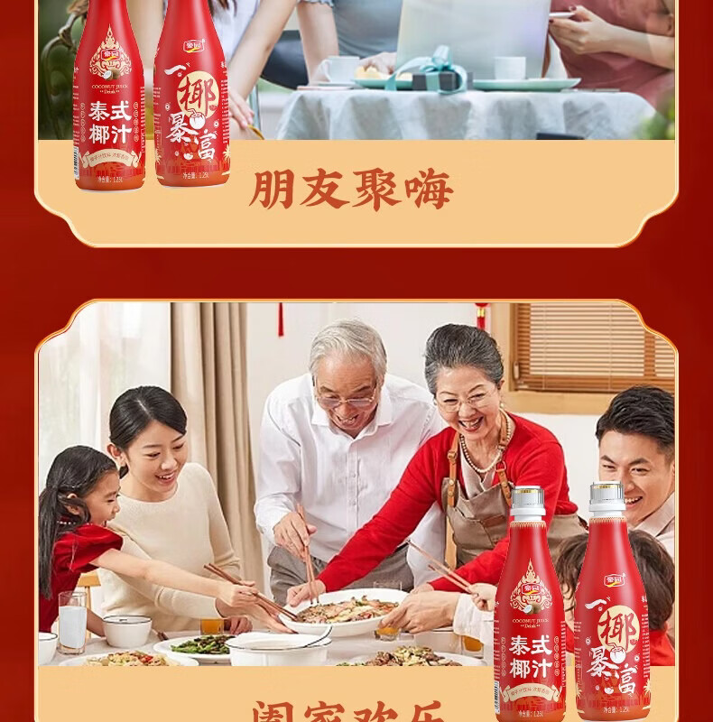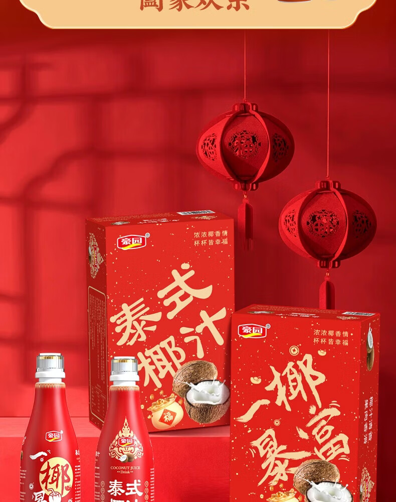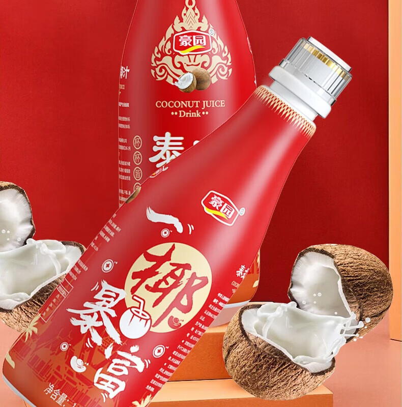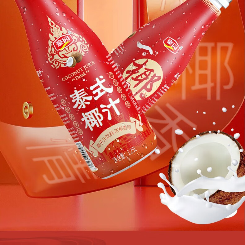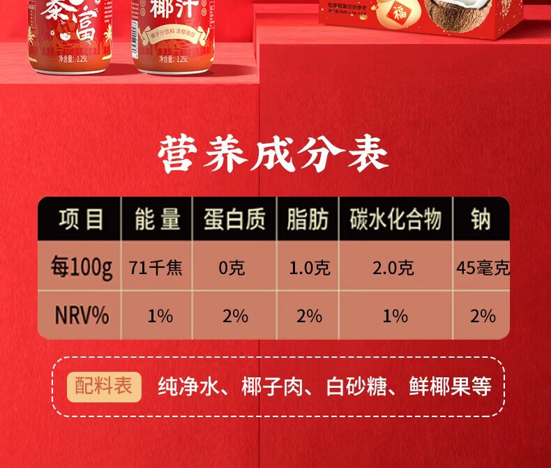 豪园【年货送礼】100%苹果汁整箱装红富士果汁饮料0脂肪清爽解腻饮料 椰子水1.25L*2瓶【喜庆版】