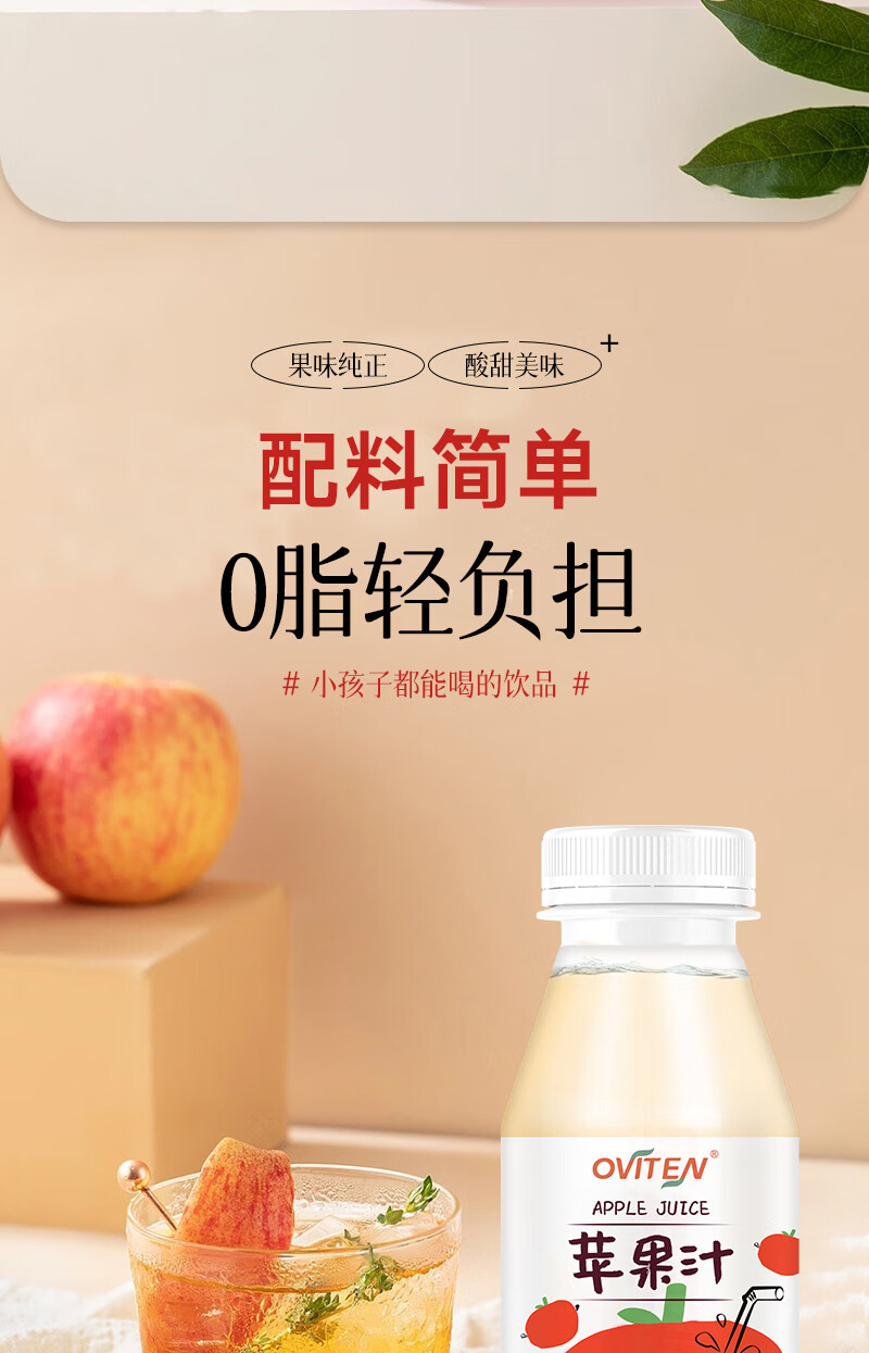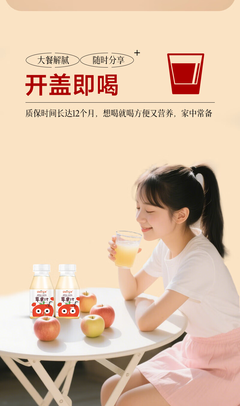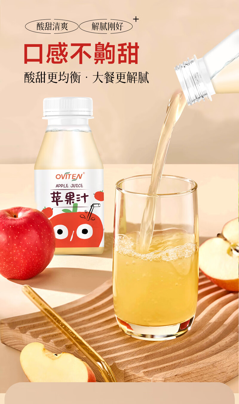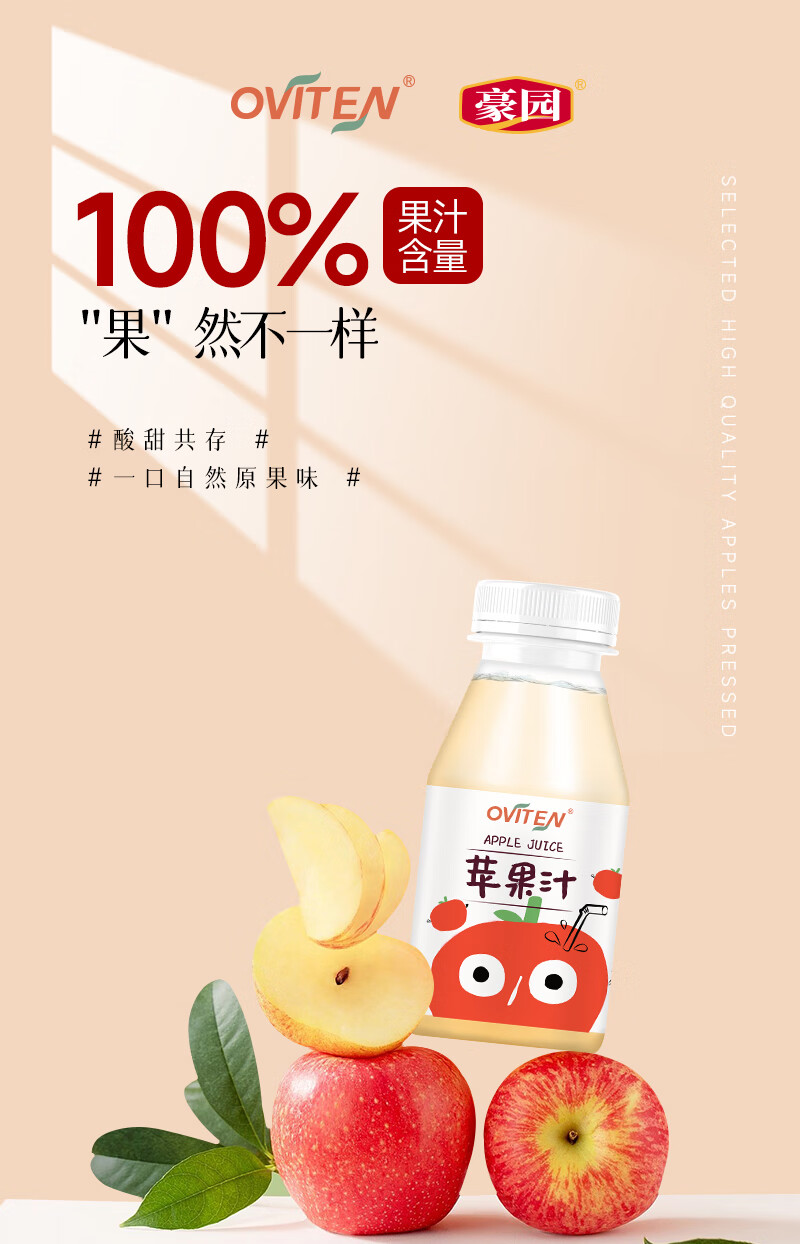 自然道夏季饮品果汁饮料 NFC100%阿克苏苹果汁258ml*6瓶
