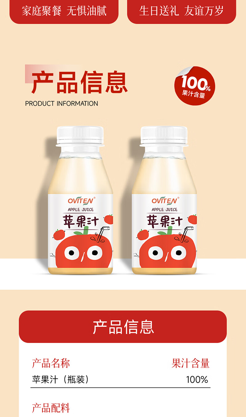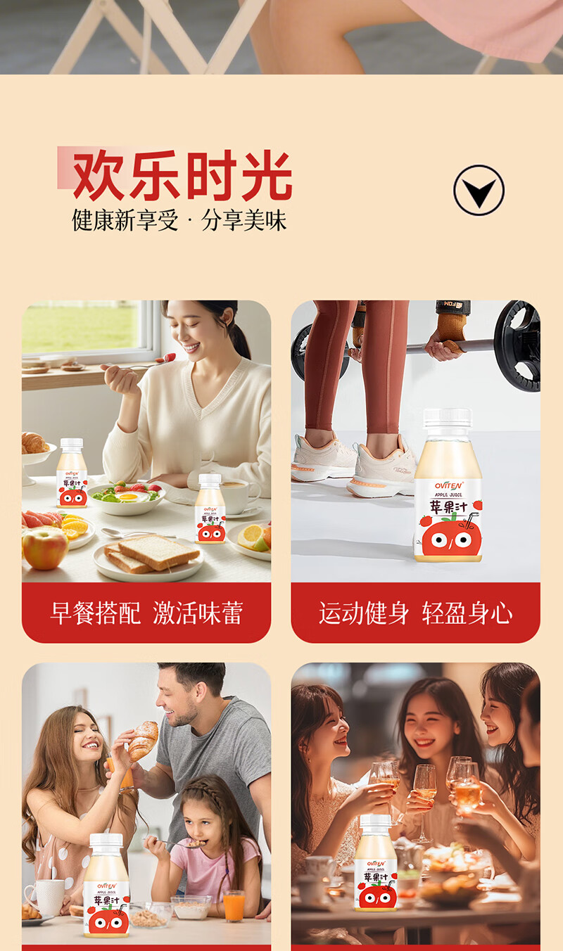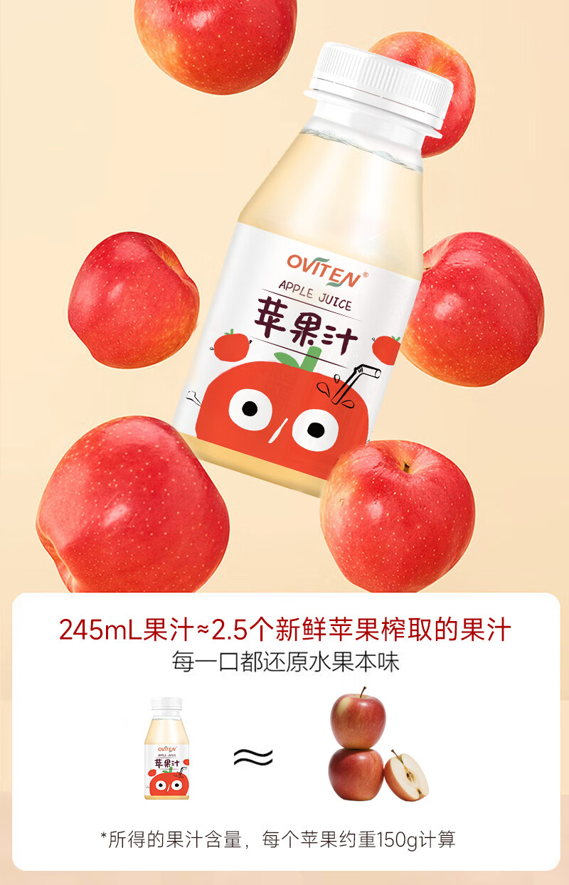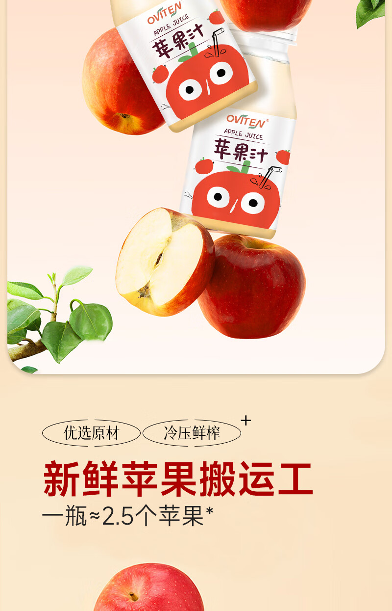 自然道夏季饮品果汁饮料 NFC100%阿克苏苹果汁258ml*6瓶