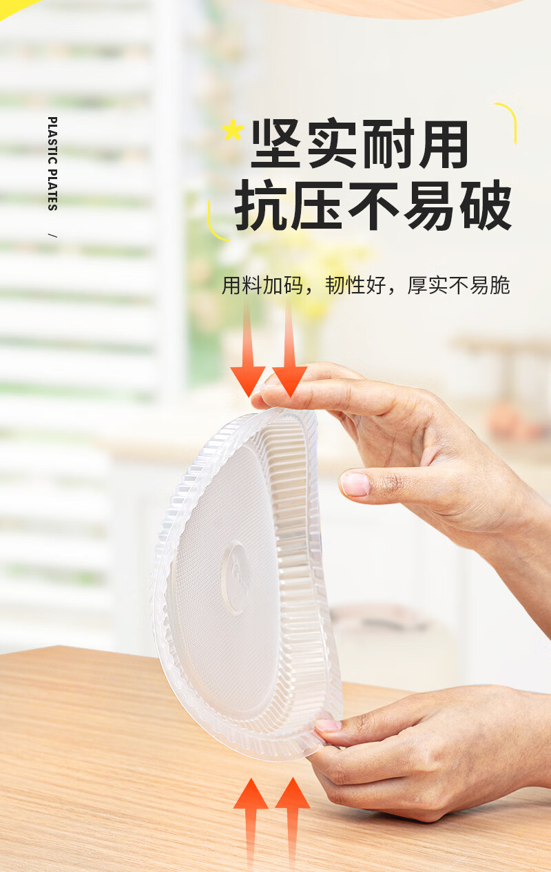 特美居(temeiju)一次性盘子塑料装菜硬质家用酒席加厚菜碟菜盘透明圆形盘野餐
