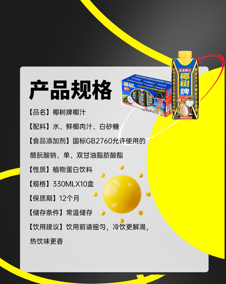 椰树 椰汁 330ml*10盒 礼盒装 植物蛋白饮料 海南特产 年货礼盒年货