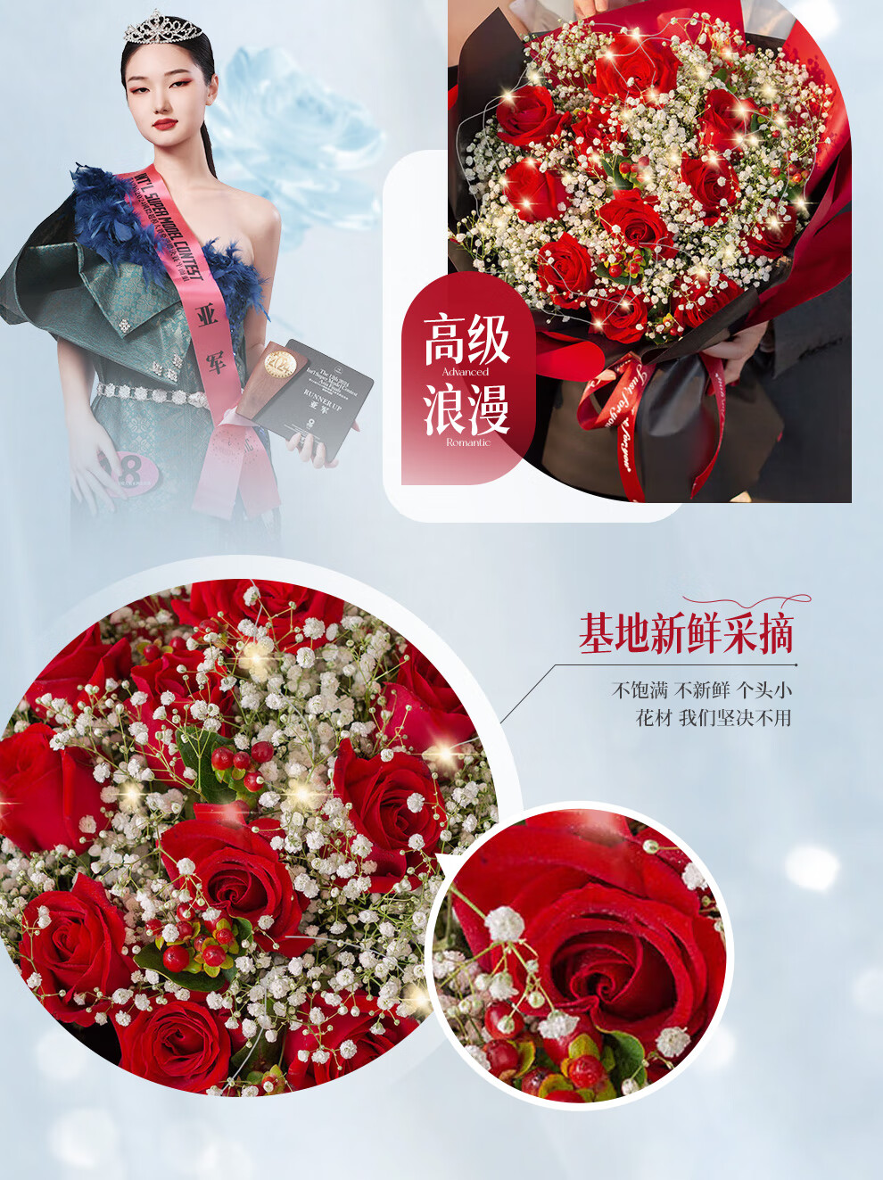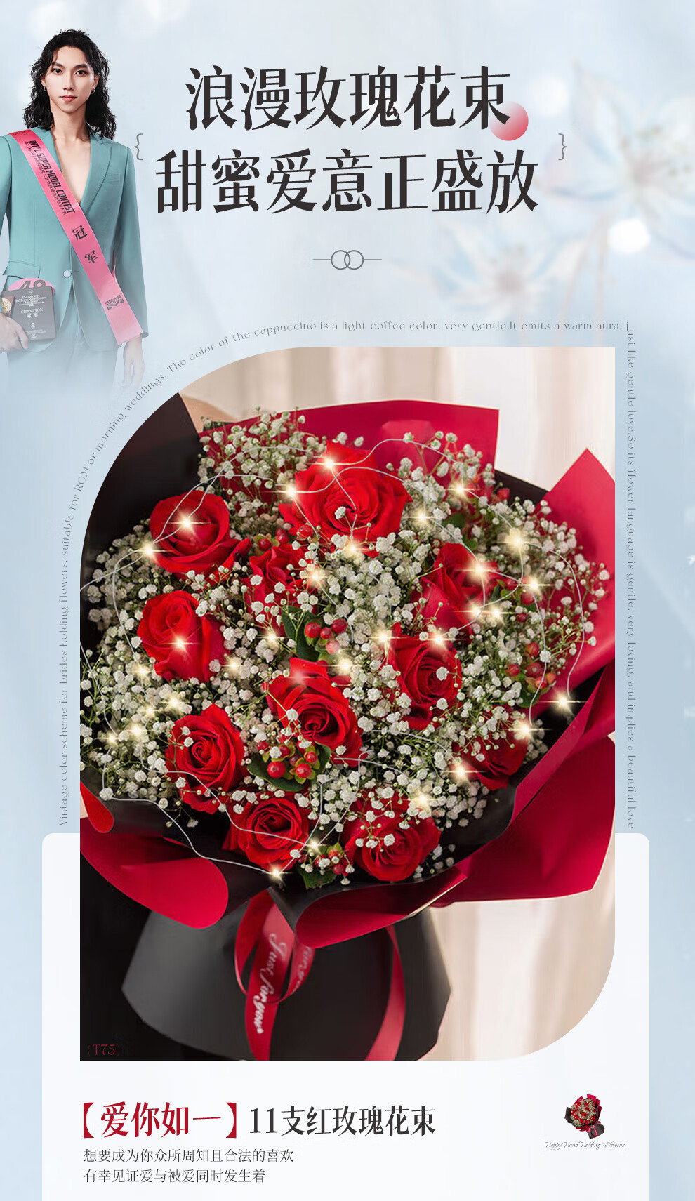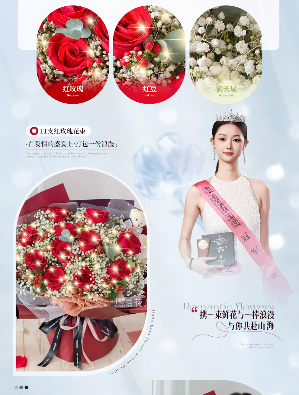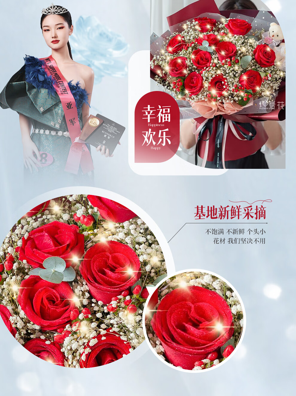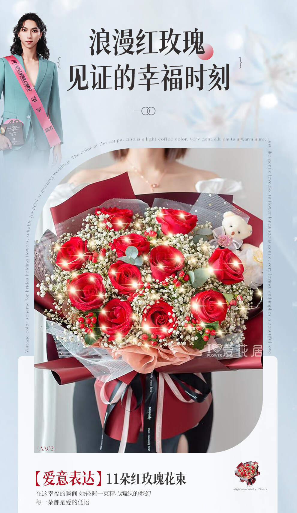 爱花居鲜花速递花礼红玫瑰花生日送女友老婆礼物表白花束同城配送小时达 【爱意表达】11朵|AA02