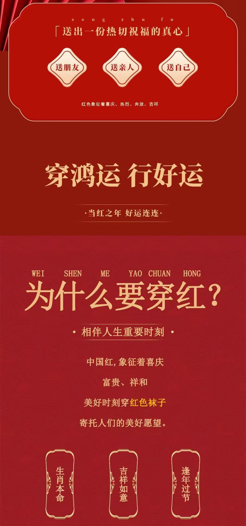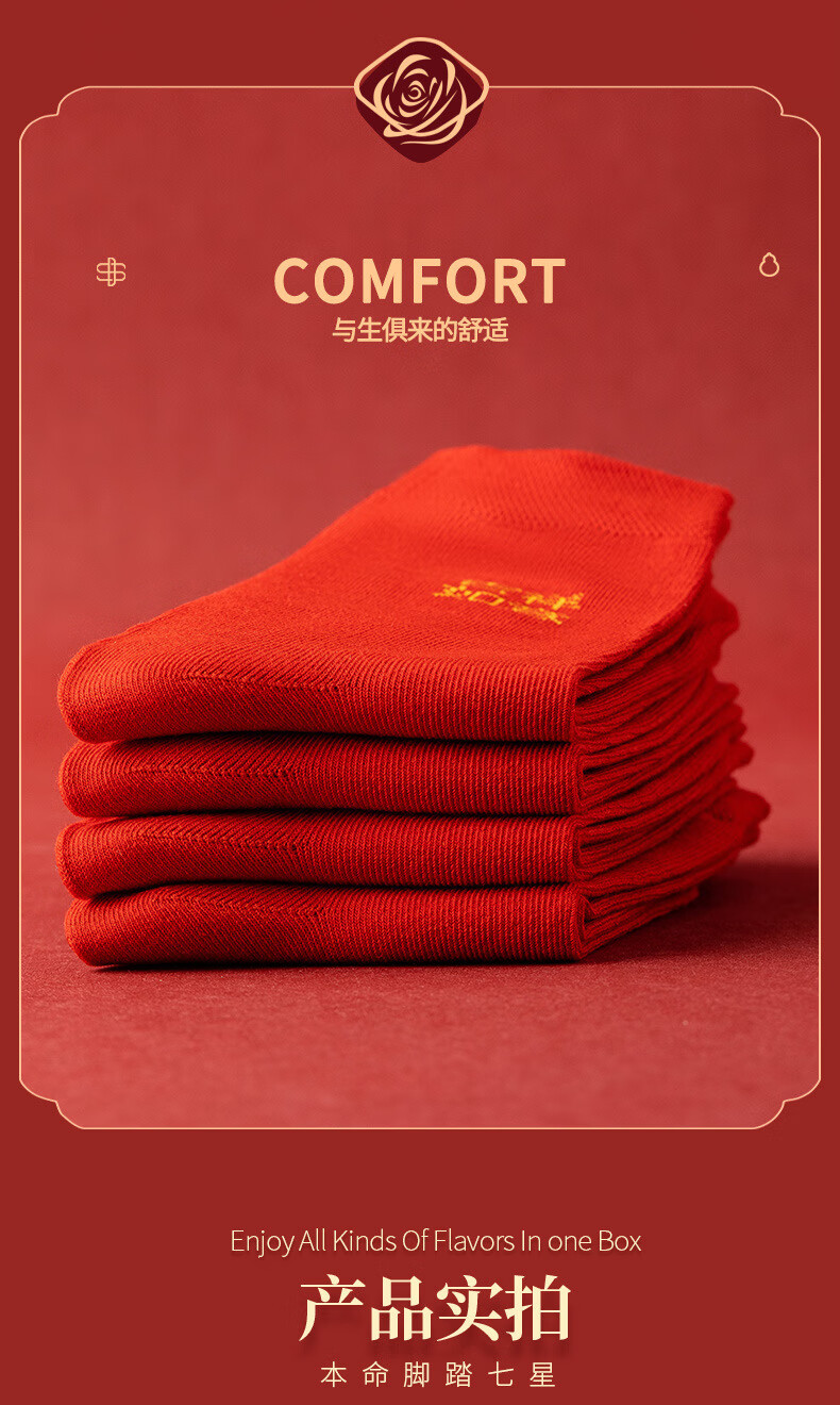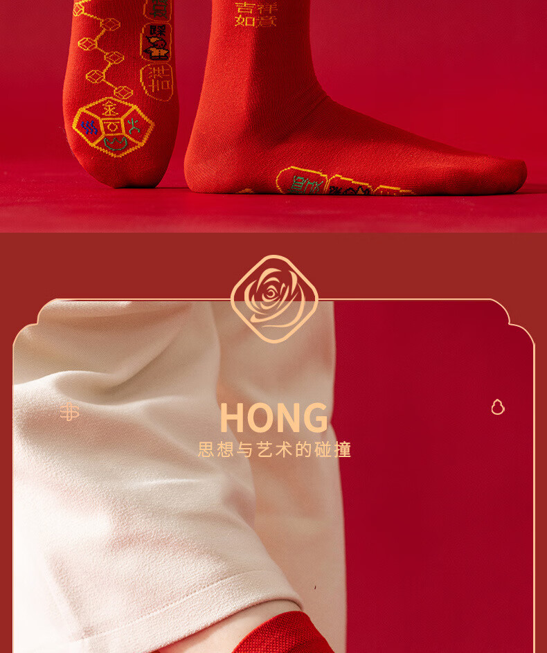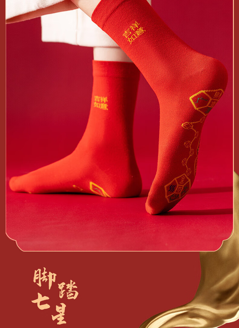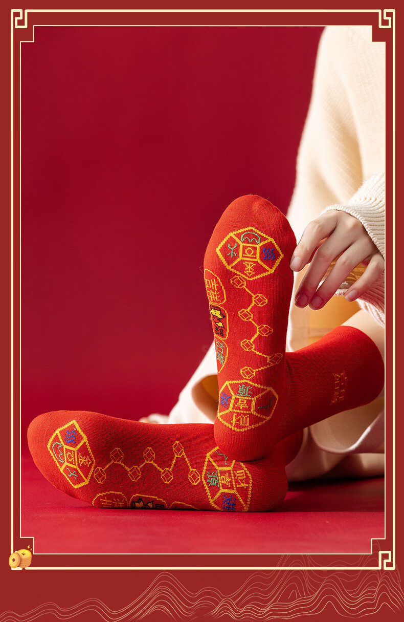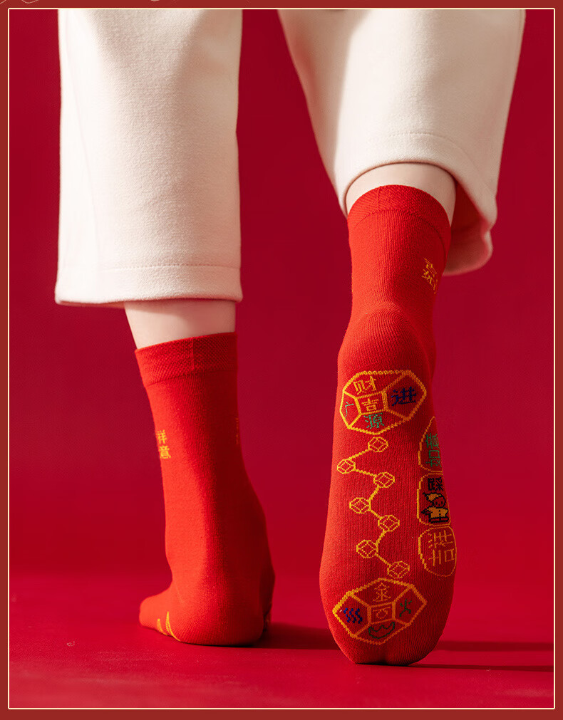 红色袜子男女通用情侣纯色中筒袜结婚情侣鸿运新年喜庆踩小人福袜 生肖马 均码 2双装(男女通用)