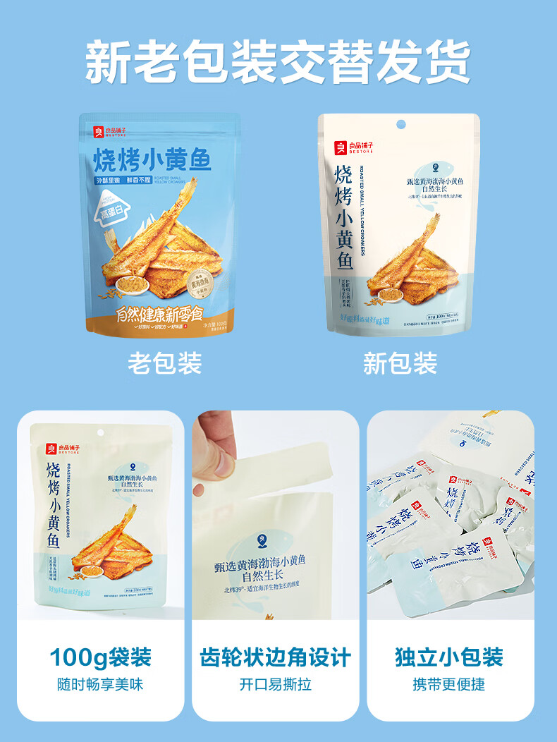 良品铺子 烧烤小黄鱼100g 即食海鲜小吃小鱼仔小鱼干零食独立包装