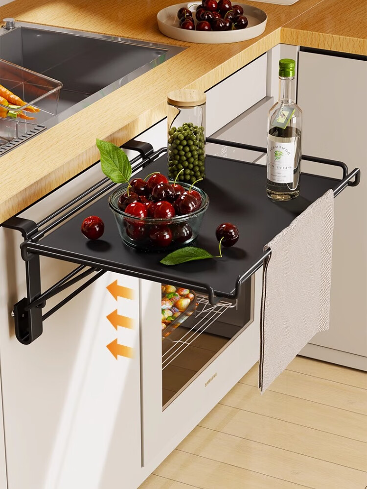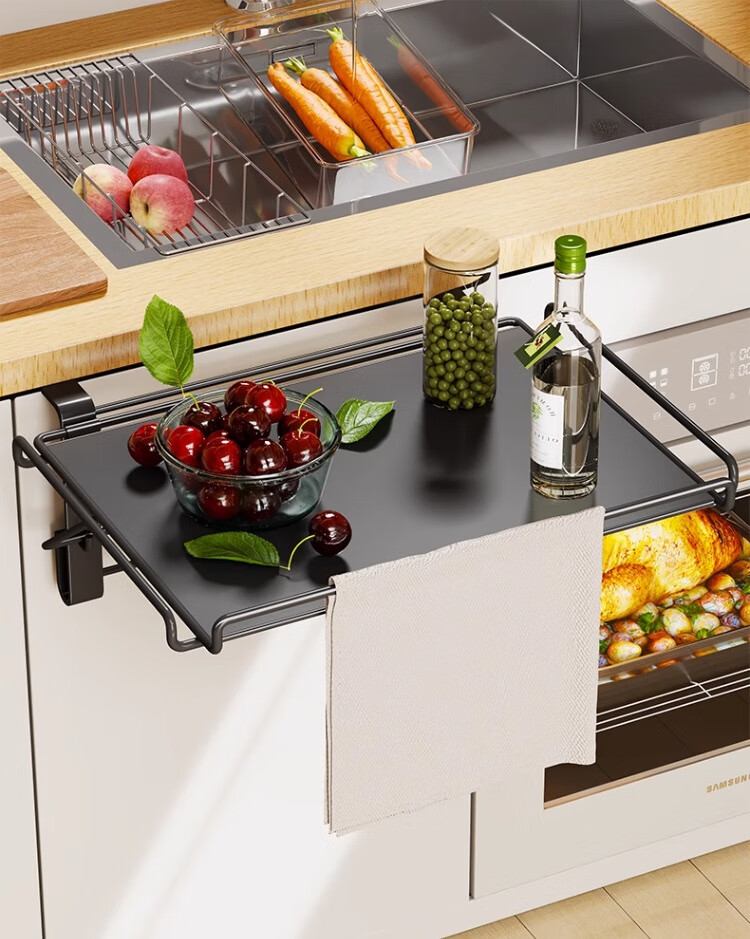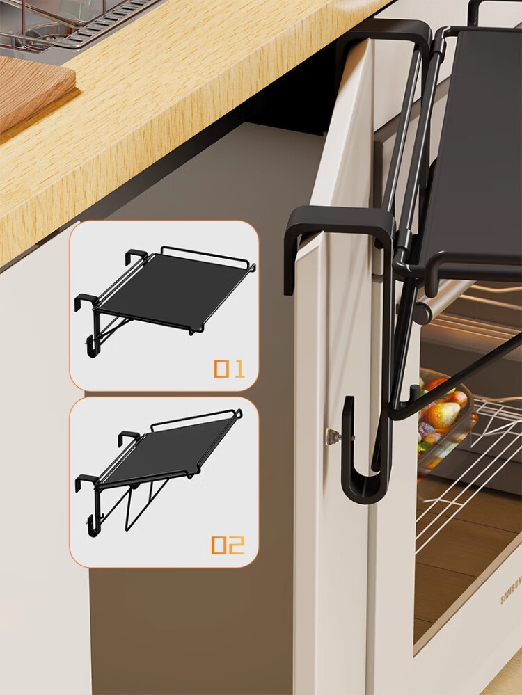 尔思家厨房置物架橱柜门上壁挂架可折叠辅助台悬挂桌子收纳架隔板毛巾架 黑色