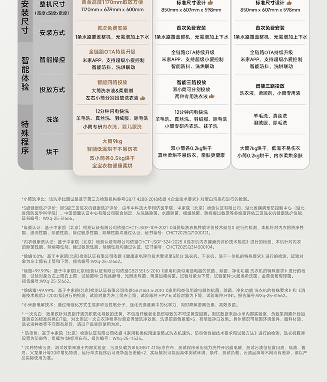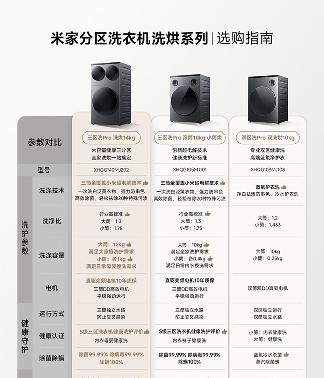 小米(MI)三筒洗衣机14公斤懒人分区洗三桶全自动洗烘一体婴儿内衣除菌三区洗衣机【新品首发】XHQG140MJ202