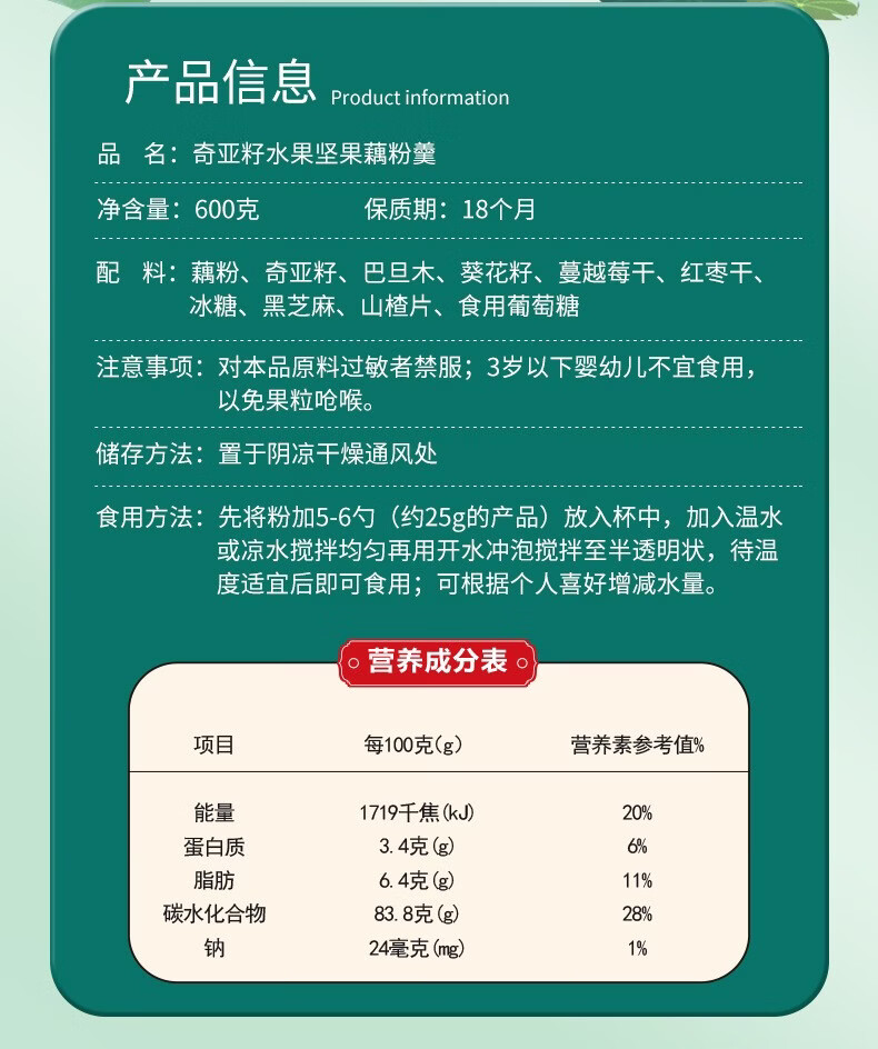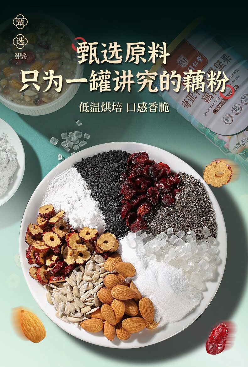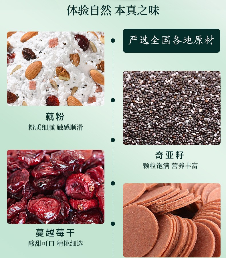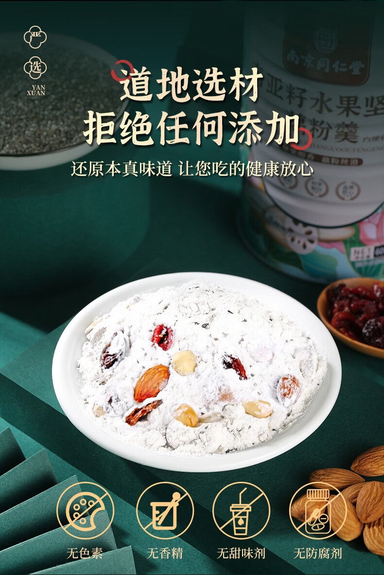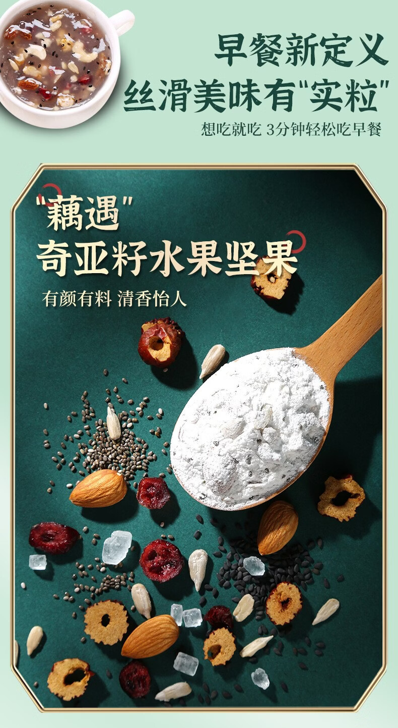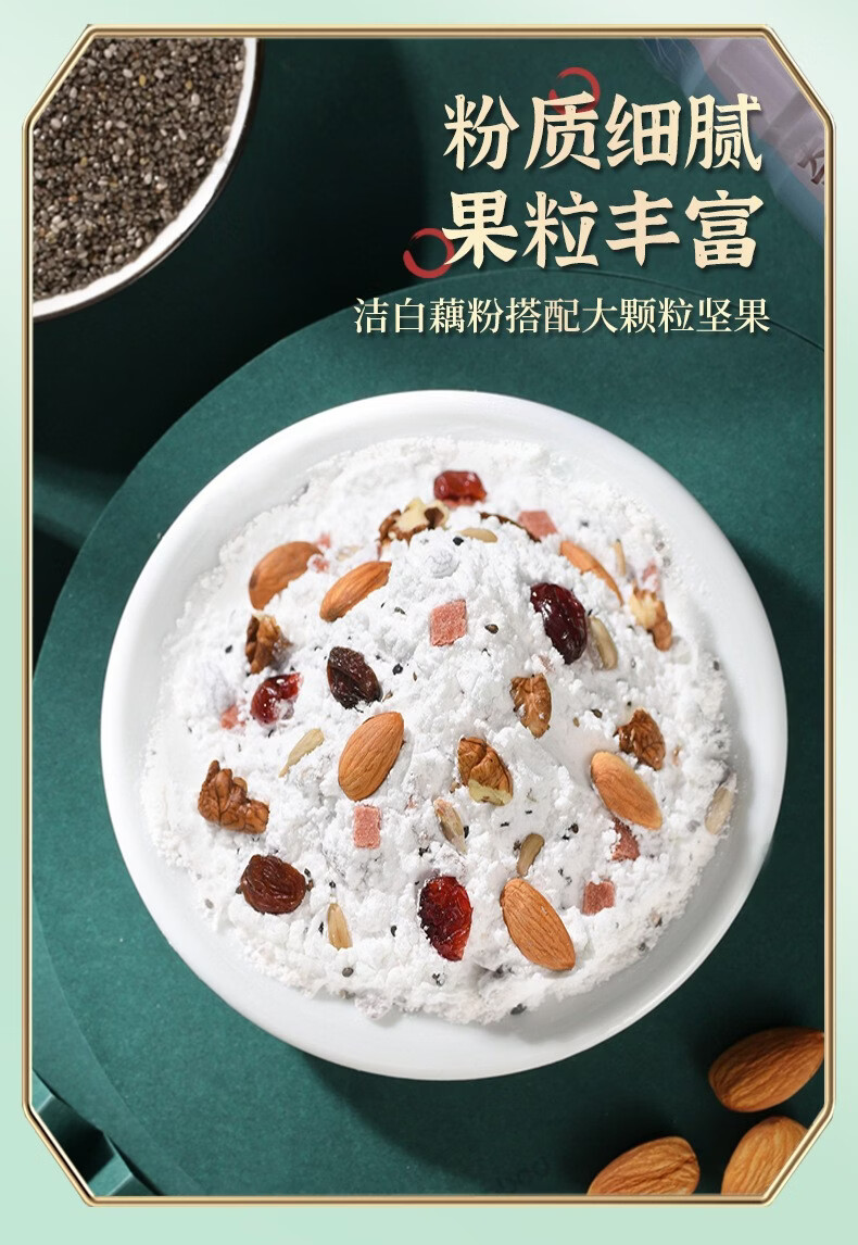 南京同仁堂奇亚籽水果坚果藕粉羹莲藕粉早餐粉饱腹冲调即食代餐食品 奇亚籽水果坚果藕粉羹 600g*1罐