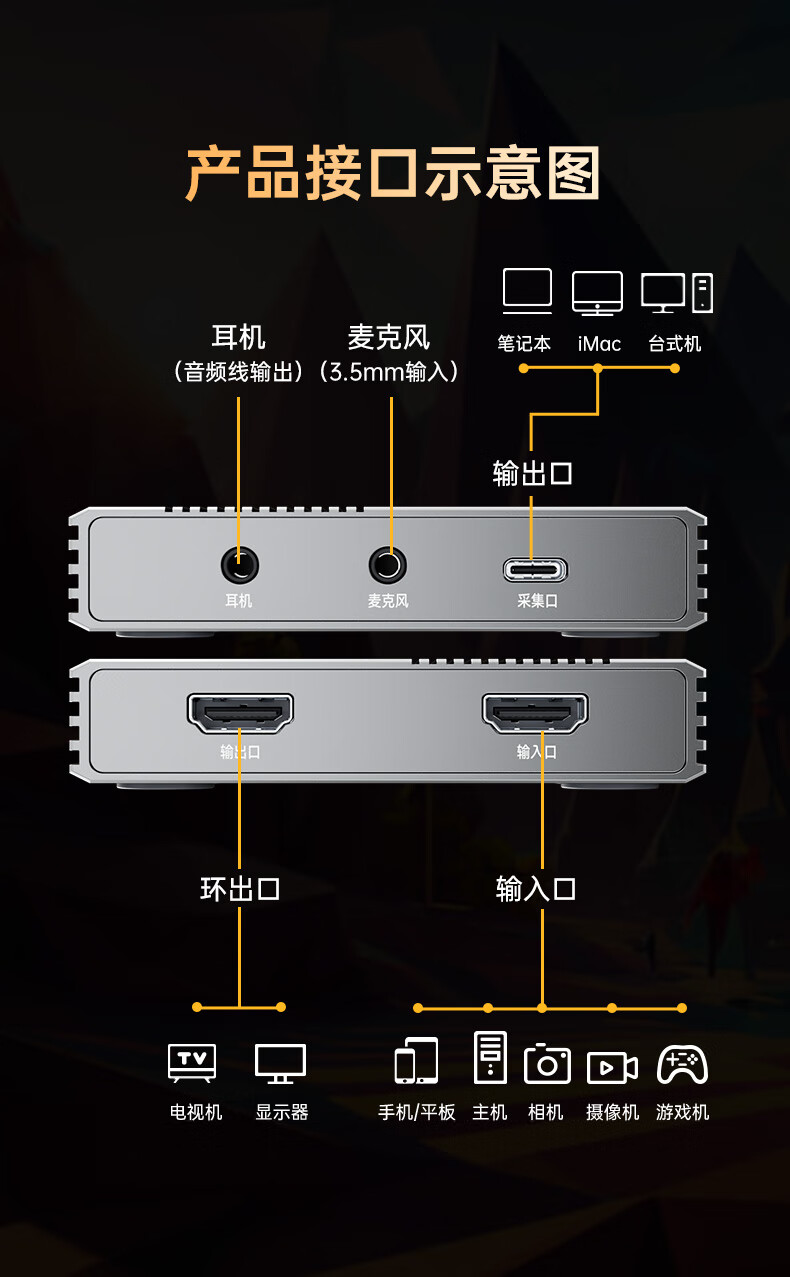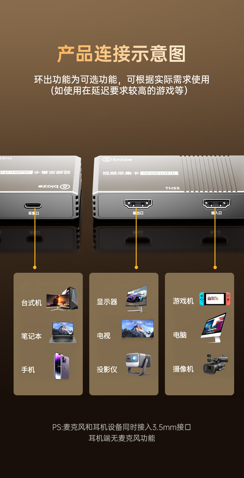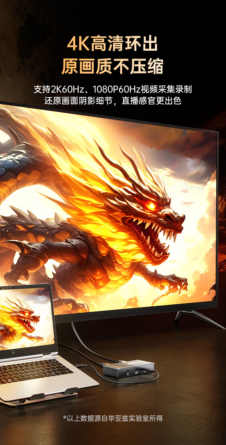 毕亚兹HDMI视频采集卡直播4K60HZ帧 相机高清录制ps5/xbox/Switch2/ipad摄像机游戏笔记本电脑手机USB3.0