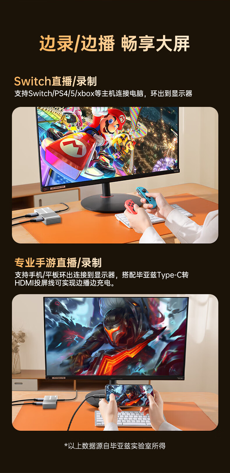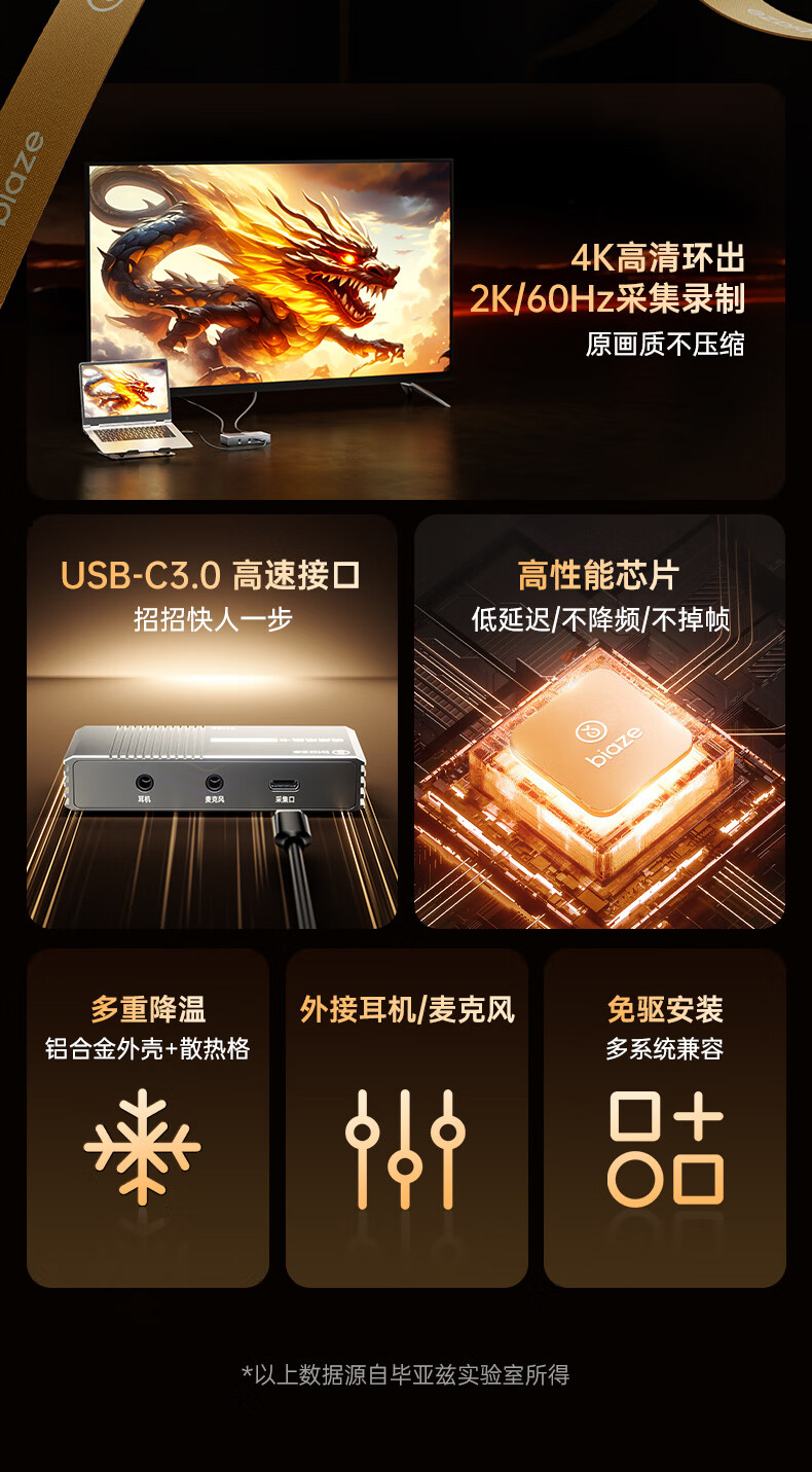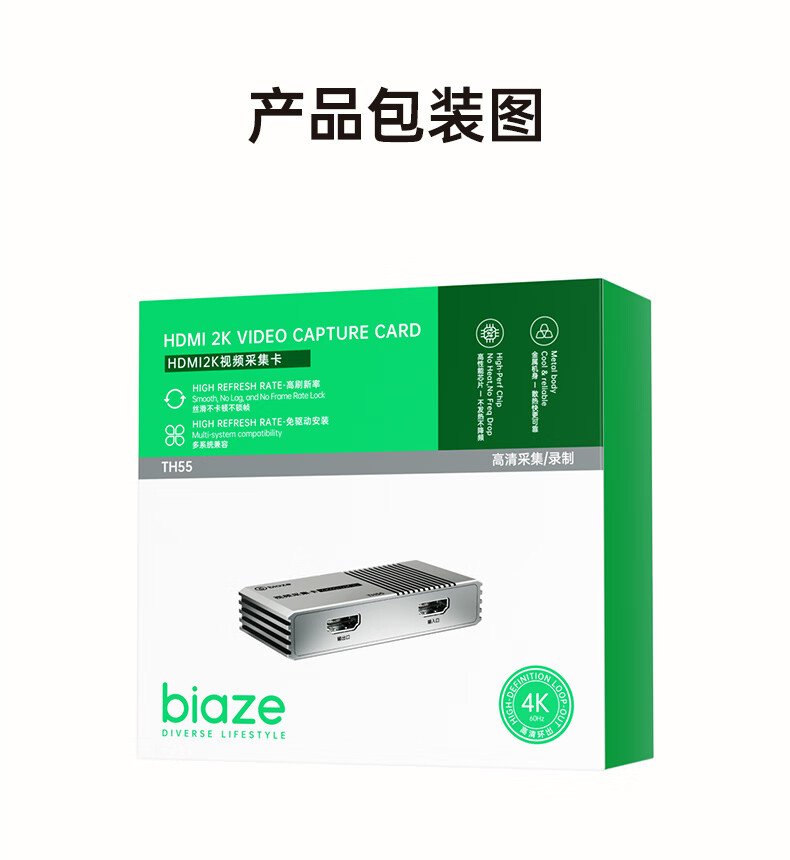 毕亚兹HDMI视频采集卡直播4K60HZ帧 相机高清录制ps5/xbox/Switch2/ipad摄像机游戏笔记本电脑手机USB3.0