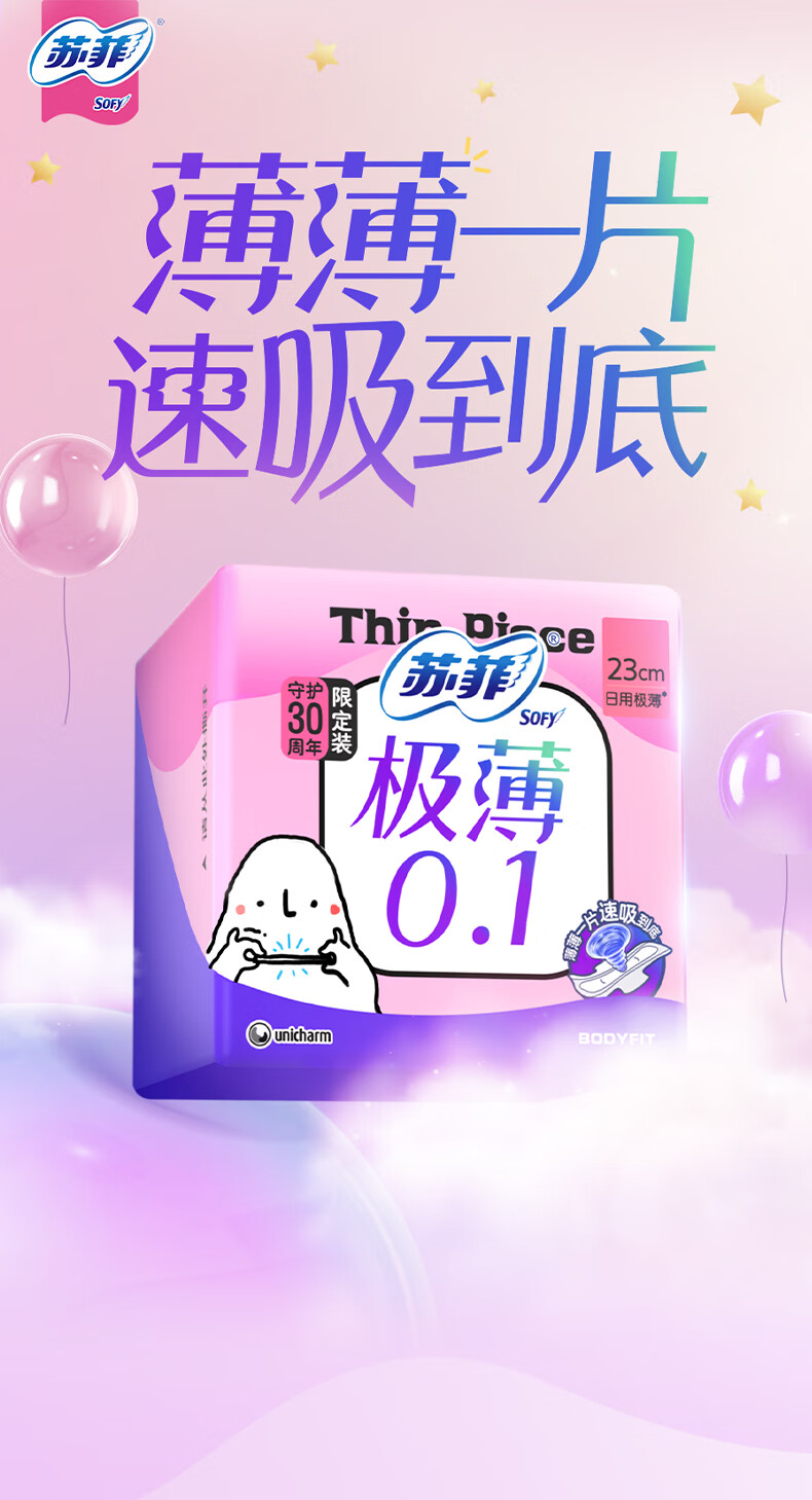 苏菲极薄0.1日用卫生巾230mm 16片 无感干爽透气姨妈巾自营官方旗舰