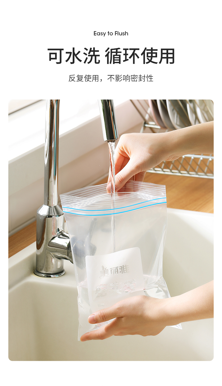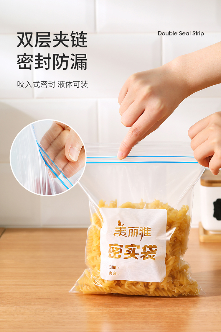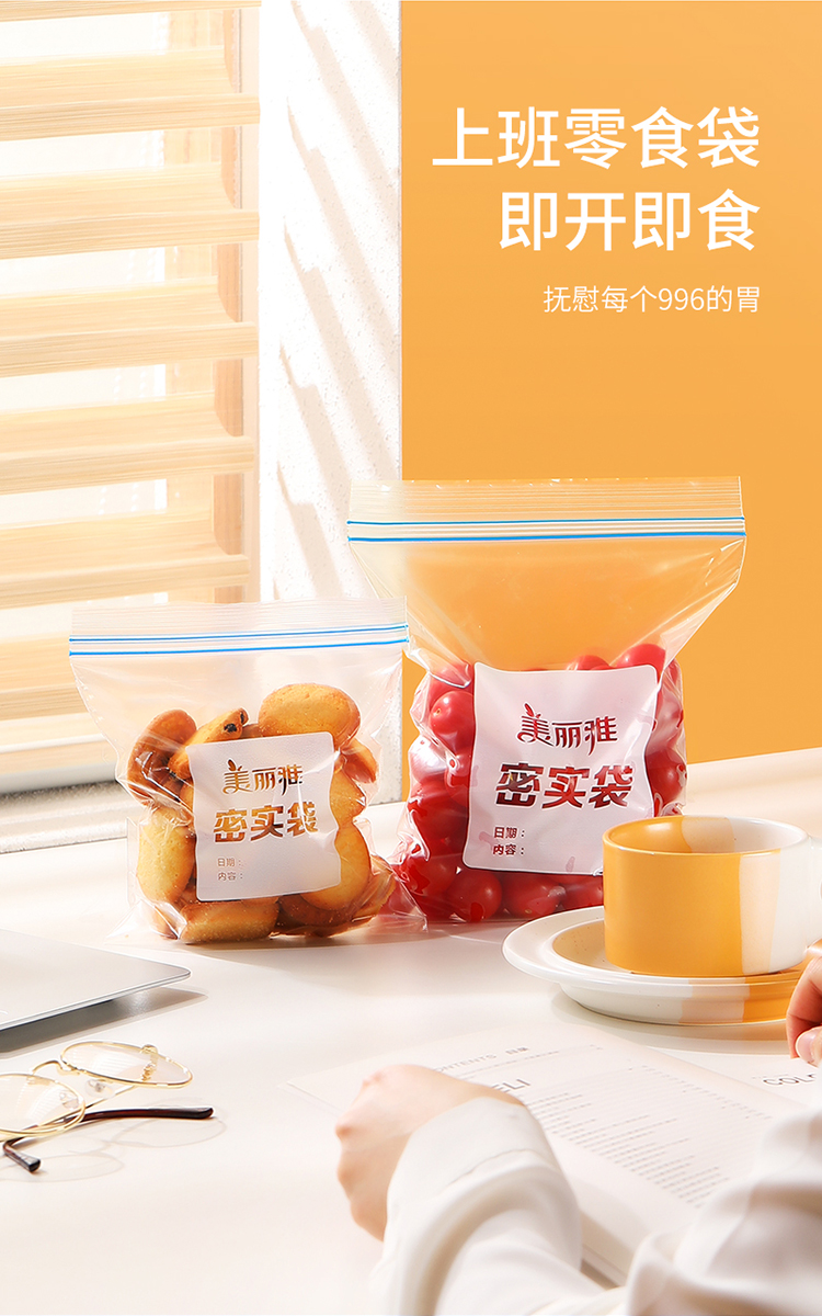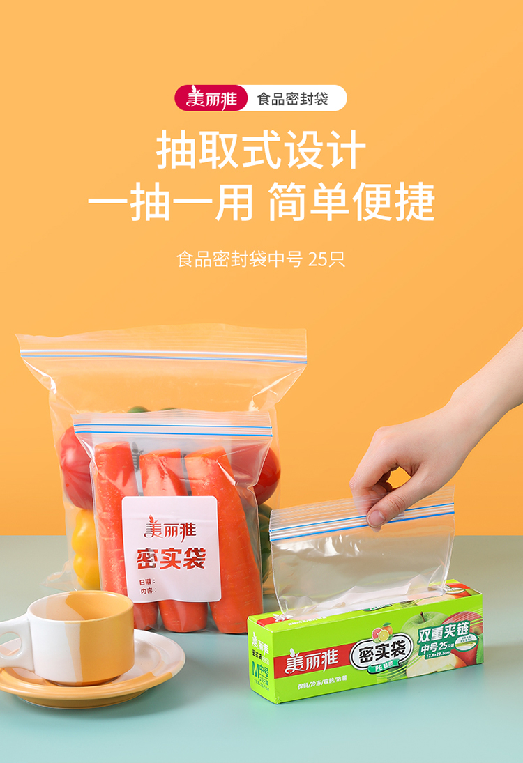 美丽雅自封袋25只 食品密封袋中号储物收纳防尘一次性冰箱分装保鲜袋