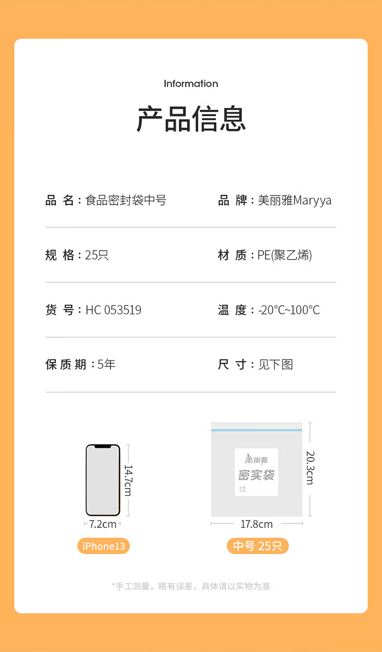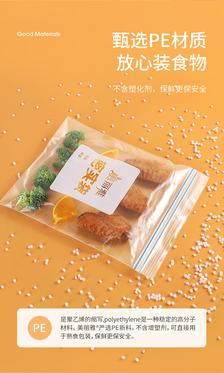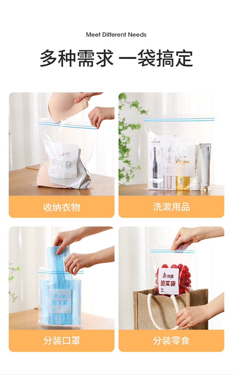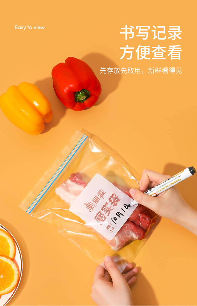 美丽雅自封袋25只 食品密封袋中号储物收纳防尘一次性冰箱分装保鲜袋