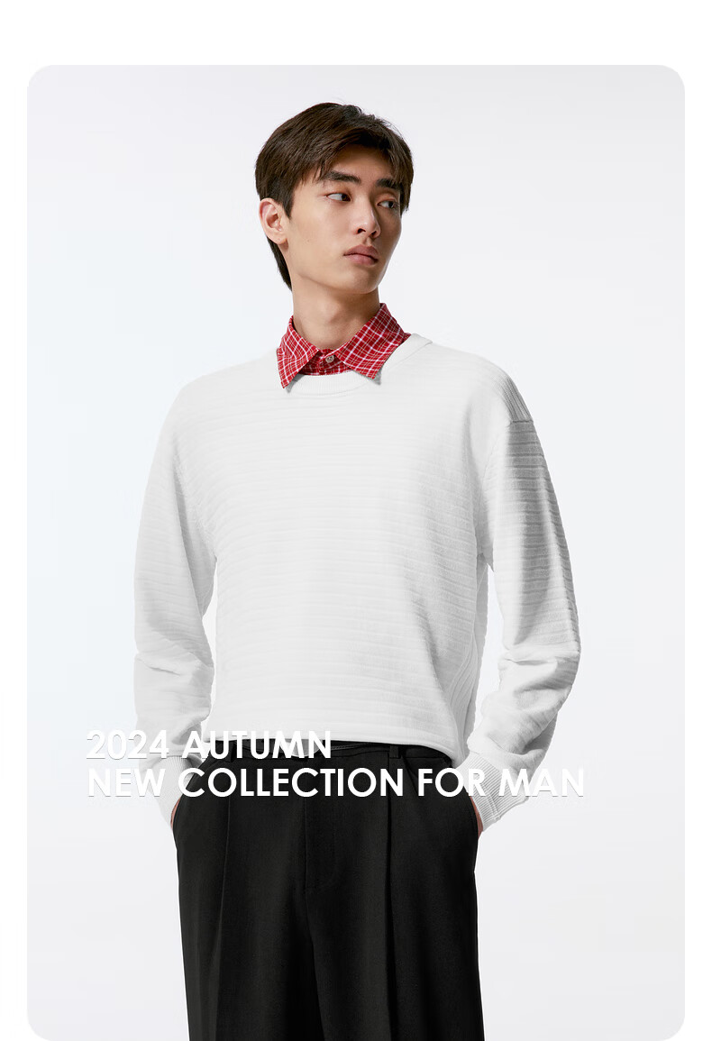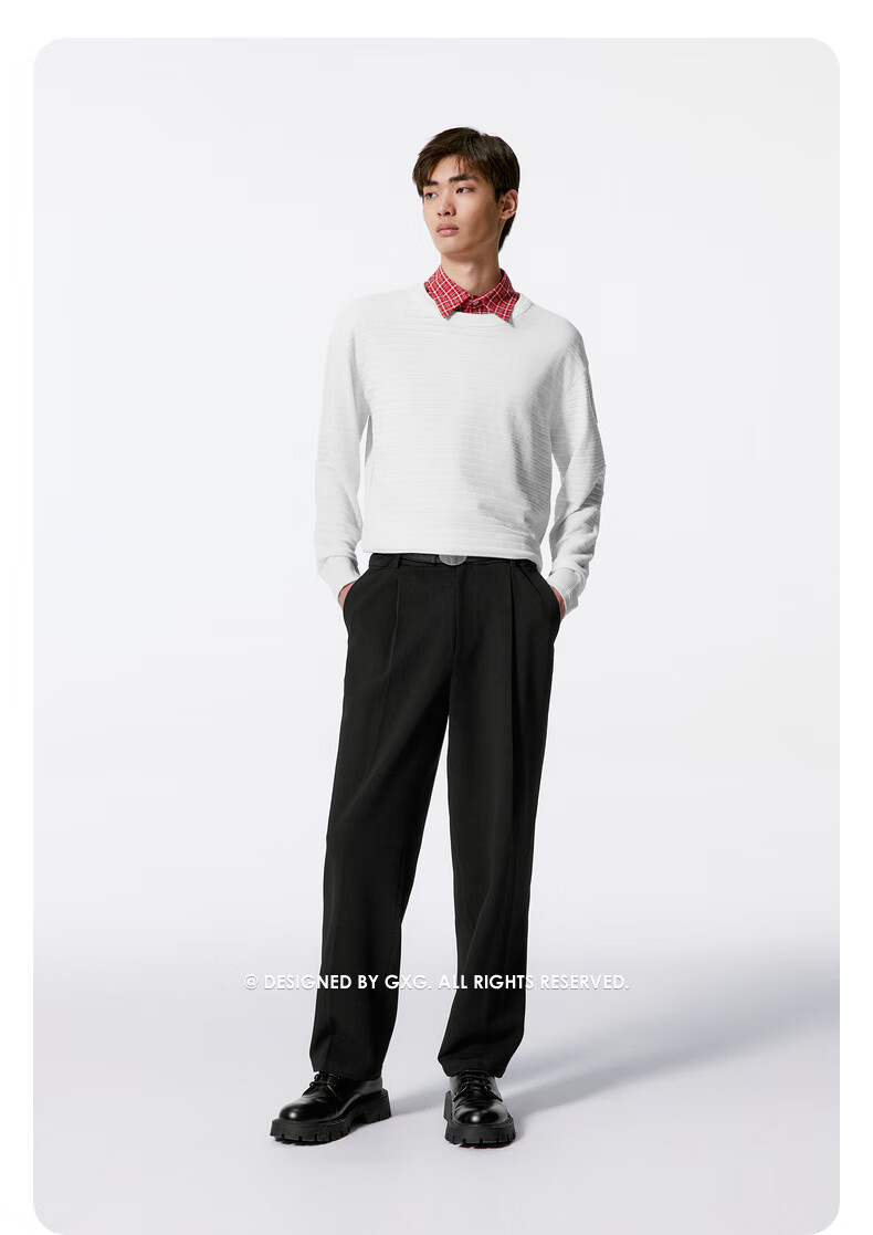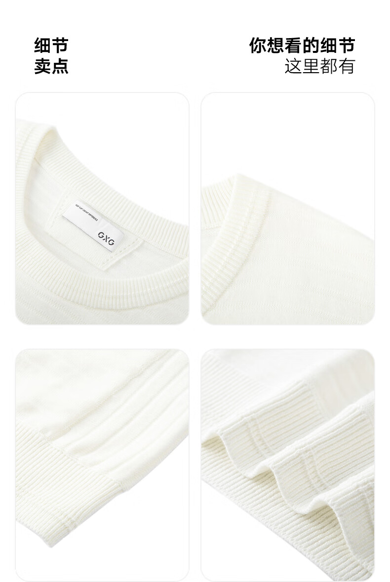 GXG男装针织衫男宽松毛衫毛衣 24年秋 米白 170/M