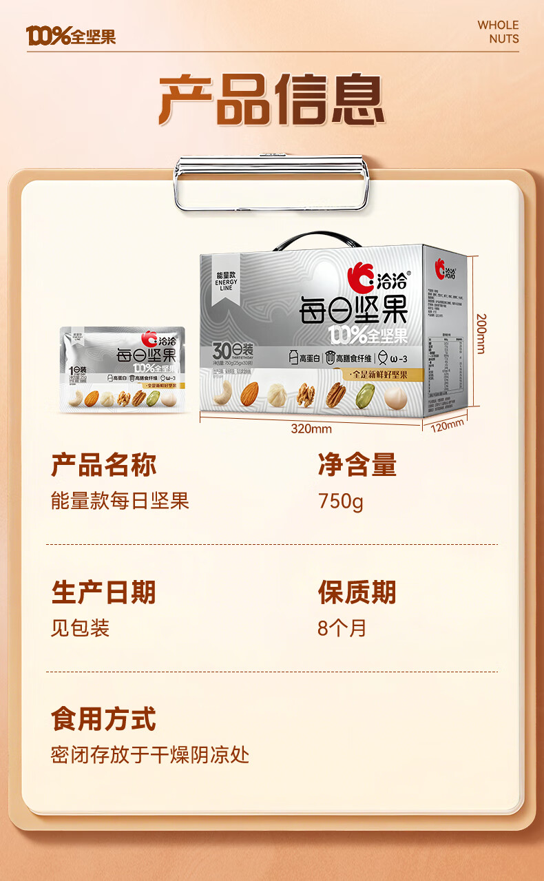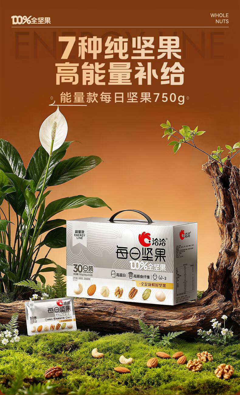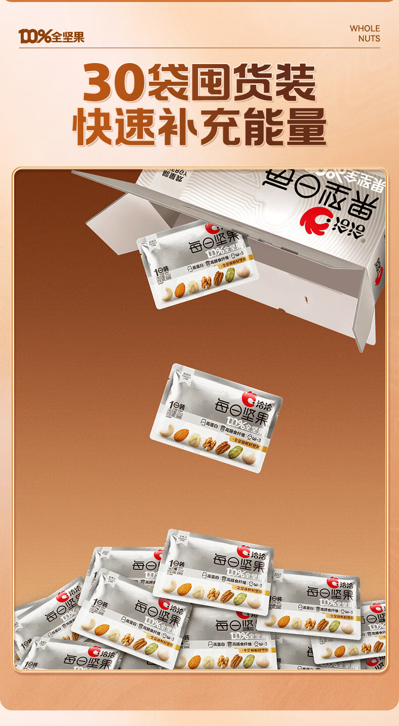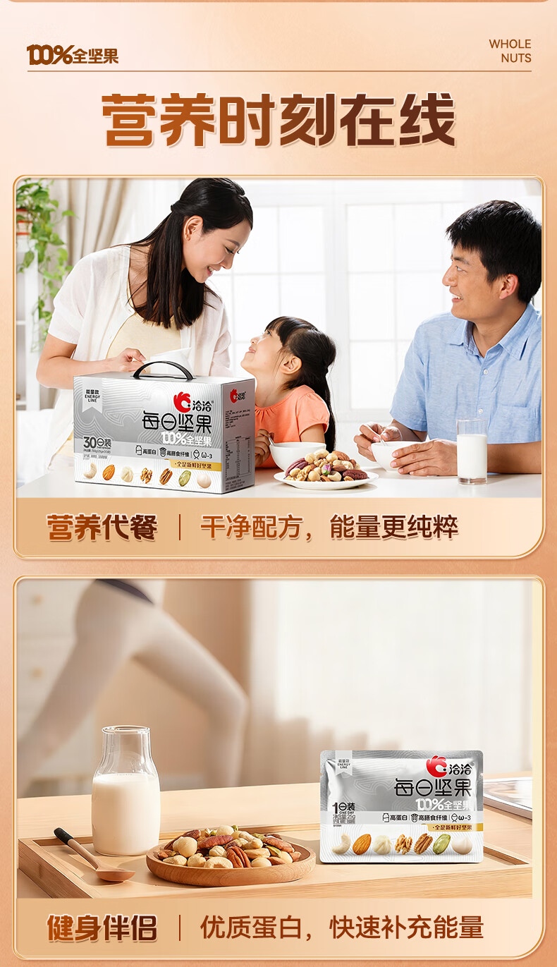 洽洽健身款每日纯坚果750g/30袋装开心果休闲零食坚果礼盒高蛋白年货