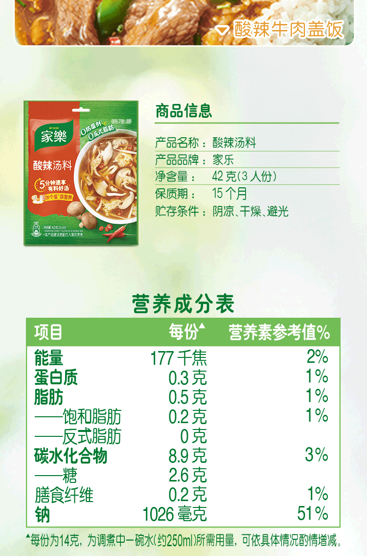 家乐酸辣汤 正宗胡辣汤料包速食方便早餐宵夜家用42gX5袋