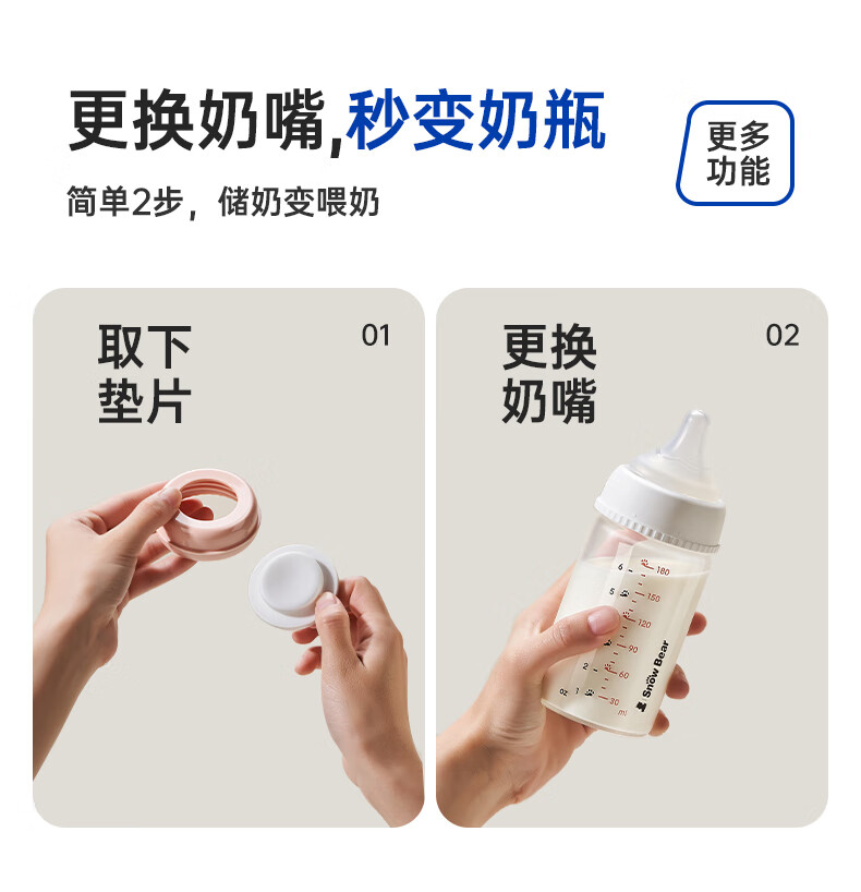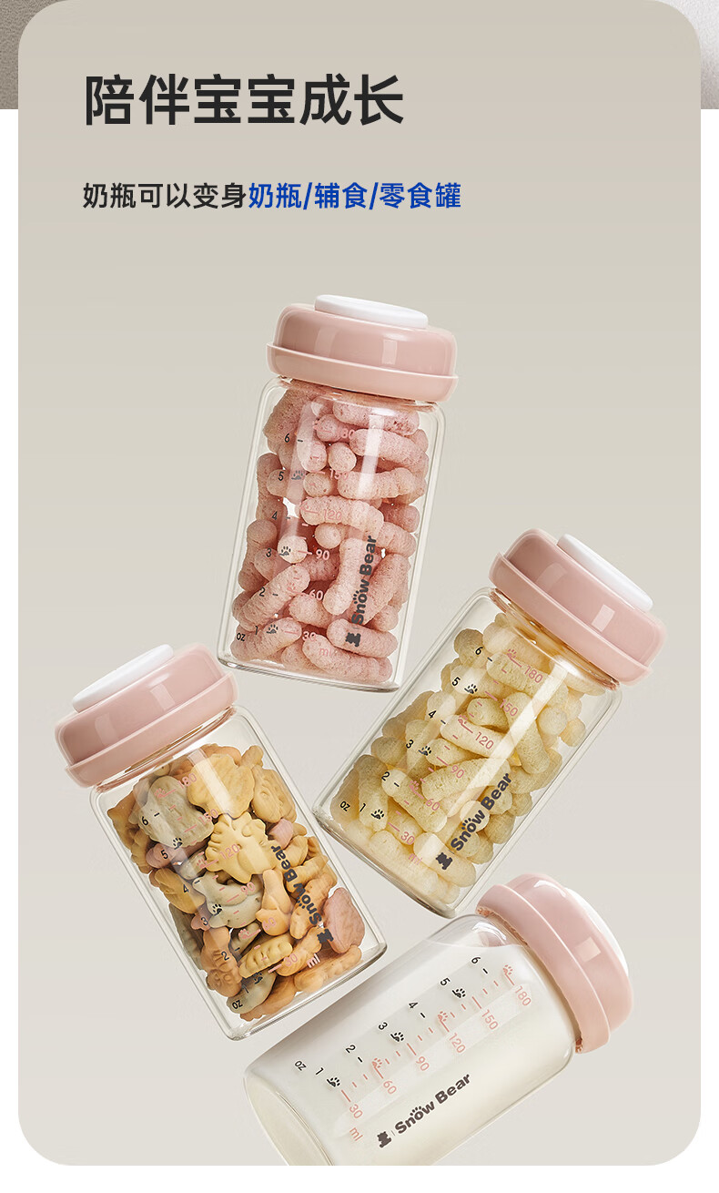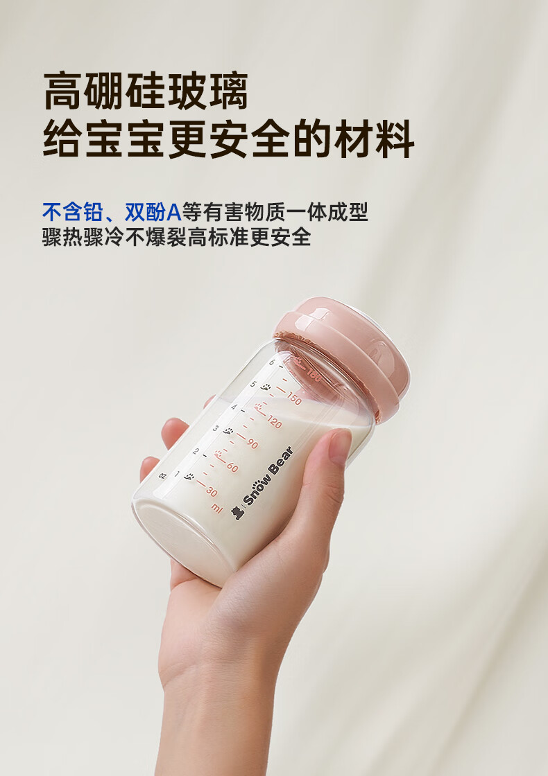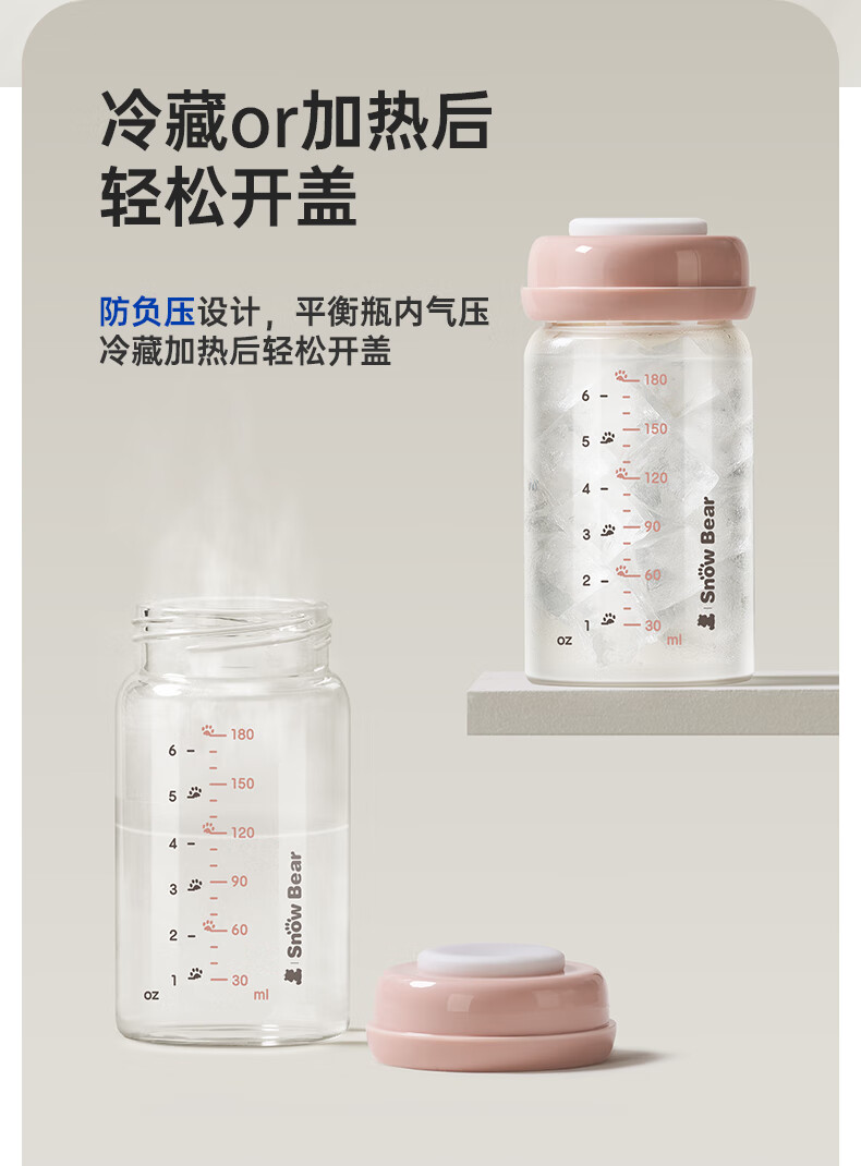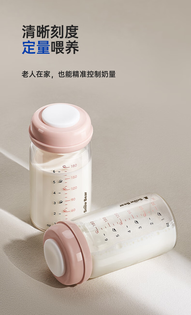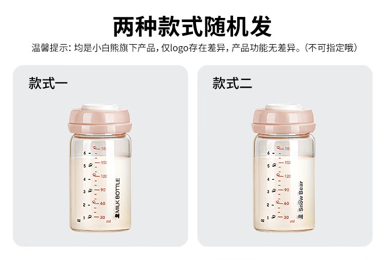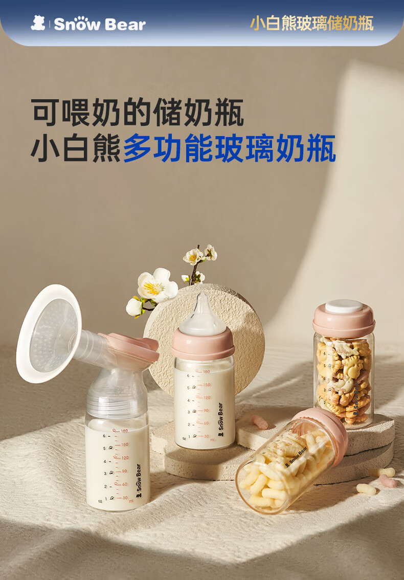小白熊SnowBear玻璃储奶瓶 新生儿婴儿宝宝奶瓶母乳保鲜存奶瓶2个装180ML8885