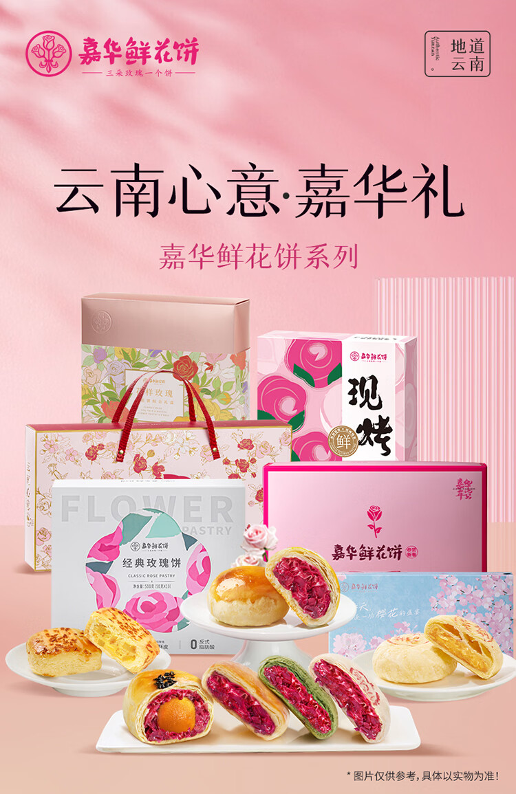 嘉华鲜花饼经典玫瑰饼云南特产伴手礼糕点心小吃面包休闲零食早餐 【mini小克重】经典玫瑰饼35g*10枚京东自营