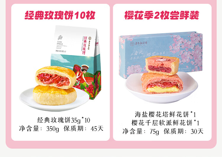 嘉华鲜花饼经典玫瑰饼云南特产伴手礼糕点心小吃面包休闲零食早餐 【mini小克重】经典玫瑰饼35g*10枚