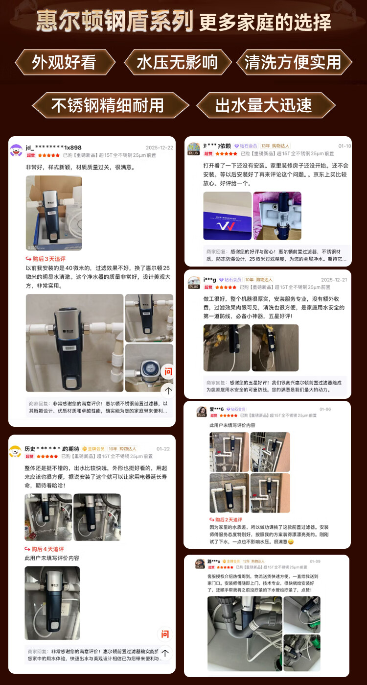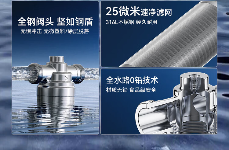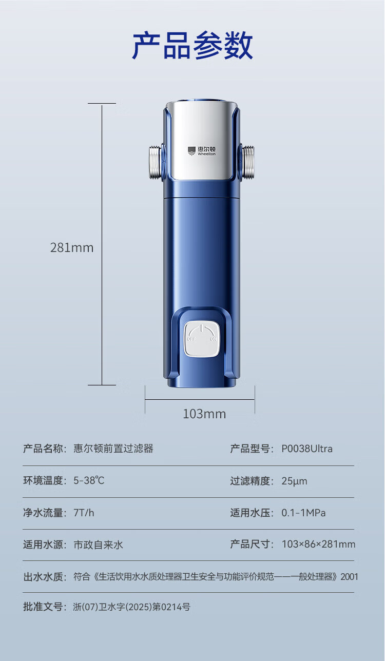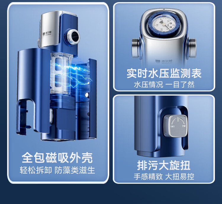 惠尔顿(WHEELTON)前置过滤器自动清洗超15T大通量不锈钢防冻防爆25微米全屋家用净水器滤水器钢盾P0038Ultra
