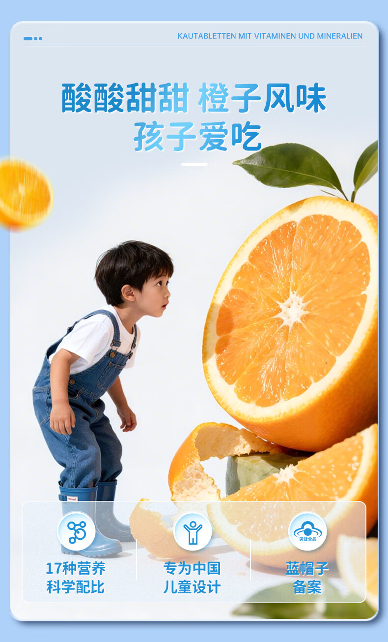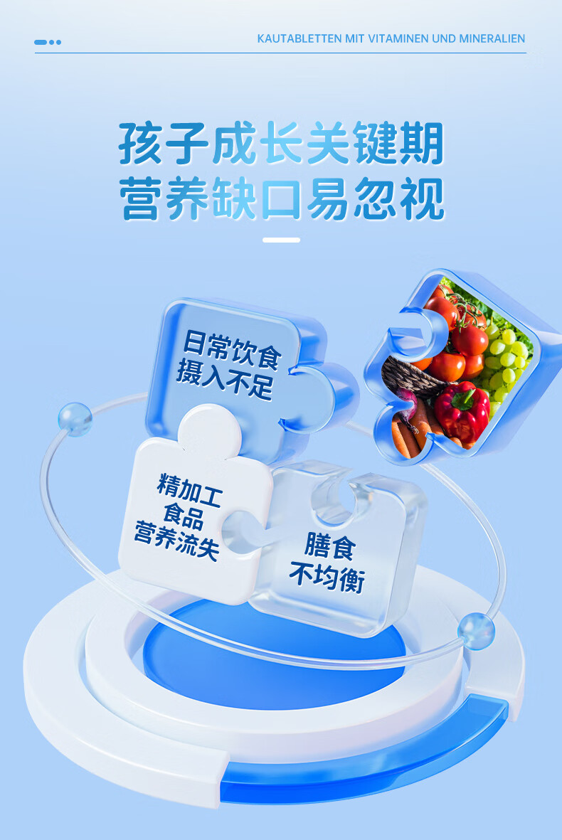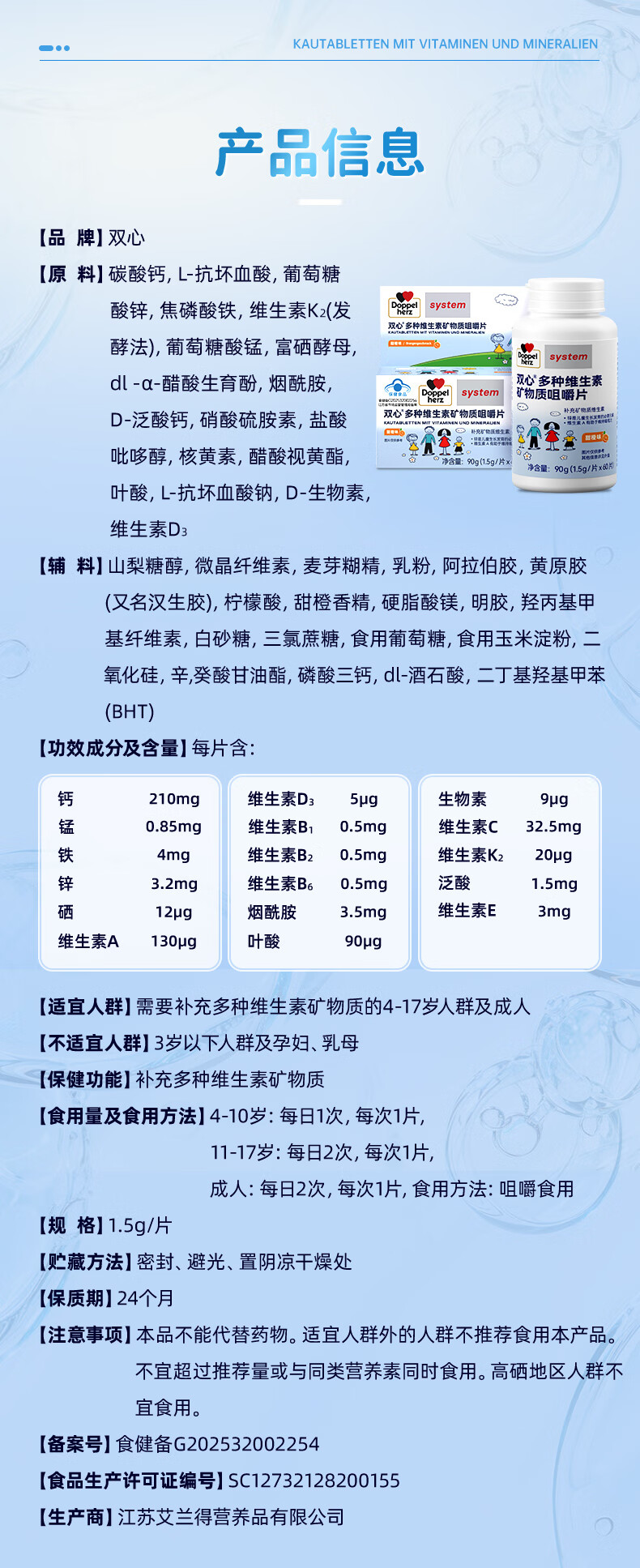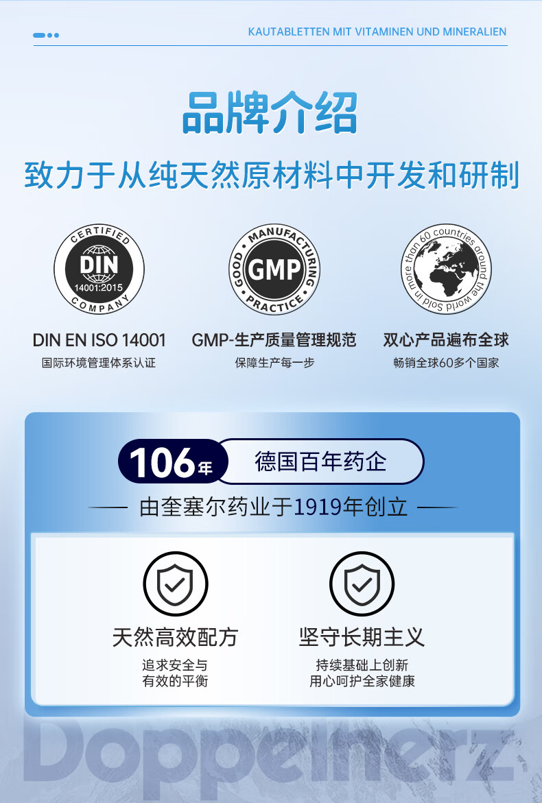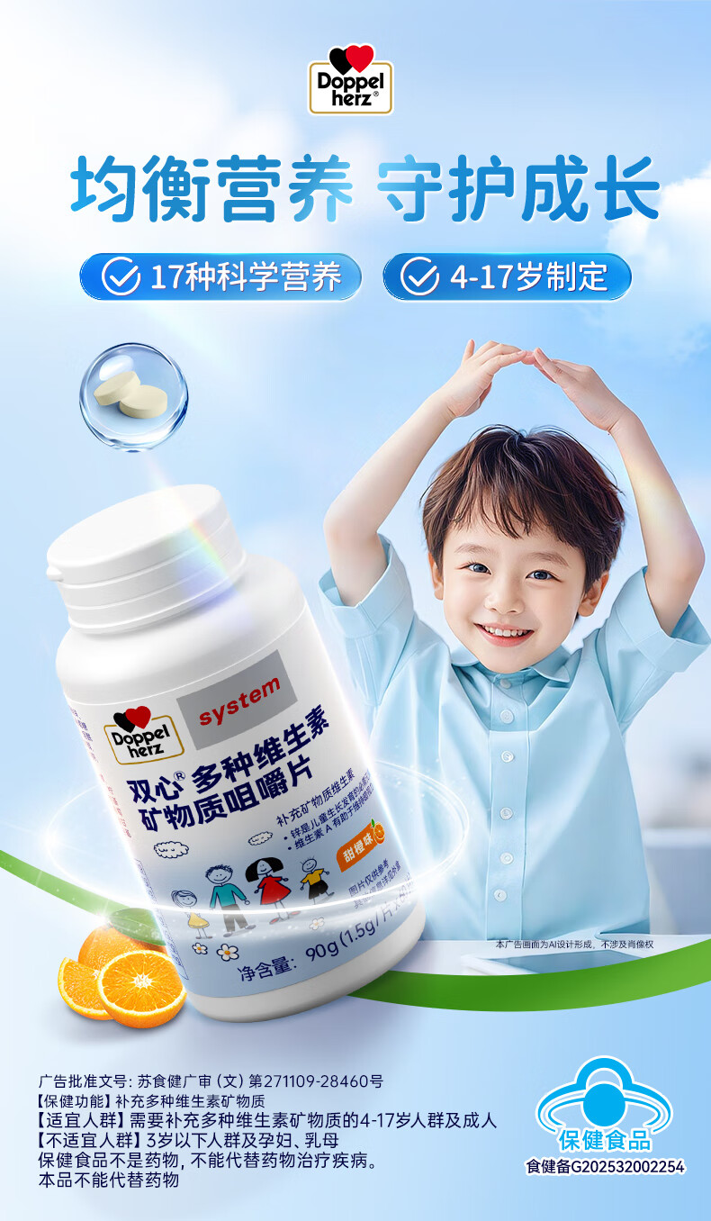 双心(Doppel herz)儿童钙片60粒/瓶咀嚼片4-17岁青少年钙铁锌硒17种营养维生素abcde 【周期组合】多维钙片 60片*3瓶