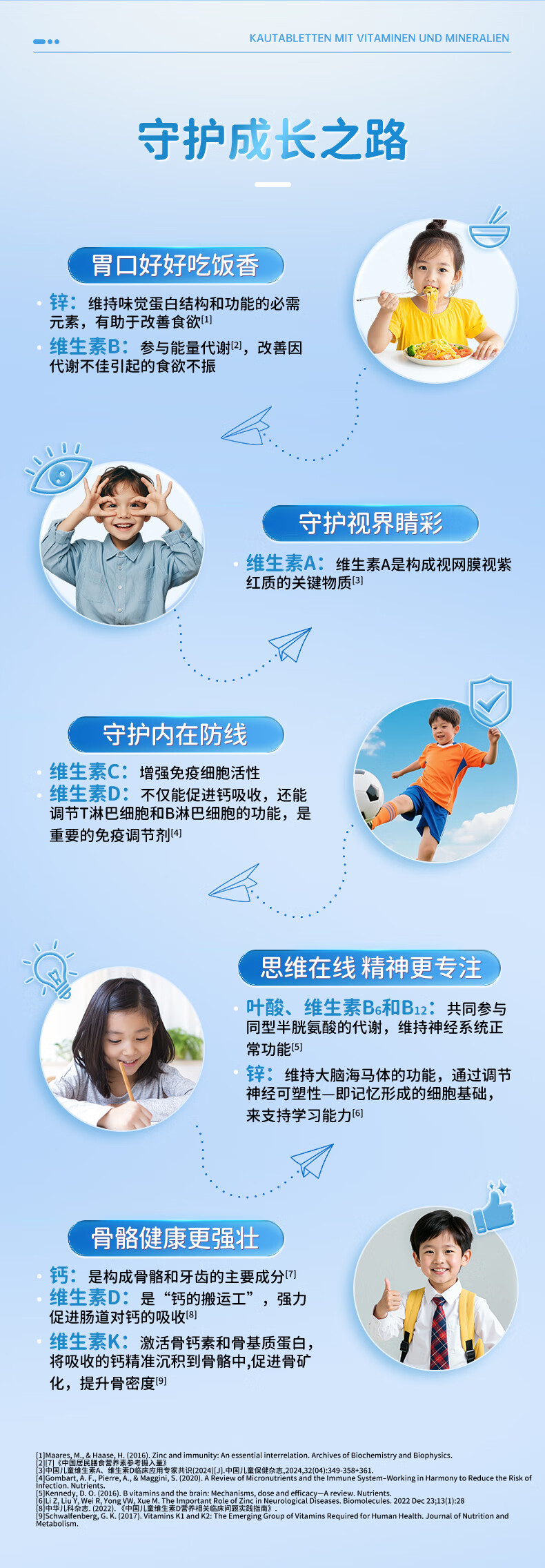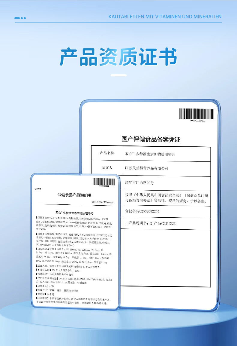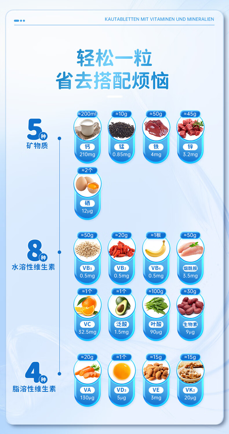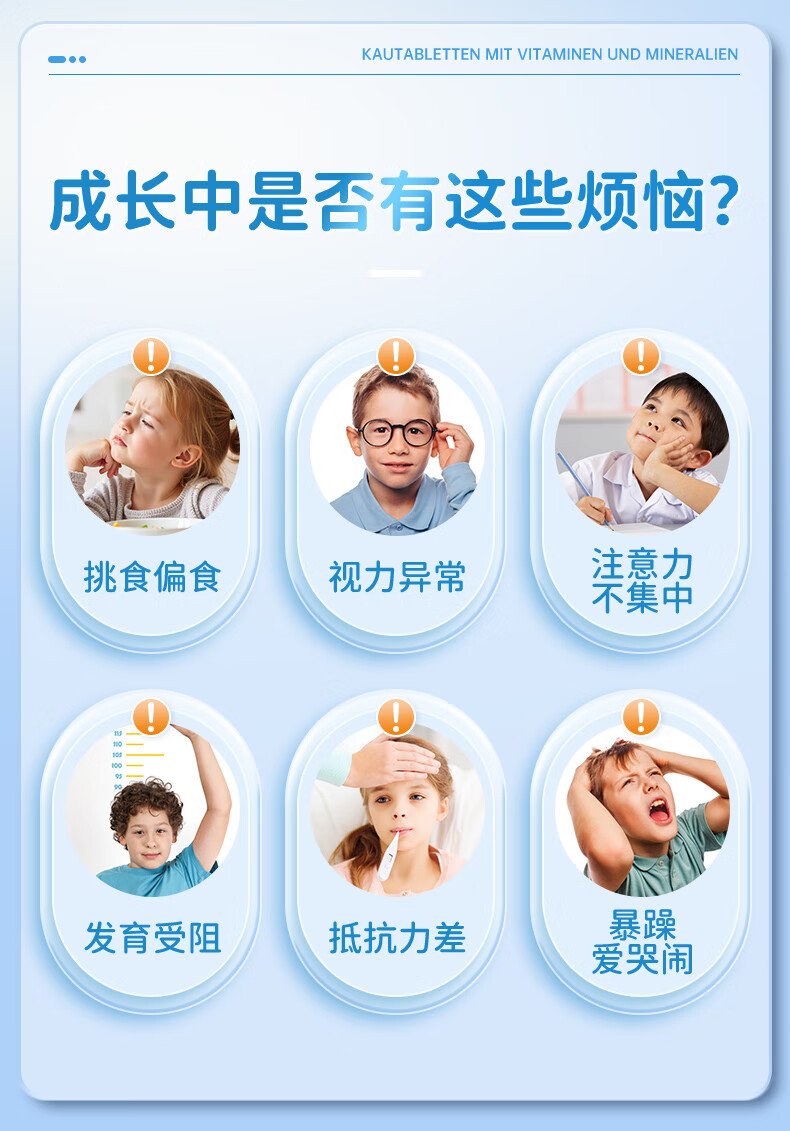 双心(Doppel herz)儿童钙片60粒/瓶咀嚼片4-17岁青少年钙铁锌硒17种营养维生素abcde 【周期组合】多维钙片 60片*3瓶