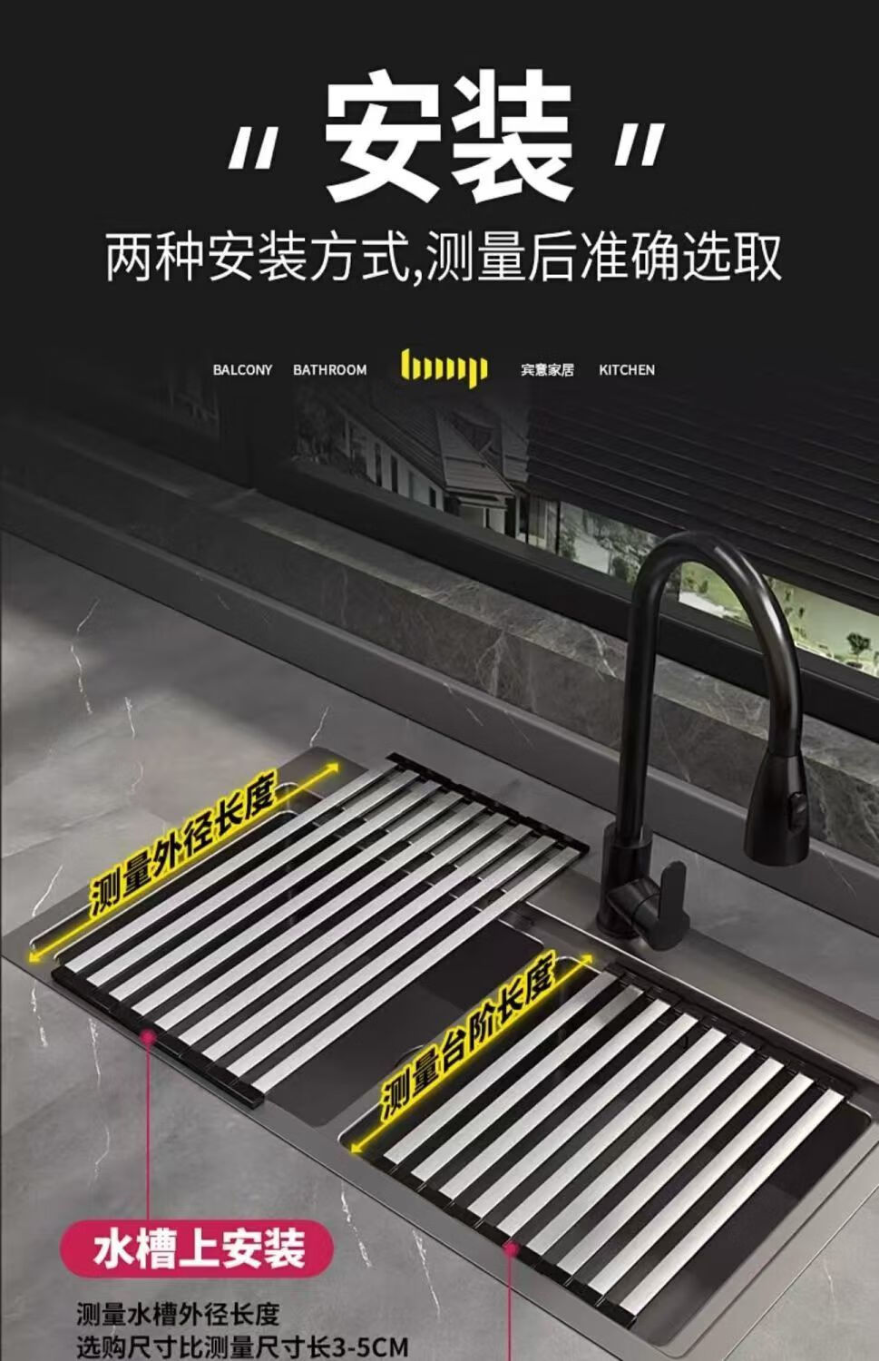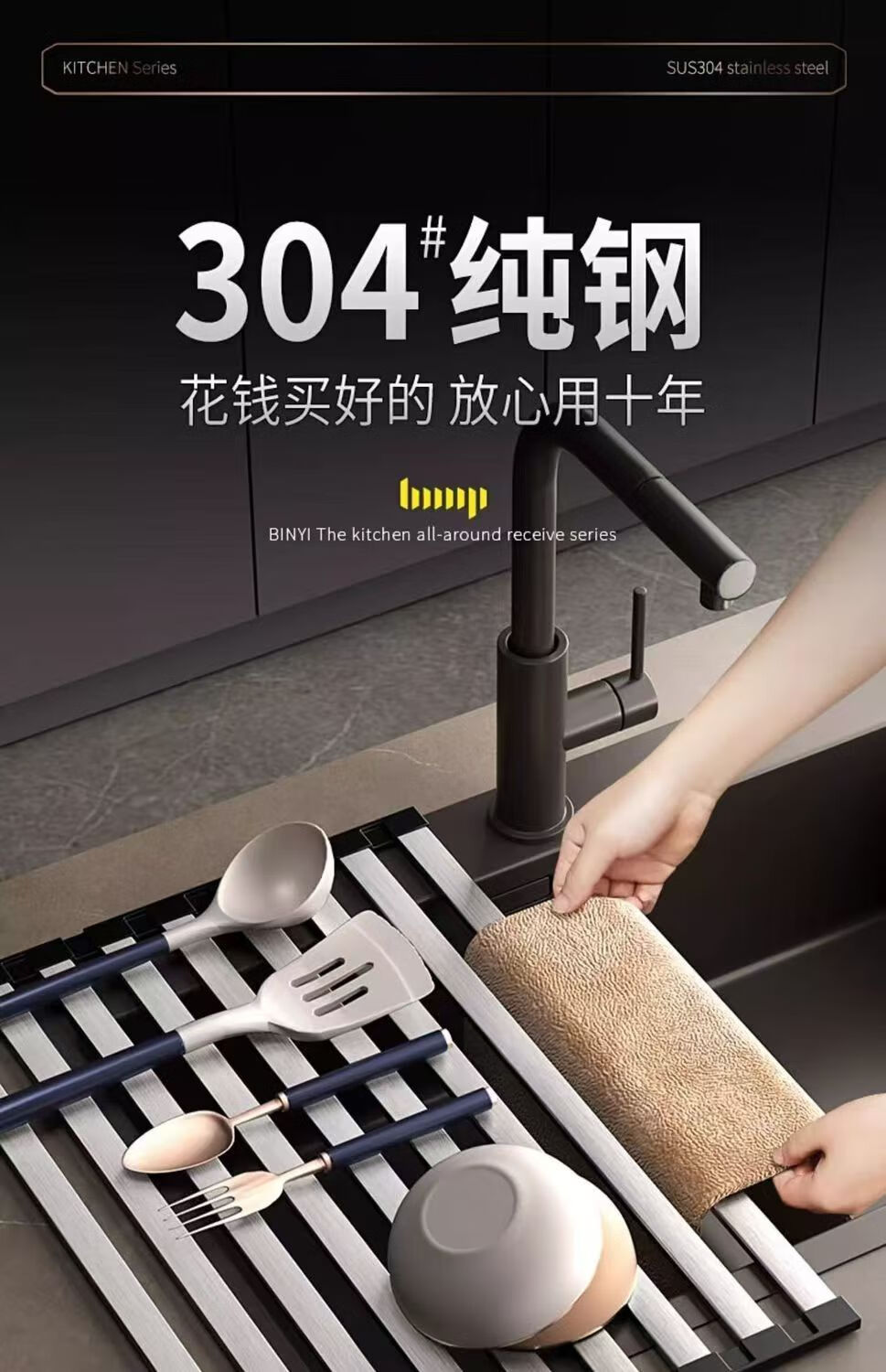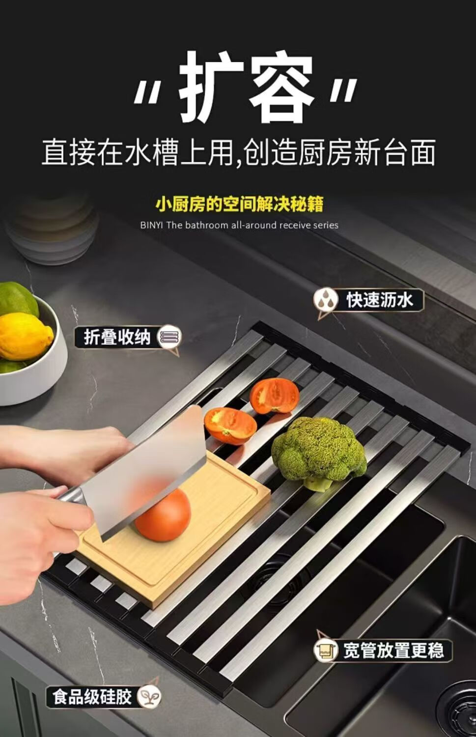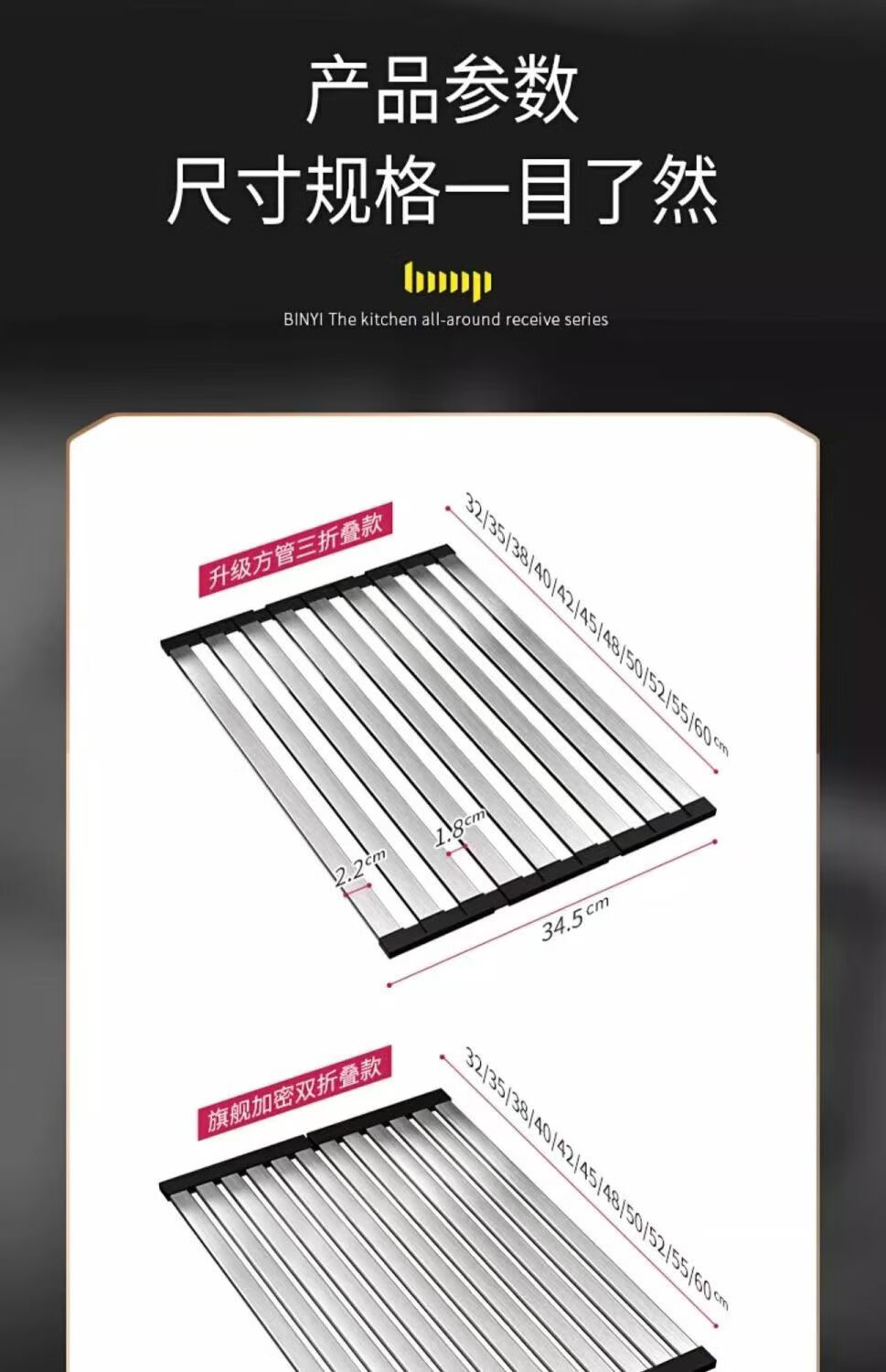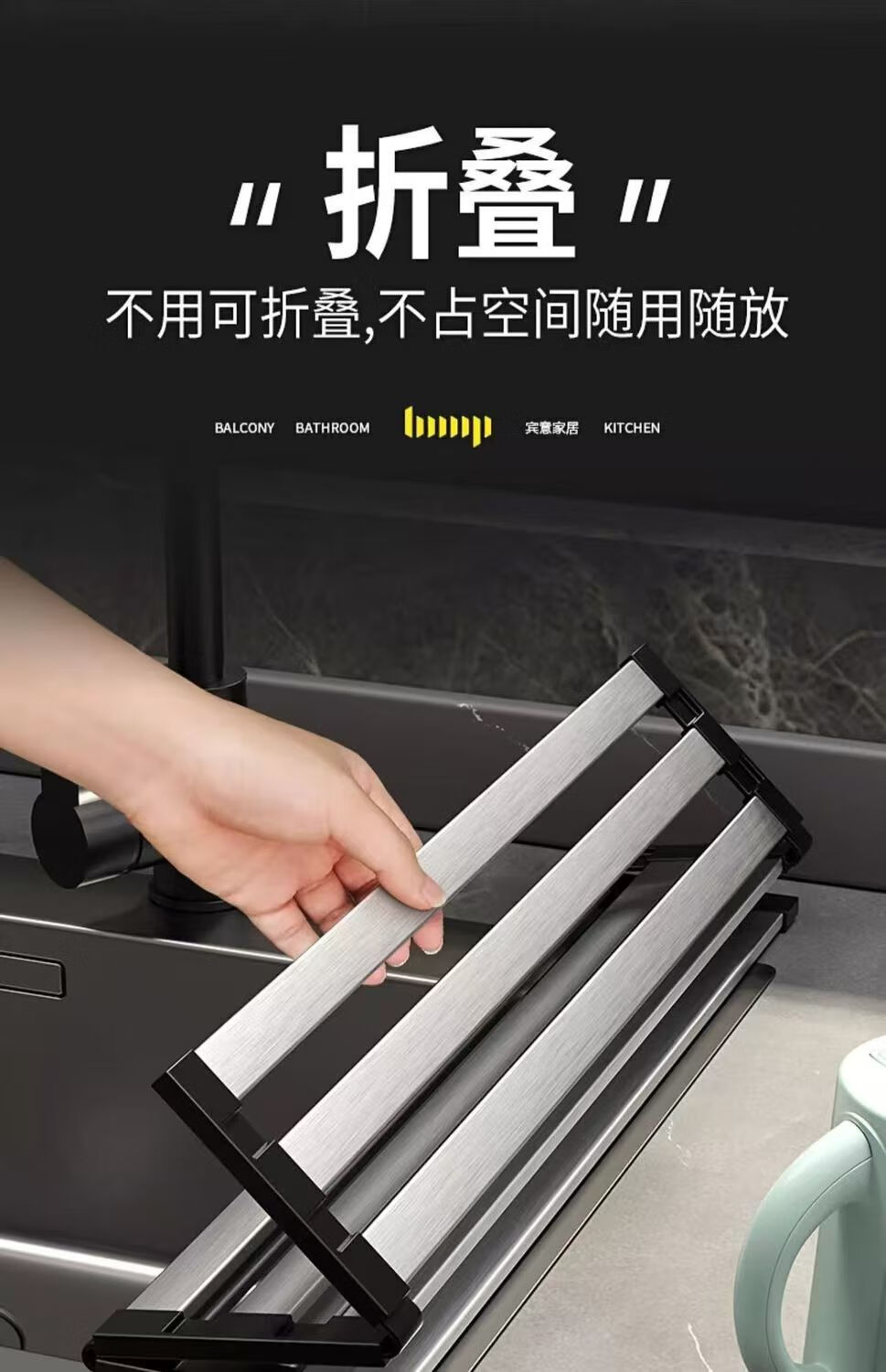 京严水槽沥水架可折叠置物架304不锈钢碗碟盘收纳架水池沥碗架洗菜篮