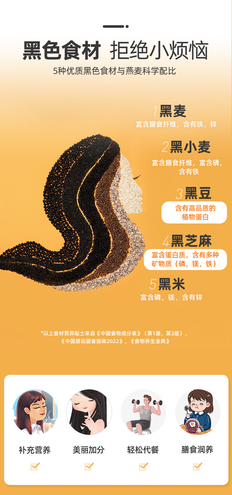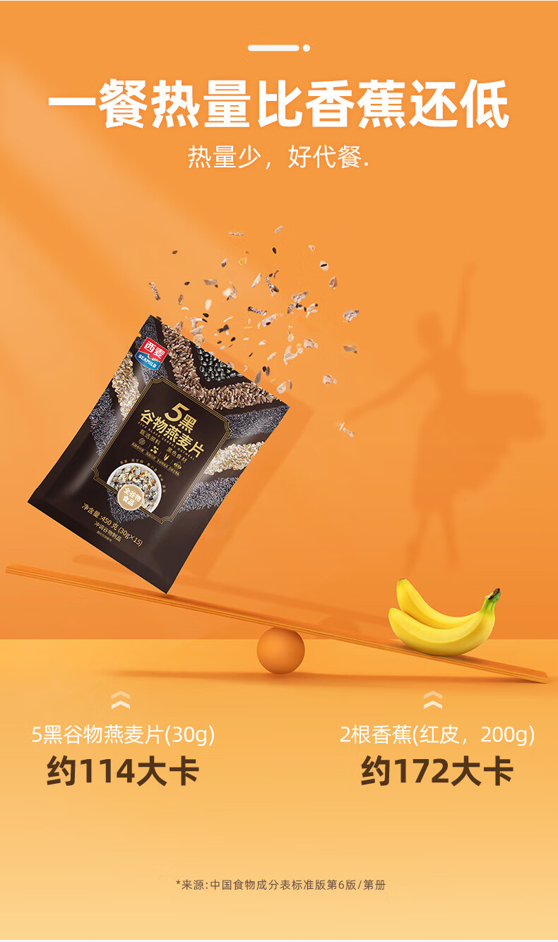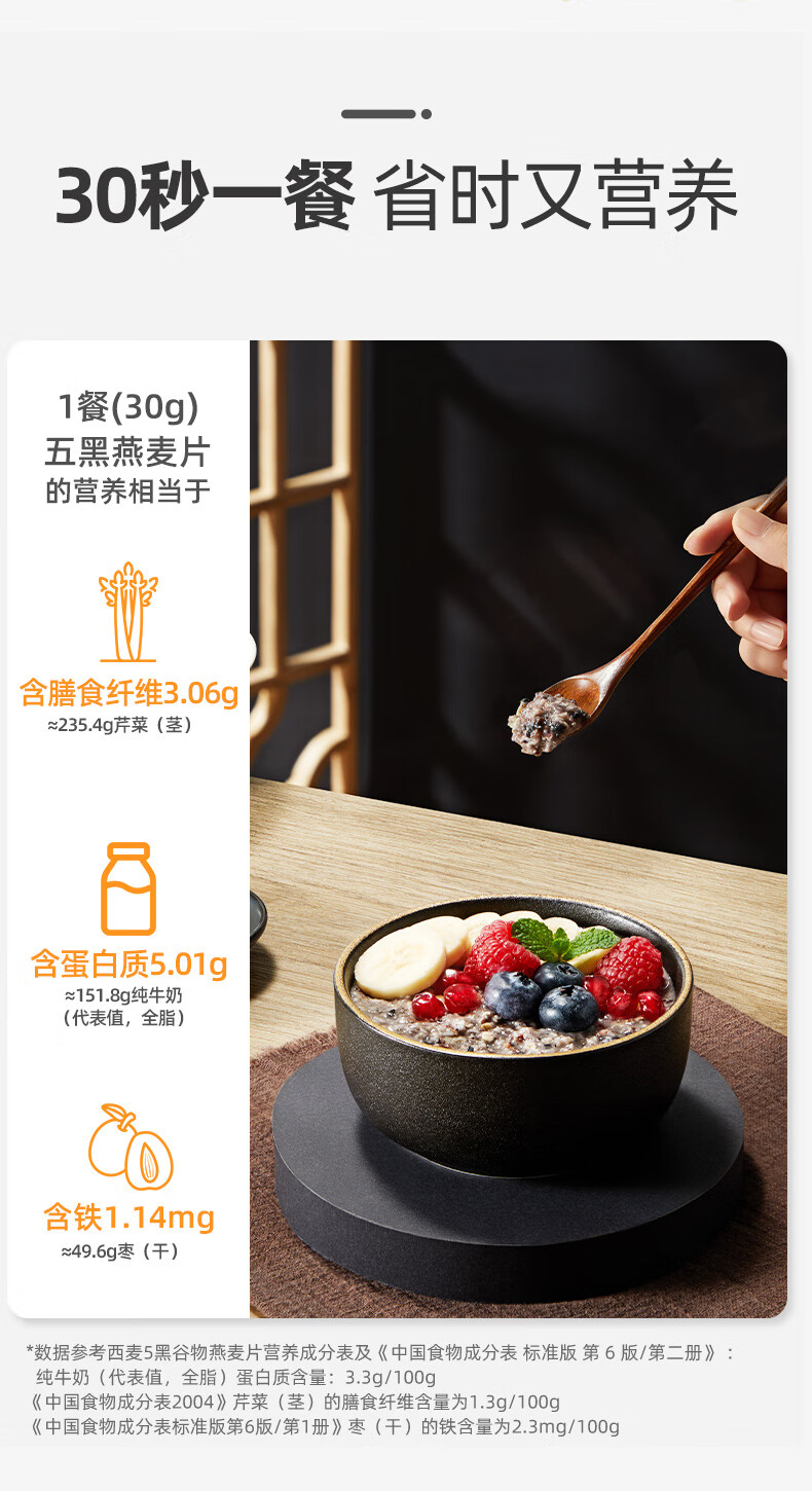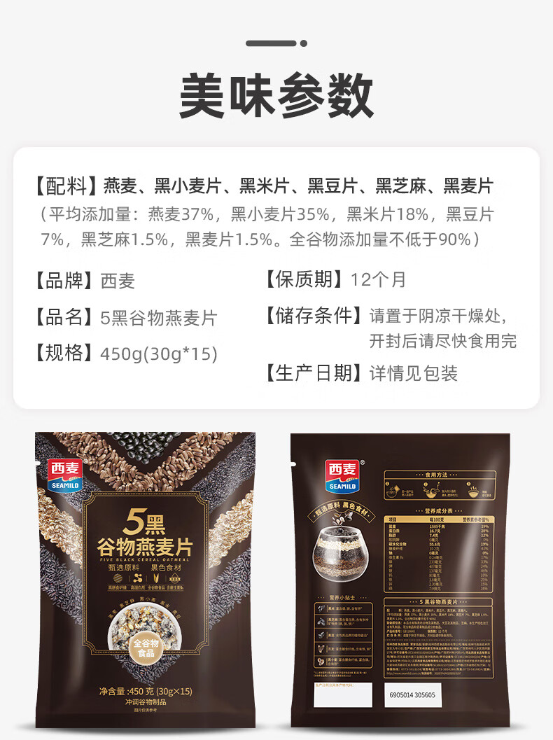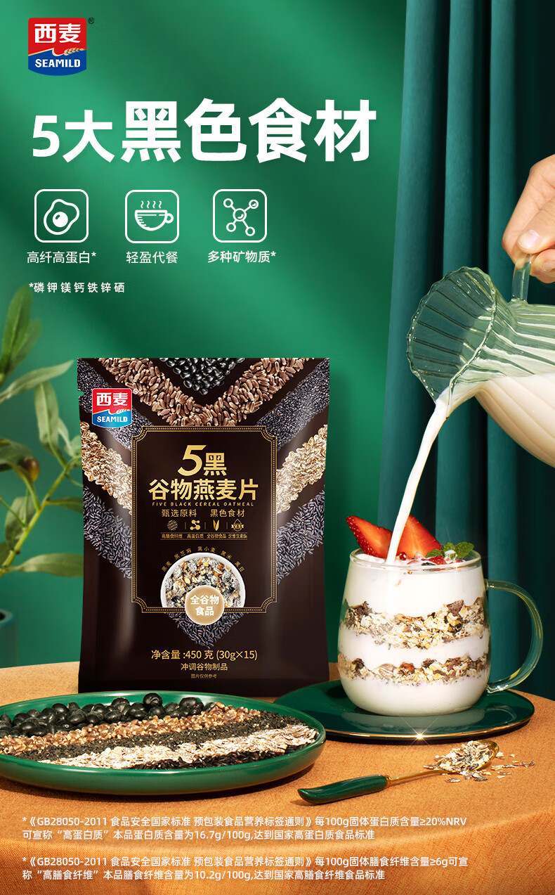 西麦5黑混合谷物燕麦片450g 冲饮谷物代餐即食营养早餐无额外添加蔗糖