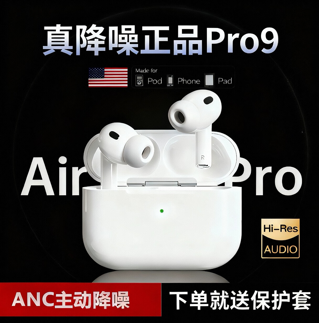 木馨【厂家新款华强北顶配版Pro9】蓝牙耳机全功能主动降噪苹果无线iphone17/16/15/ 13最新一代入耳式 真降噪+定位+空间音频+三真电量