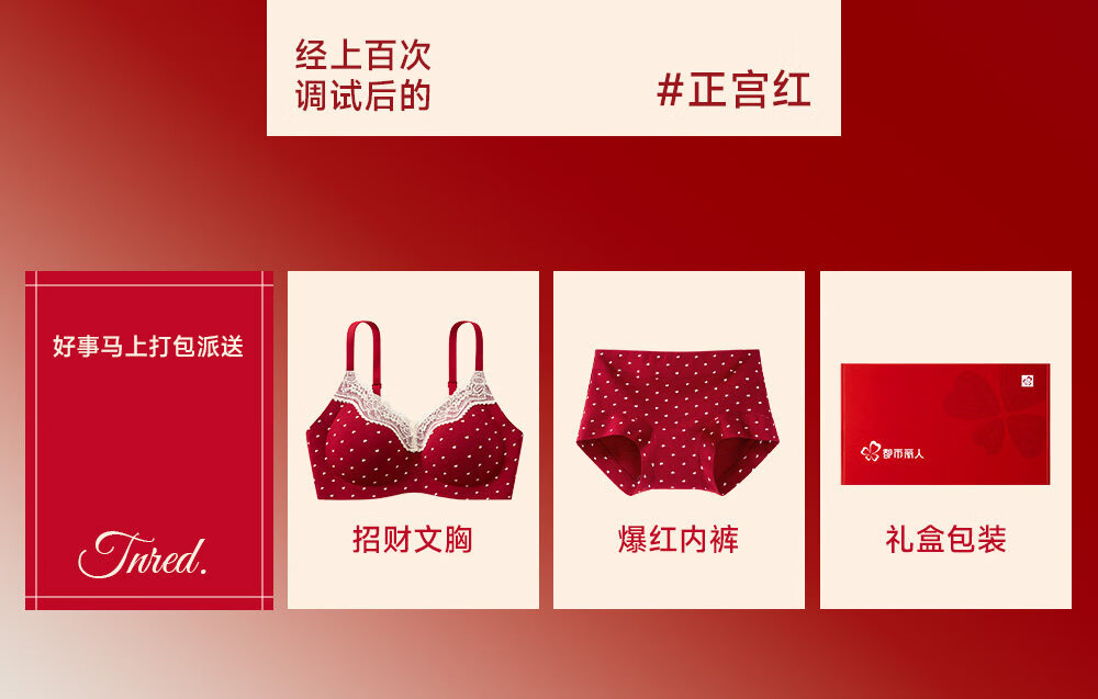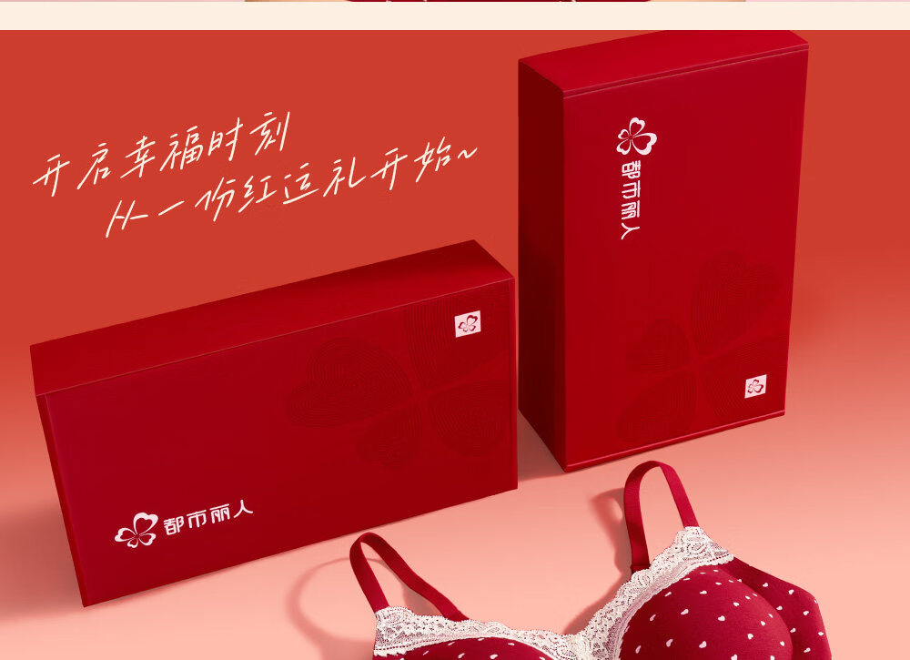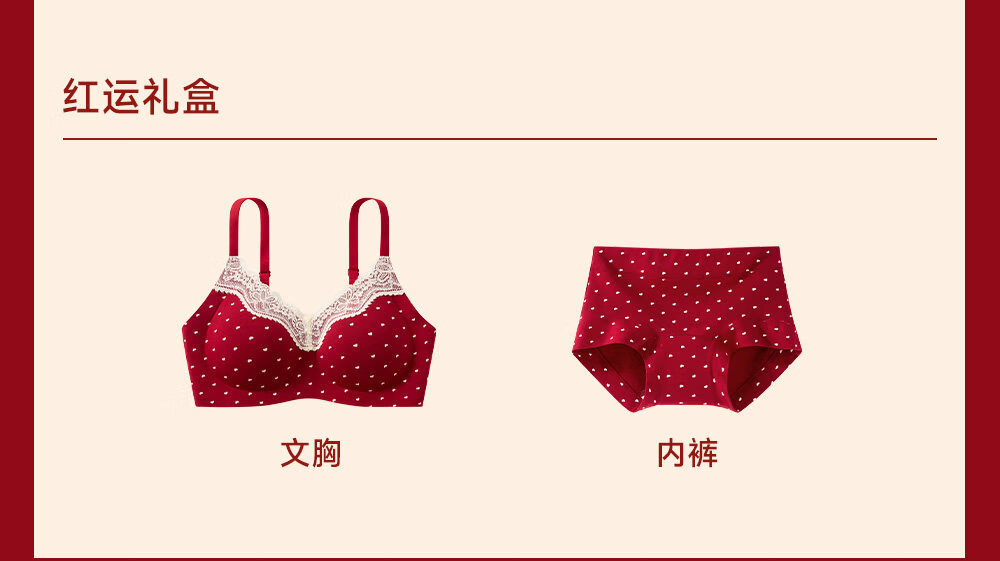 都市丽人蕾丝花边红色本命年内衣套装舒芙蕾透气舒适聚拢软支撑美背文胸罩 【红运礼盒装】 L 【75ABC体重建议100-115斤】