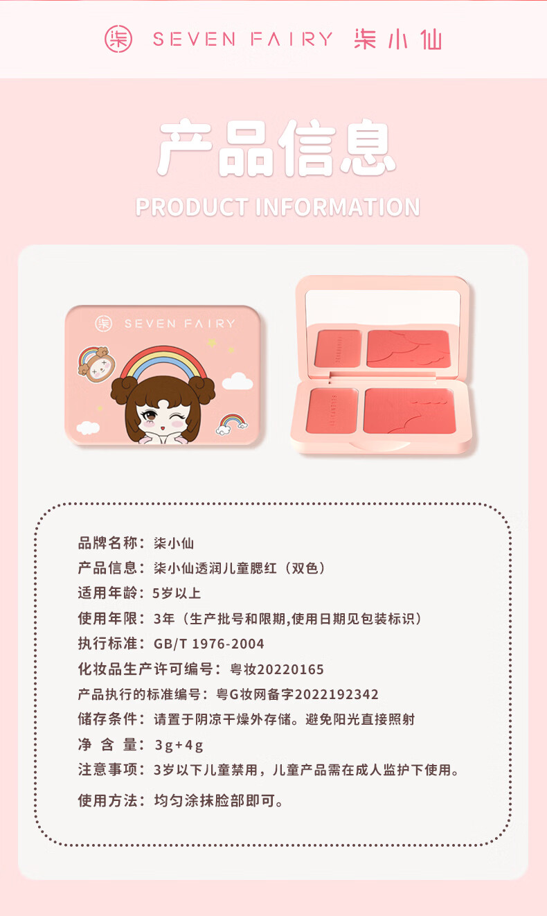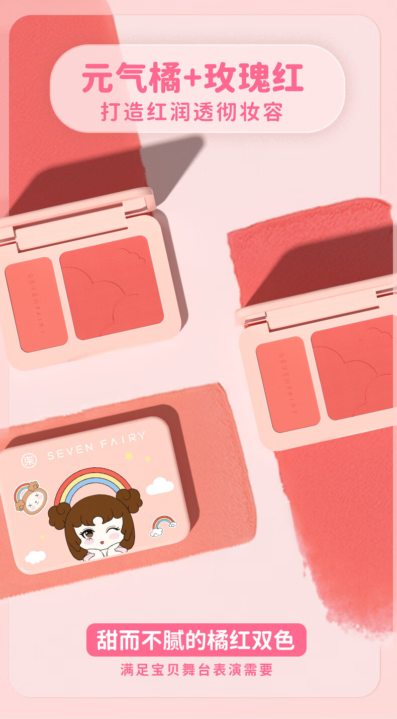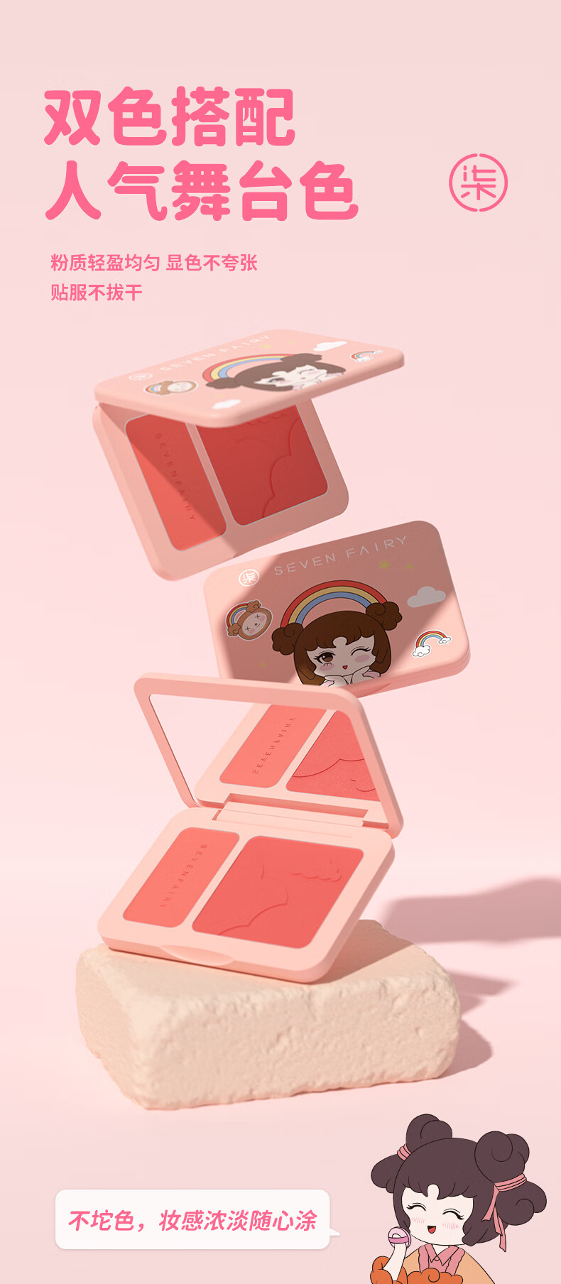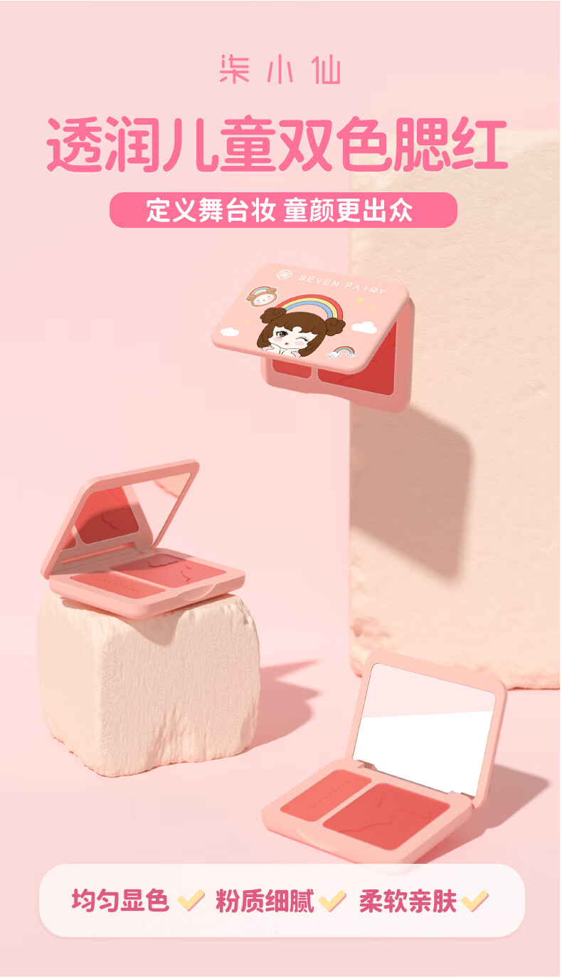 柒小仙 儿童腮红 彩妆青少年学生专用化妆品胭脂彩妆自然裸妆提亮肤 IP款双色腮红(全国京快配送)