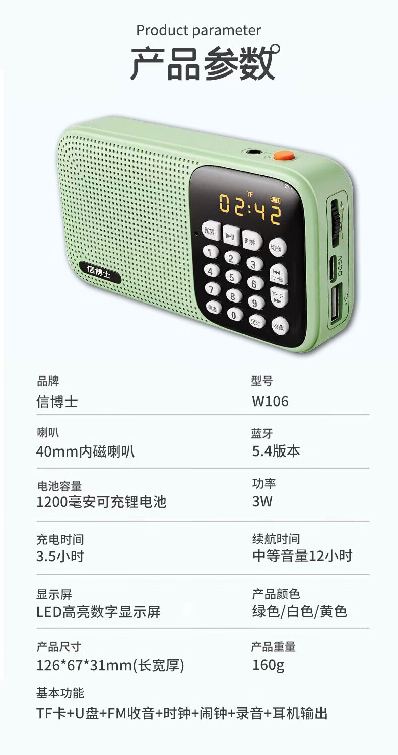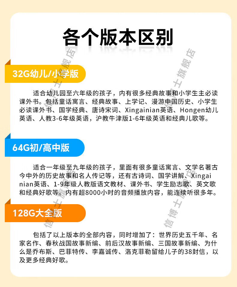 信博士信博士听书故事机国学机名著经典初中小学生睡前听早读机音响学习机生日节日礼物英语机背古诗机 白色128g(综合版)