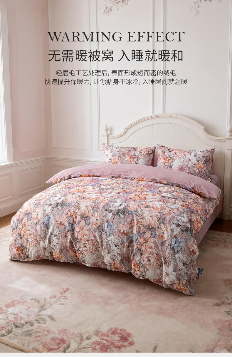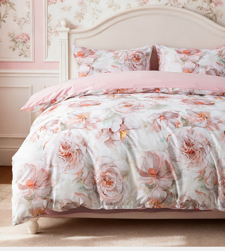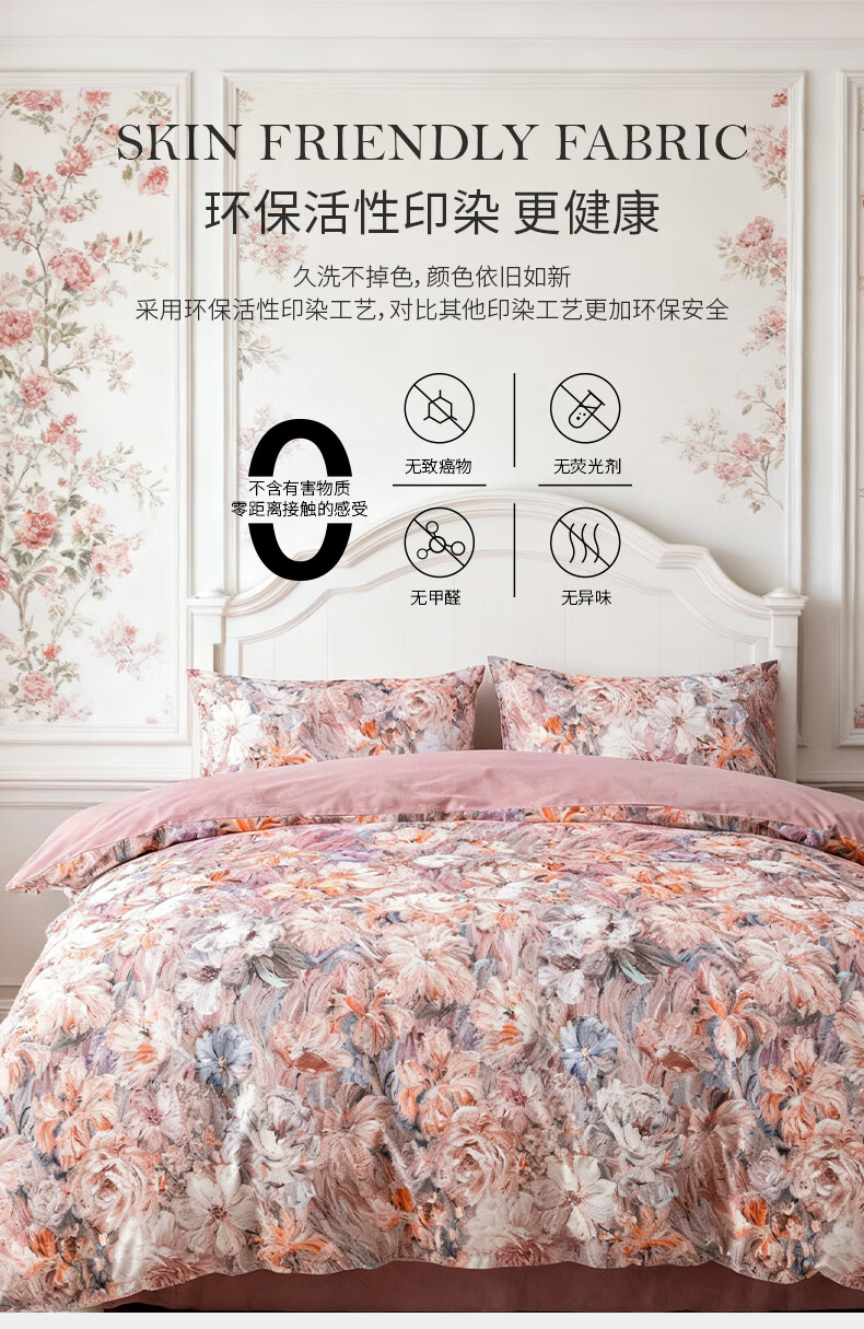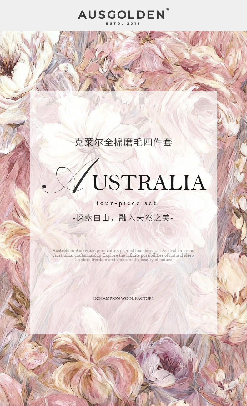 AusGolden澳洲M系列克莱尔100%全棉磨毛A类高密高支床上四件套被单床单 蔷薇花 床单款 (被套200*230cm)