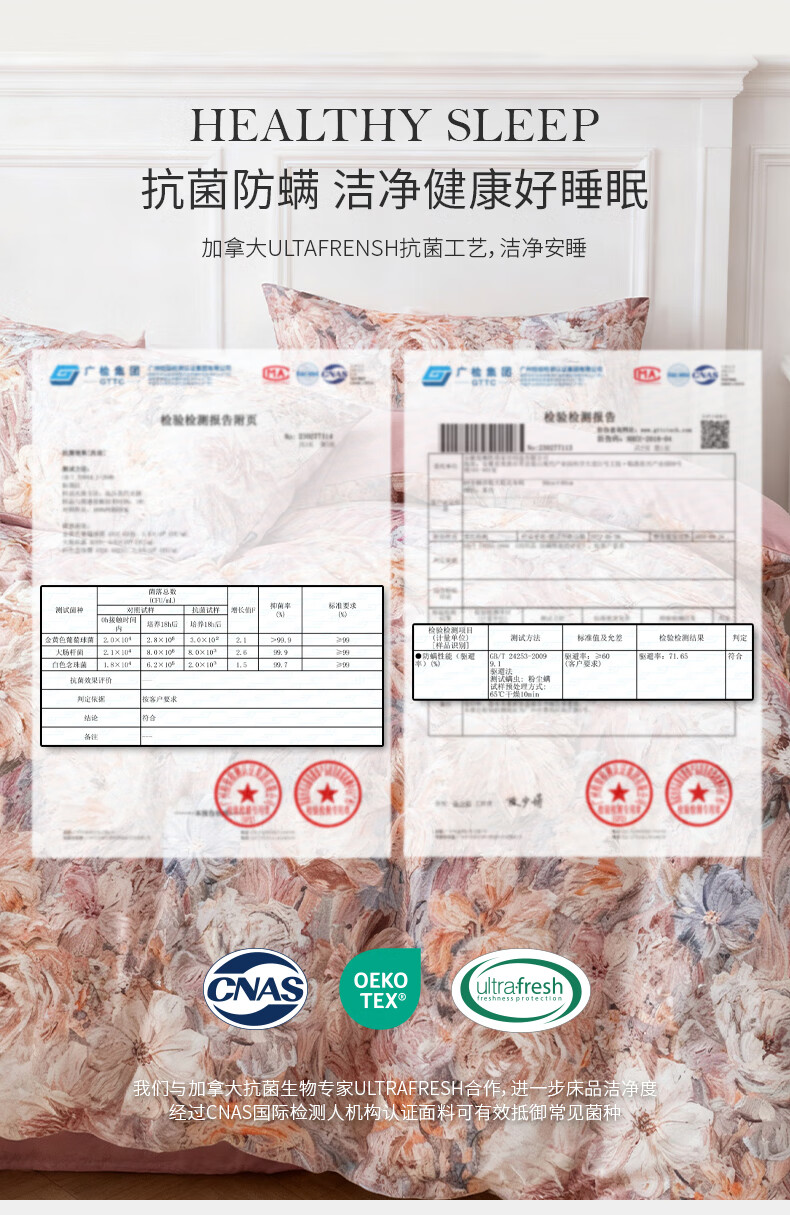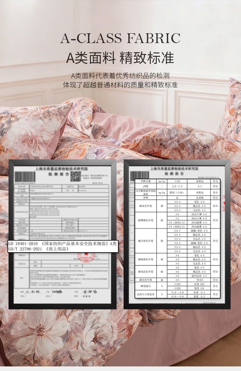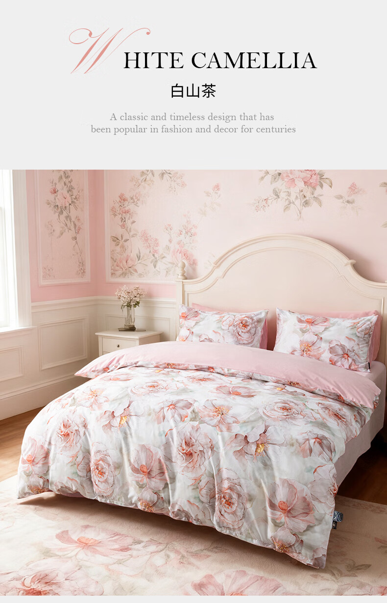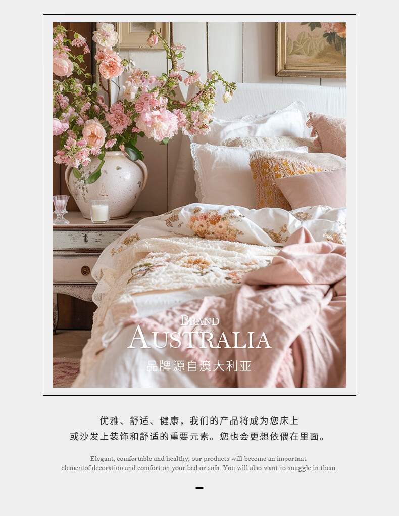 AusGolden澳洲M系列克莱尔100%全棉磨毛A类高密高支床上四件套被单床单 蔷薇花 床单款 (被套200*230cm)