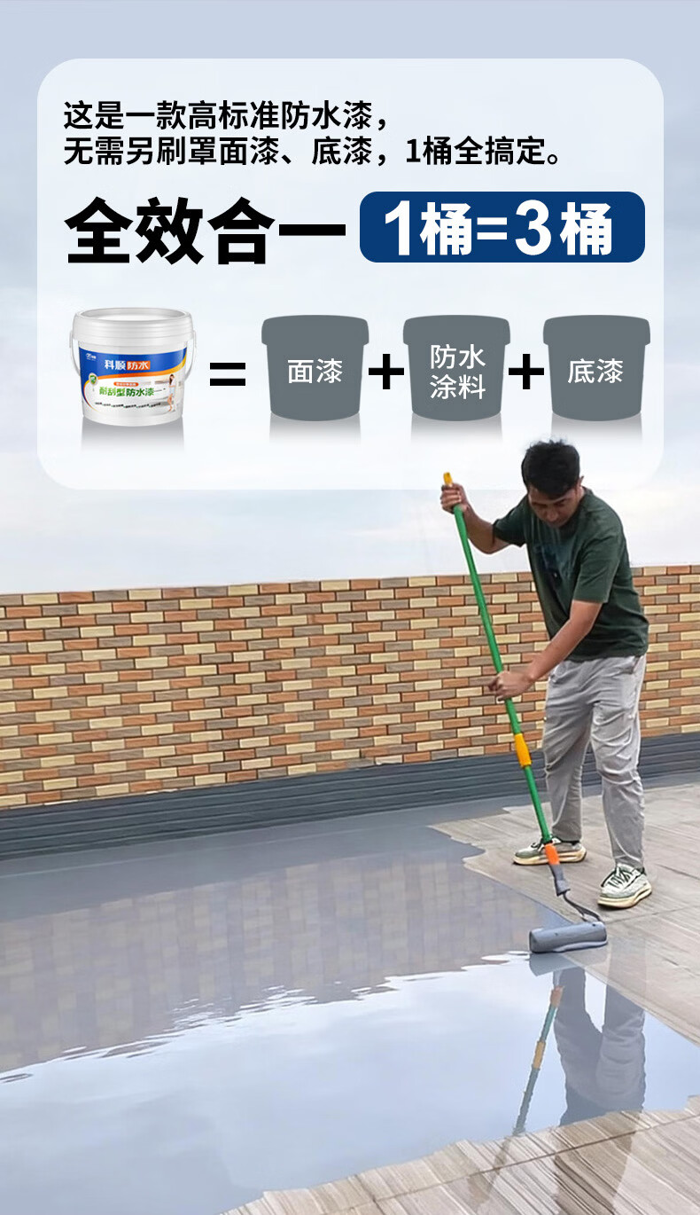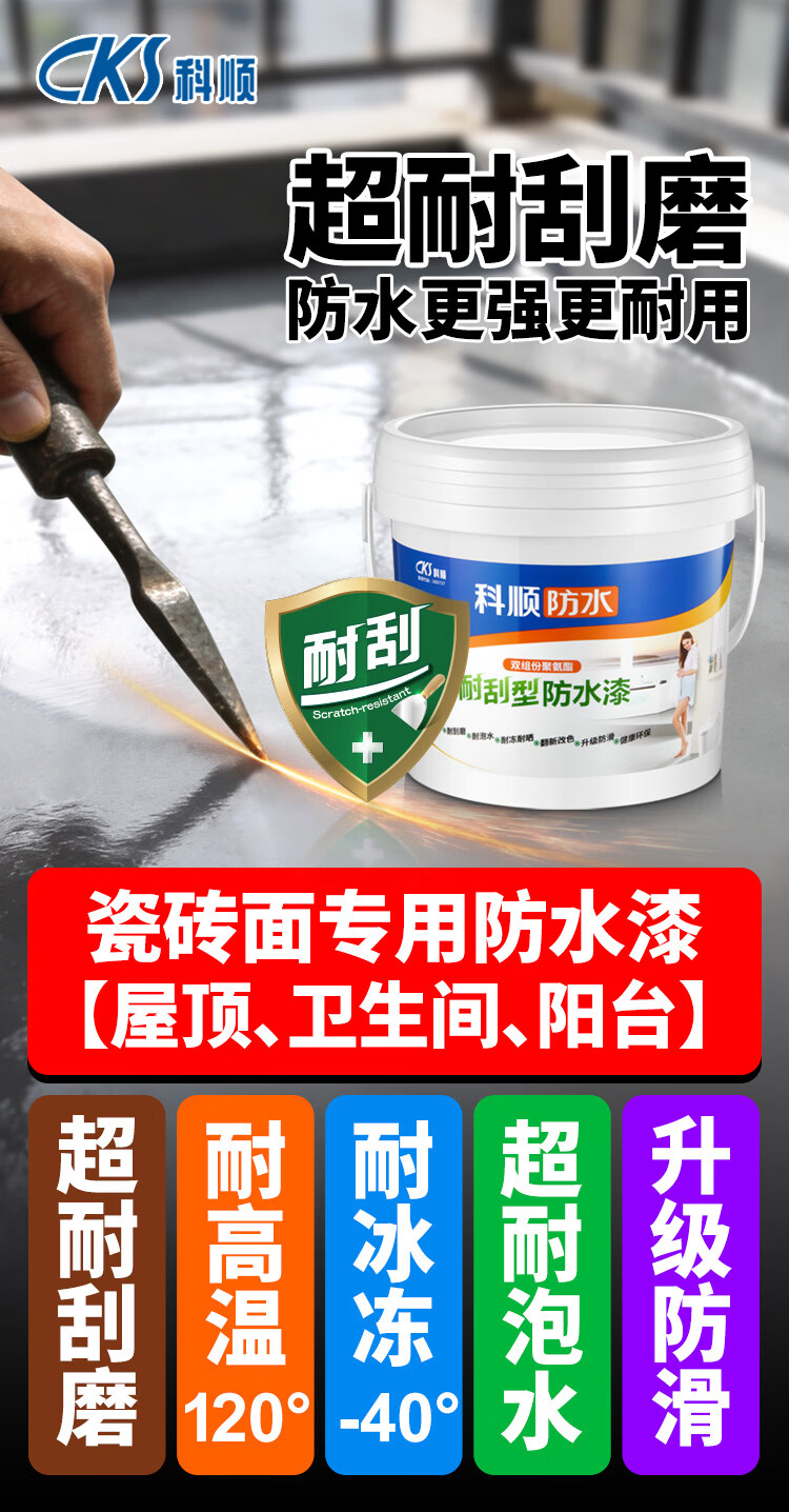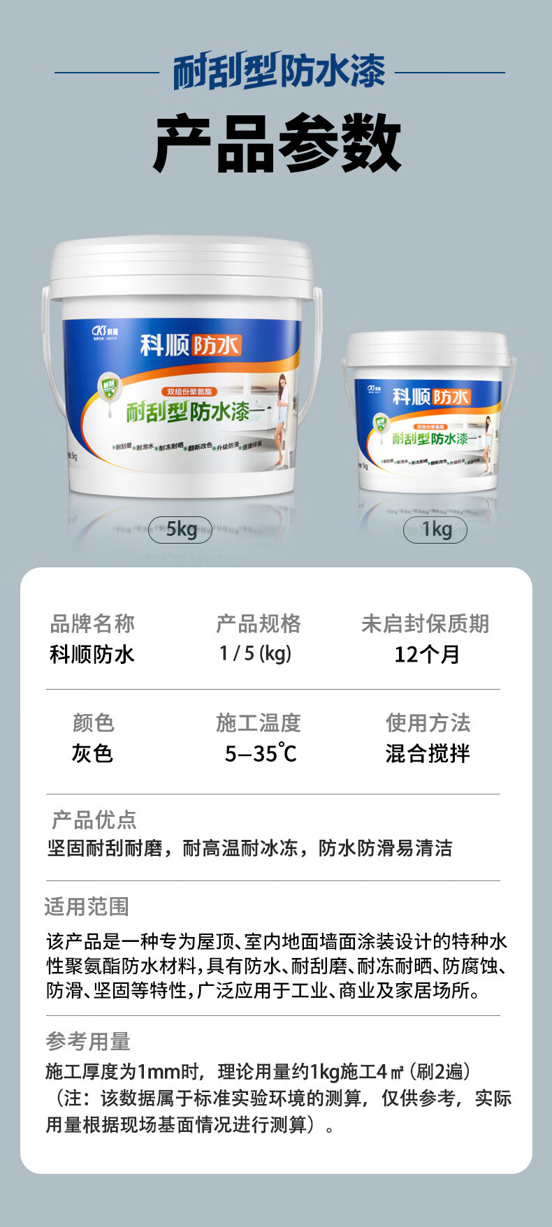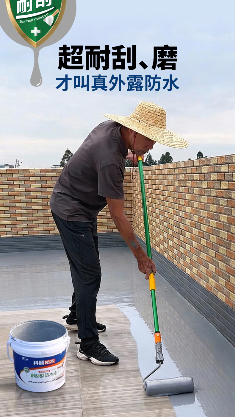 科顺耐刮防水漆聚氨酯屋顶防水补漏卫生间阳台厨房防水涂料地坪漆耐磨 浅灰色 【2斤】约刷4平方--刷2遍