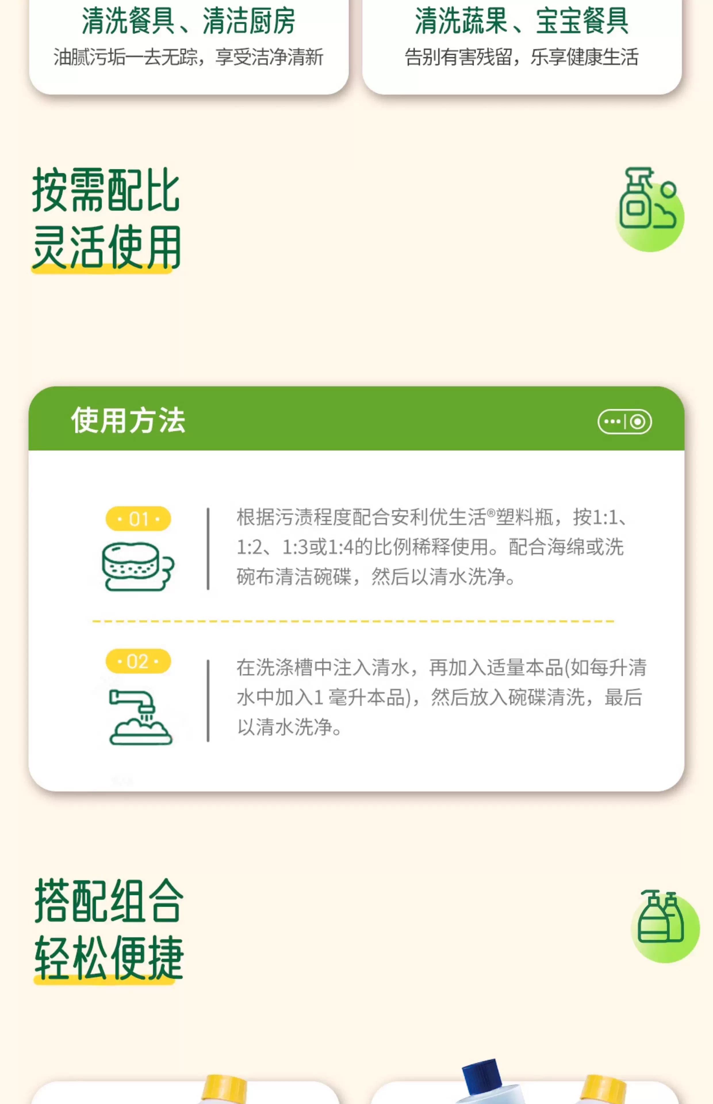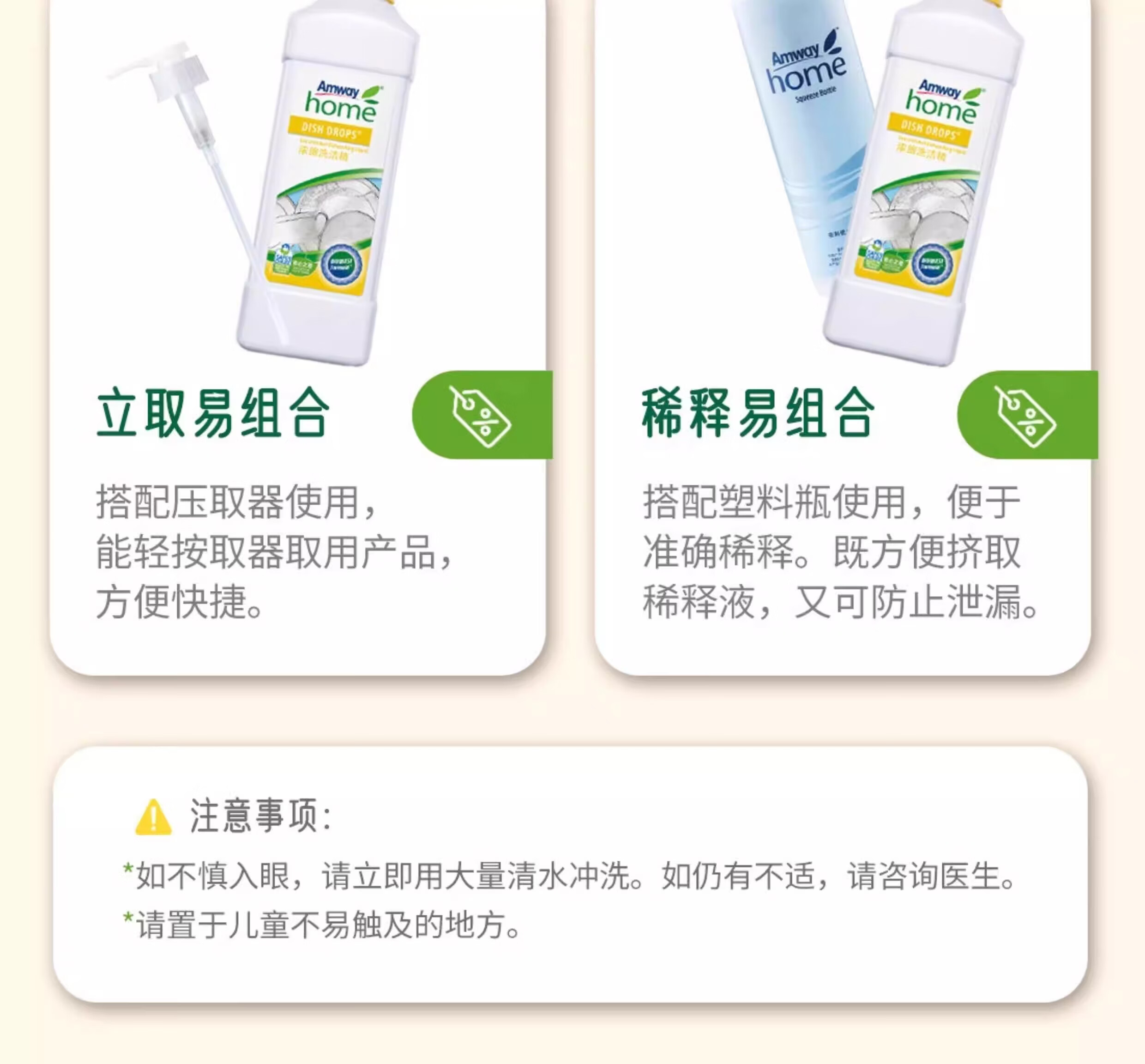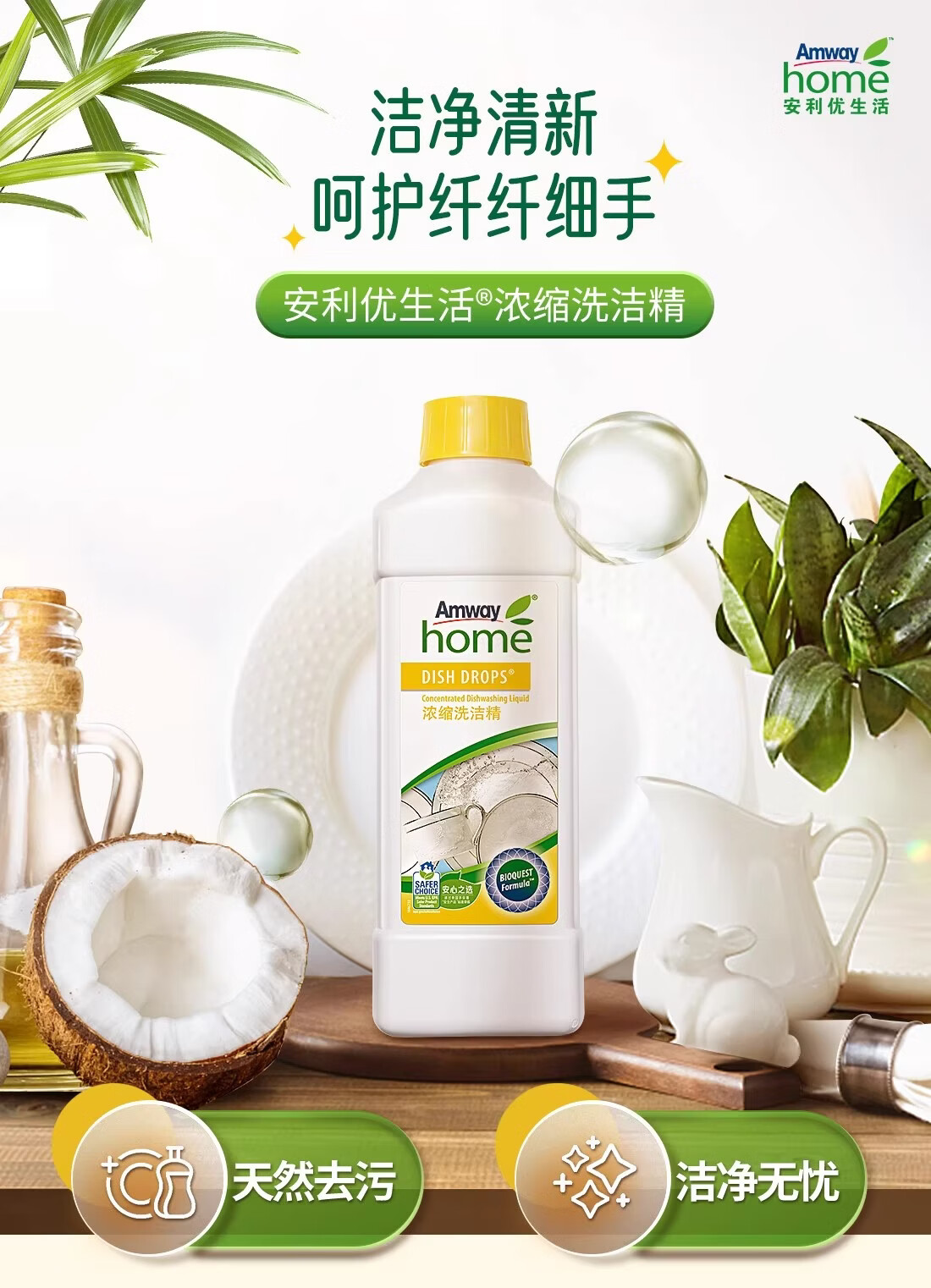 安利(Amway)安利浓缩洗洁精碟新安利优生活厨房洗碗液家庭装果蔬餐具洗涤剂1L 安利碟新洗洁精(两瓶装)+稀释瓶1个