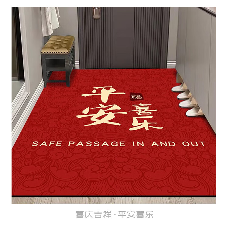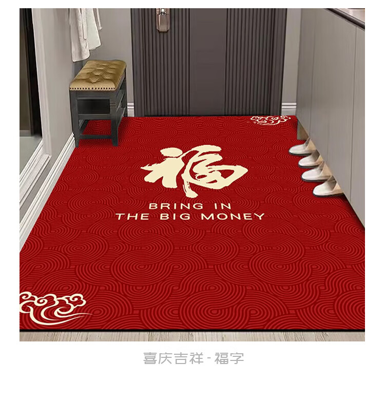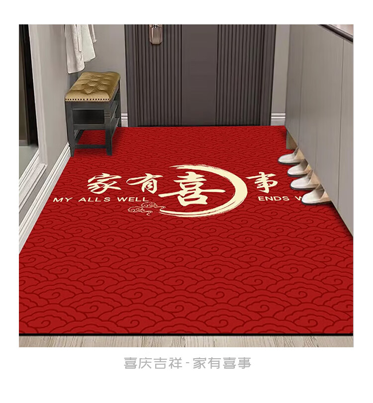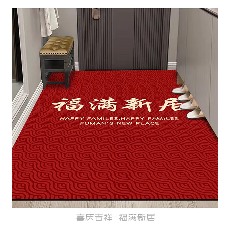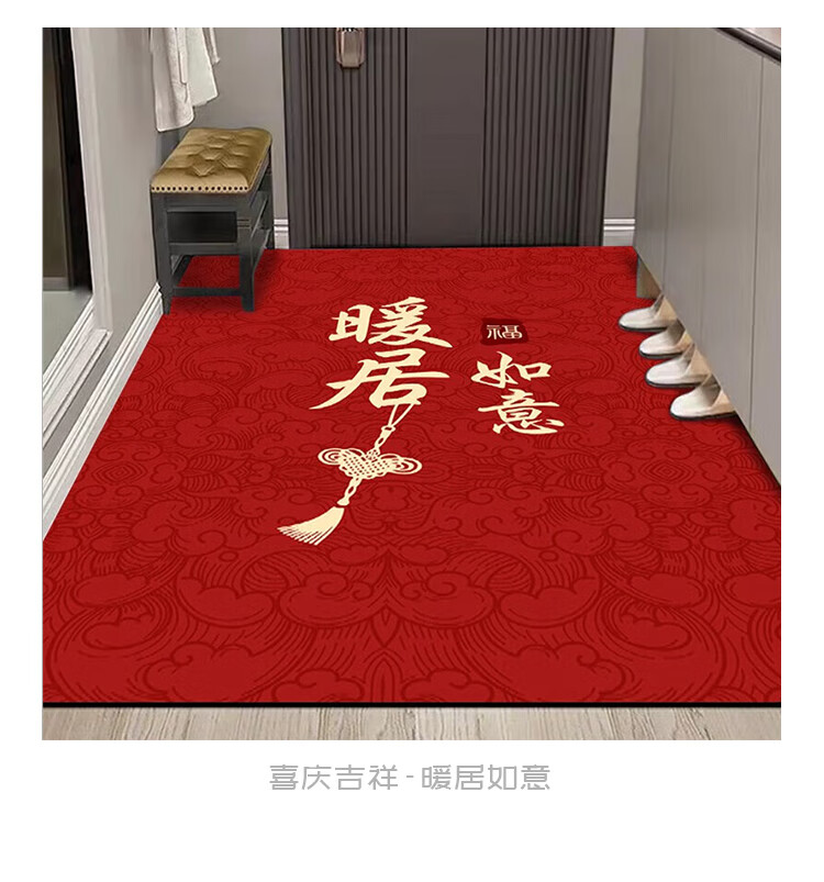 布迪思喜庆地垫门垫红色家用防滑入户玄关门口进门蹭土脚垫子户外吸水垫 喜庆吉祥-暖居如意【竖版】 120*140CM【云感柔弹】