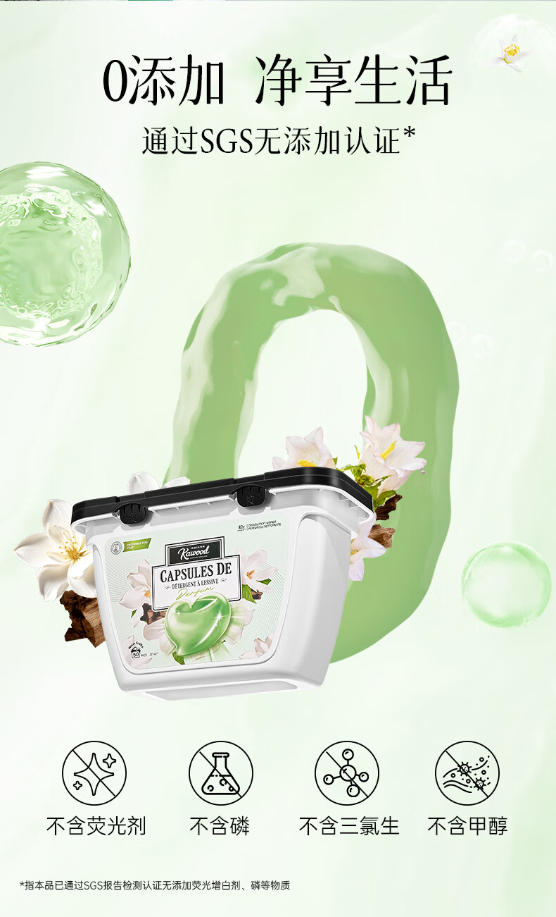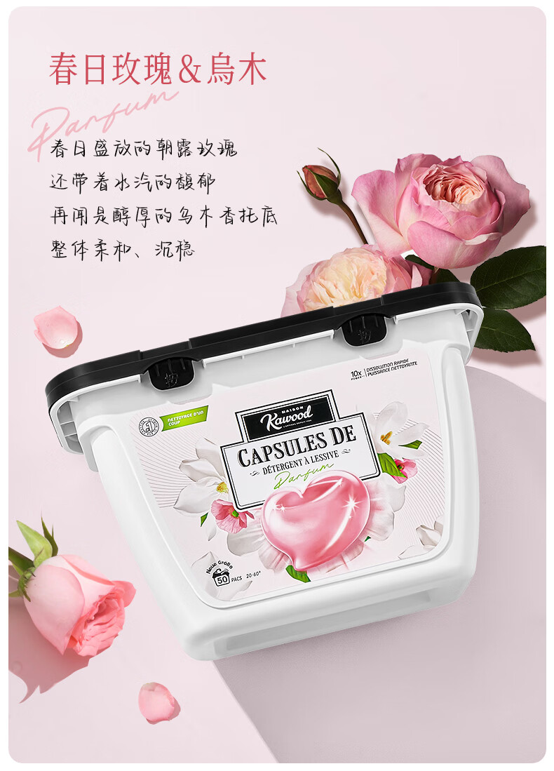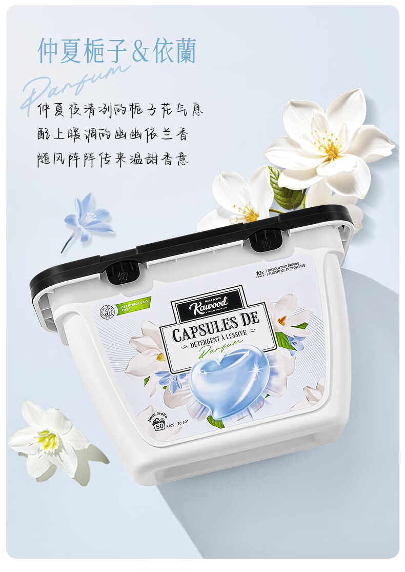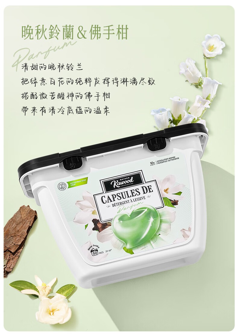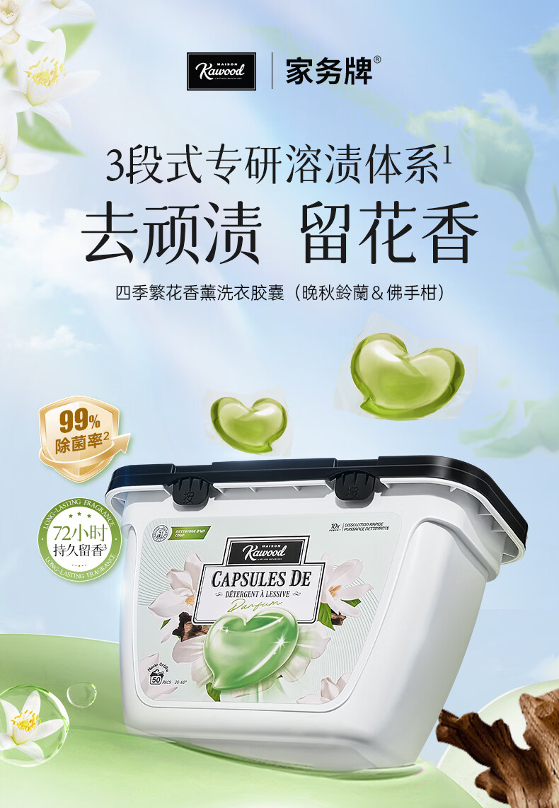 家务KAWOOD四季繁花洗衣胶囊除菌除螨柔顺亲肤 孕婴可用 晚秋鈴蘭&佛手柑*2盒100颗+赠品20颗