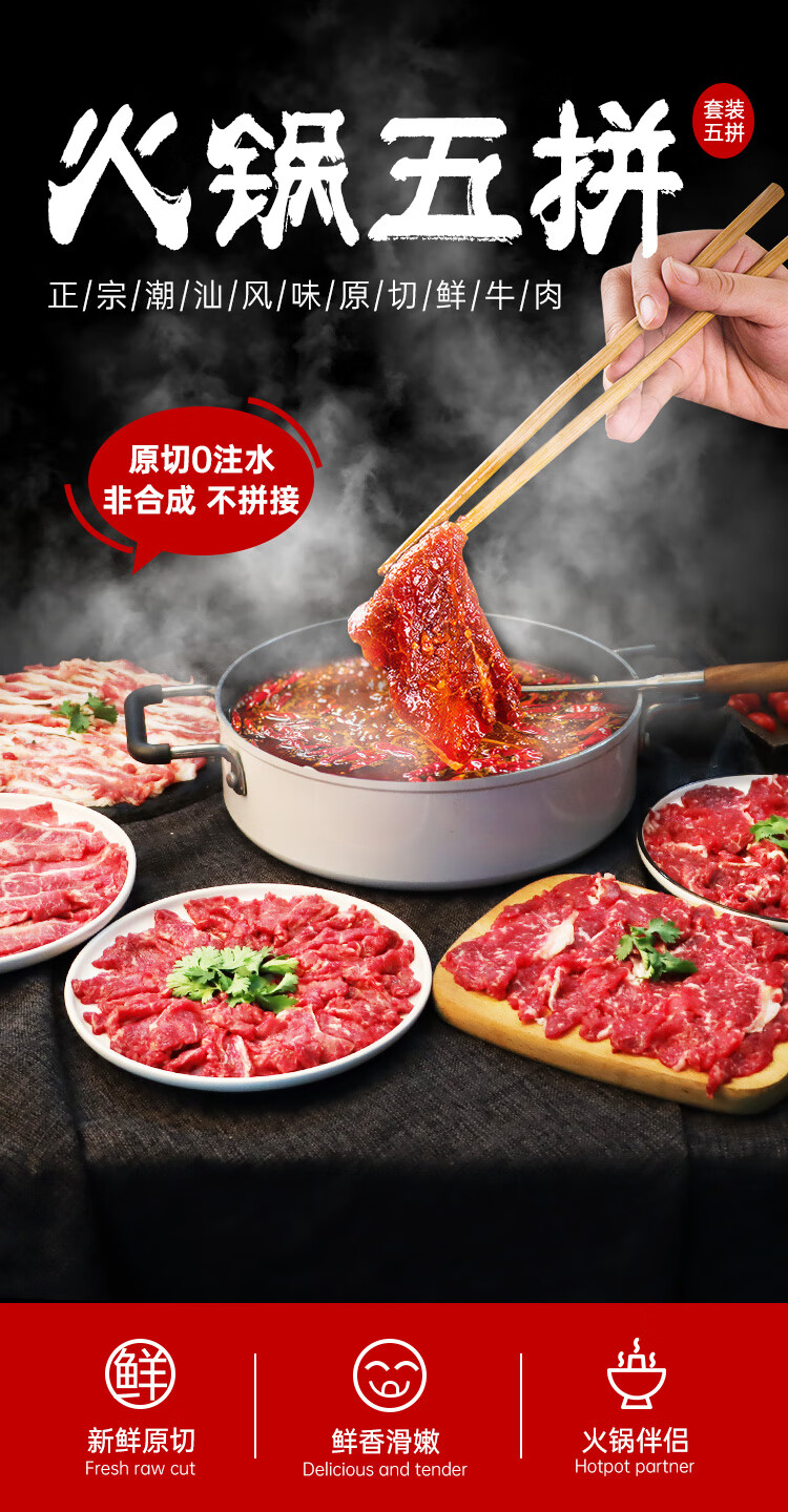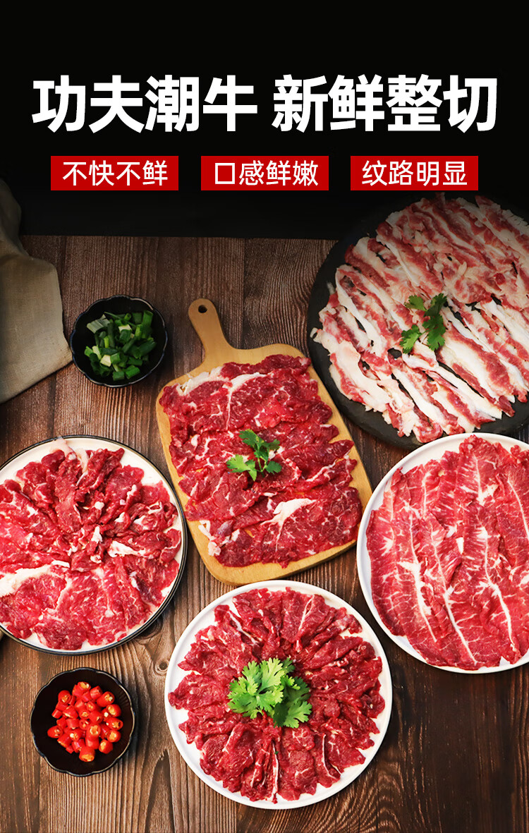 暖男厨房 潮汕牛肉雪花肥牛吊龙嫩肉匙仁牛肉丸新鲜好吃潮汕牛肉火锅套餐 牛肉火锅套餐7件套1250g