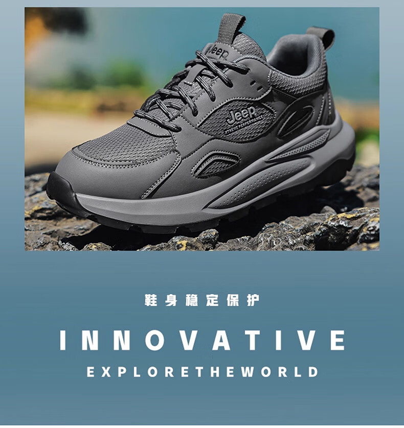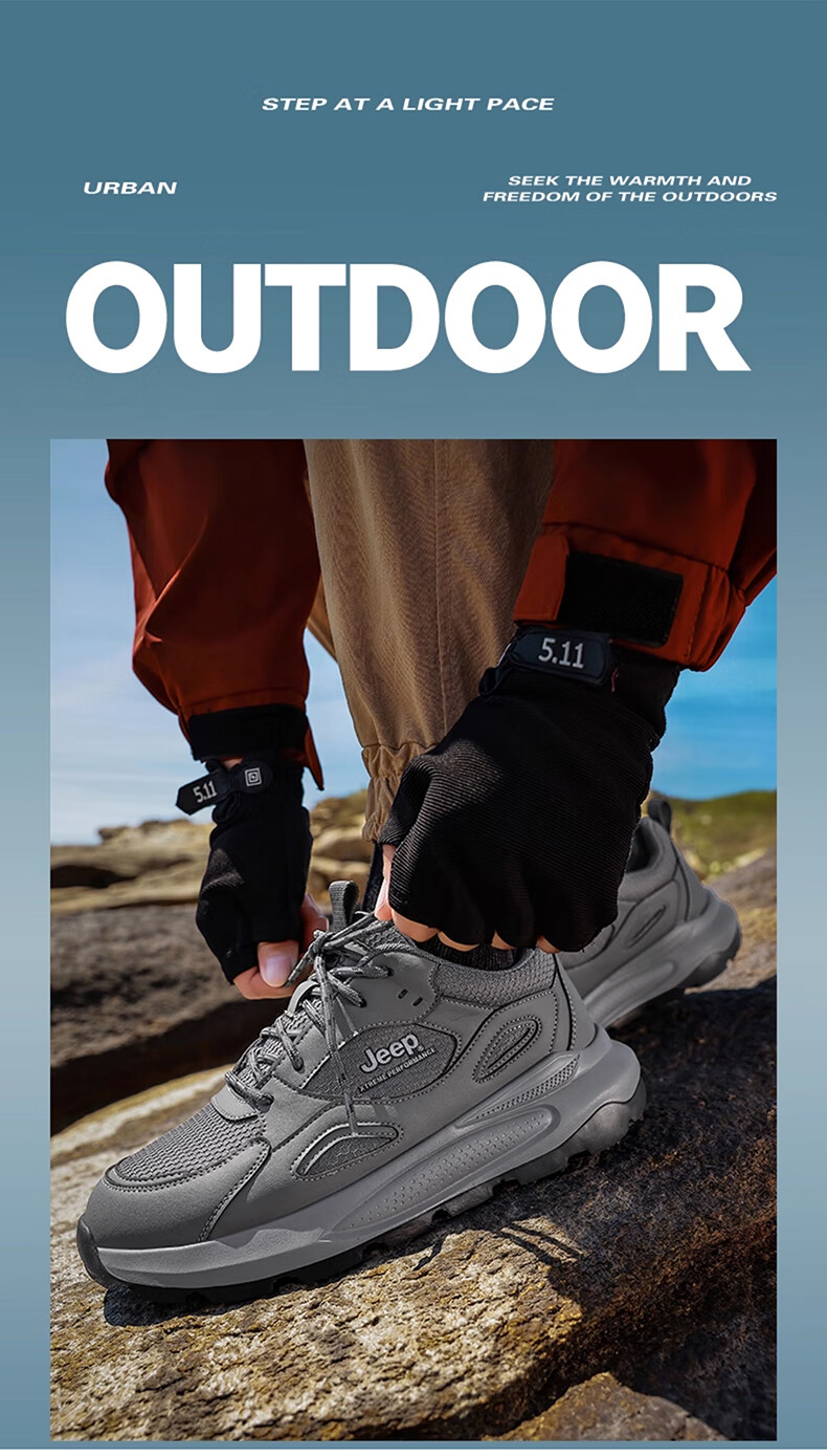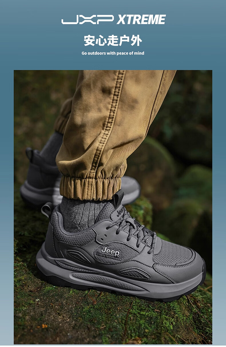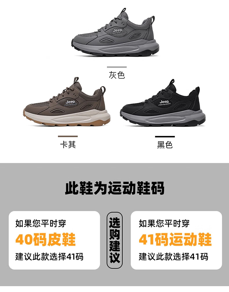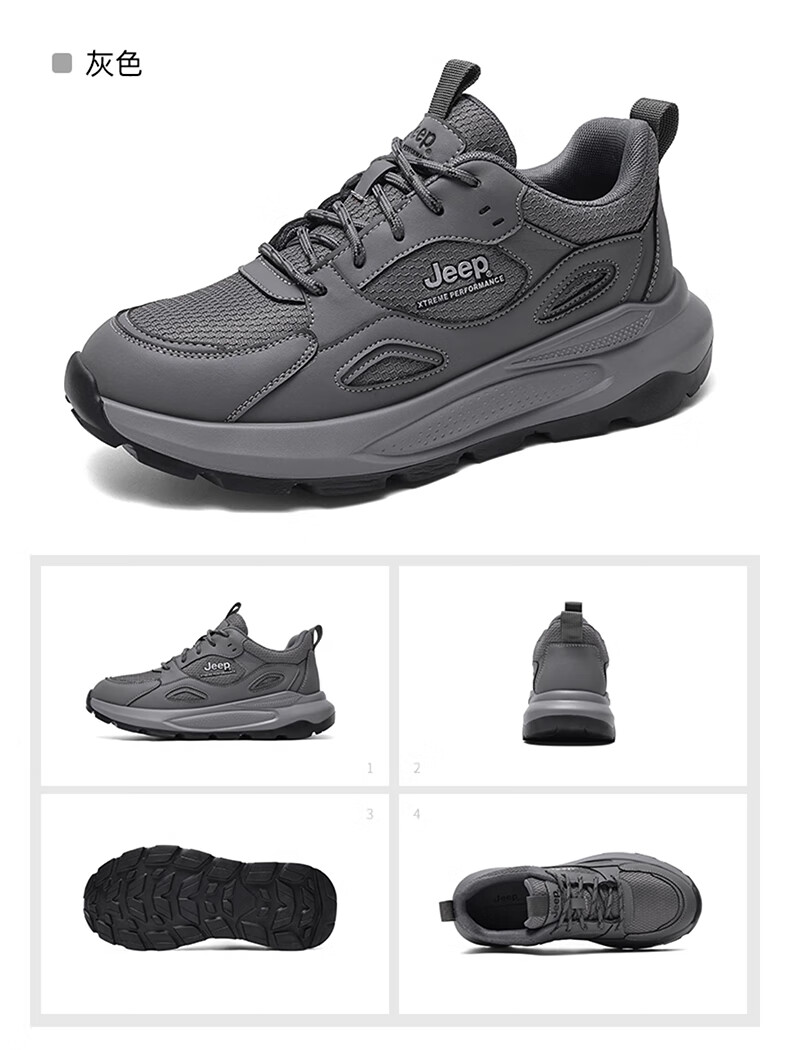 JEEP吉普男鞋休闲鞋运动徒步鞋防滑软底缓震轻便中年爸爸旅游登山鞋子 灰色 45 (275mm) 运动鞋码数