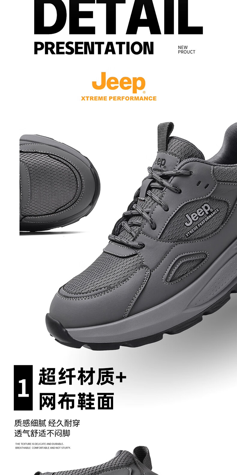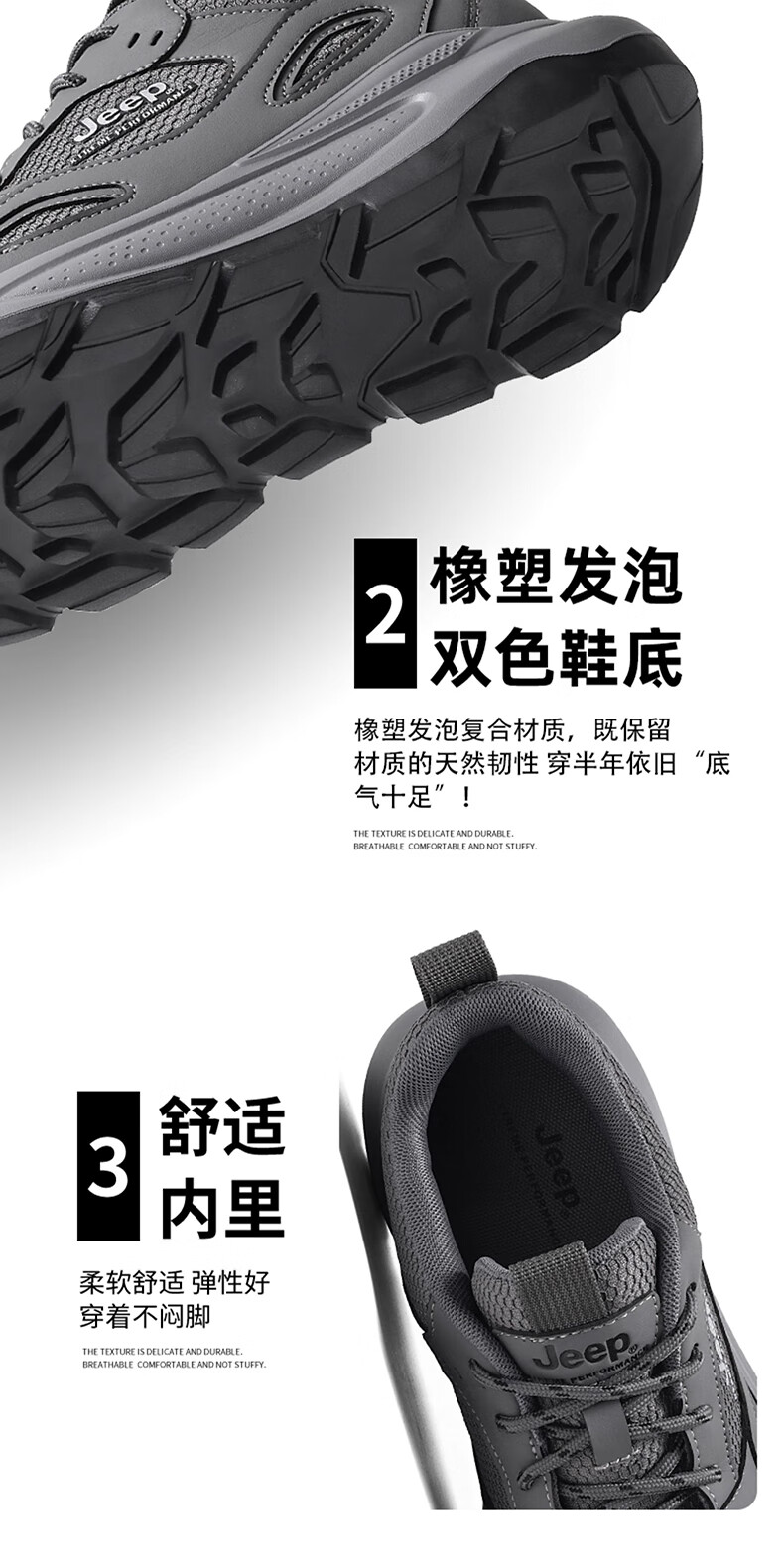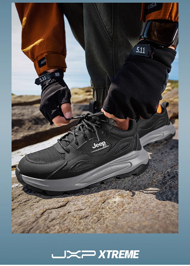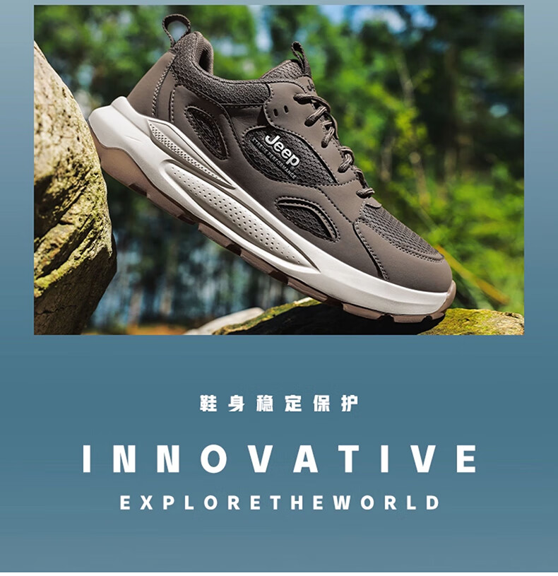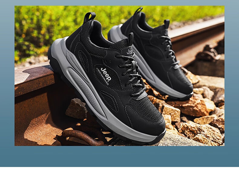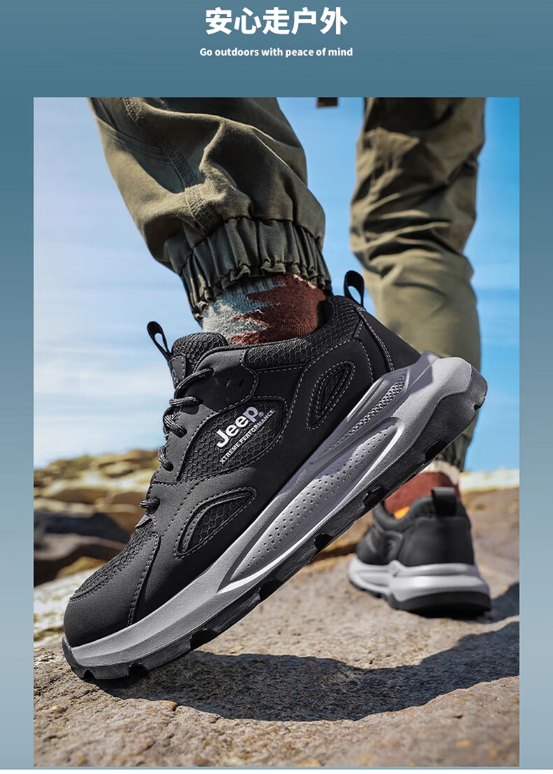 JEEP吉普男鞋休闲鞋运动徒步鞋防滑软底缓震轻便中年爸爸旅游登山鞋子 灰色 45 (275mm) 运动鞋码数