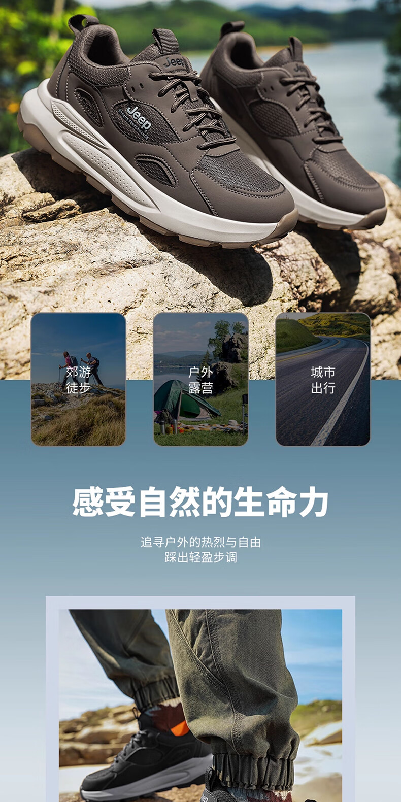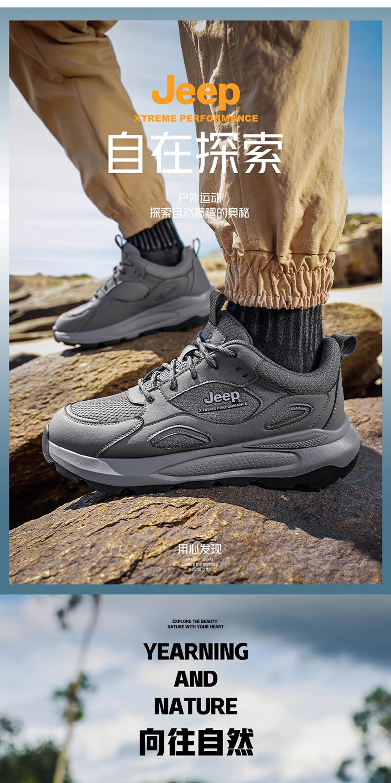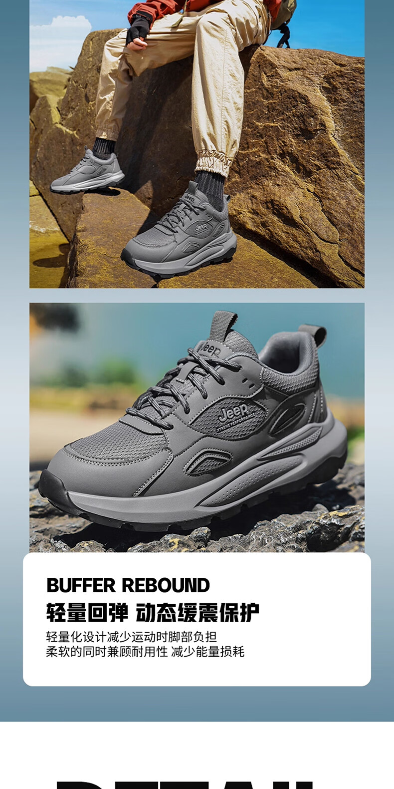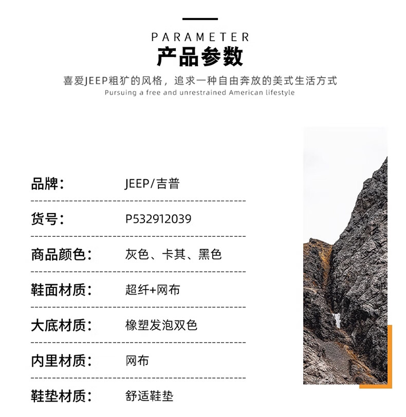 JEEP吉普男鞋休闲鞋运动徒步鞋防滑软底缓震轻便中年爸爸旅游登山鞋子 灰色 45 (275mm) 运动鞋码数