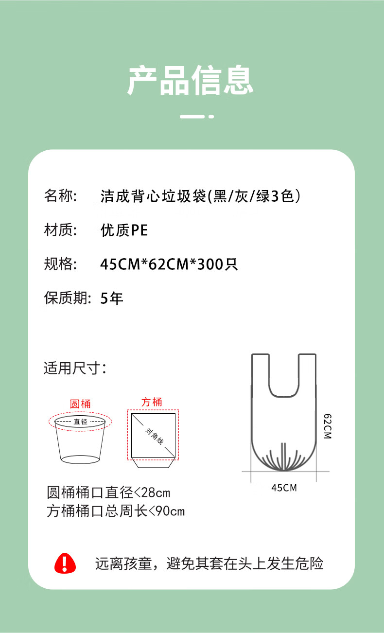 洁成手提式垃圾袋45*62cm*300只 1丝加厚防穿刺背心式中号 加厚|手提45*62cm*300只*1箱